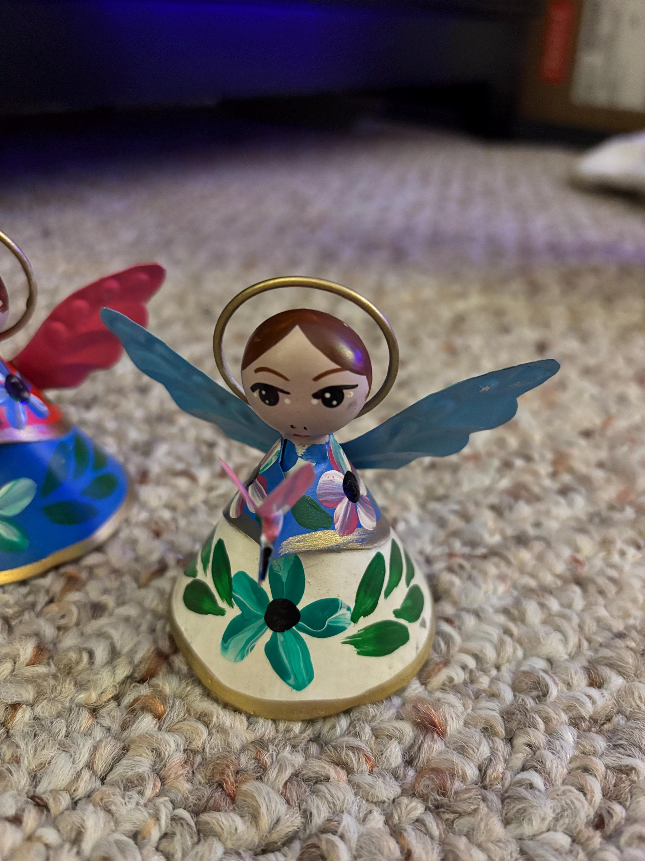 SET (6) small painted tin Angel ornaments.