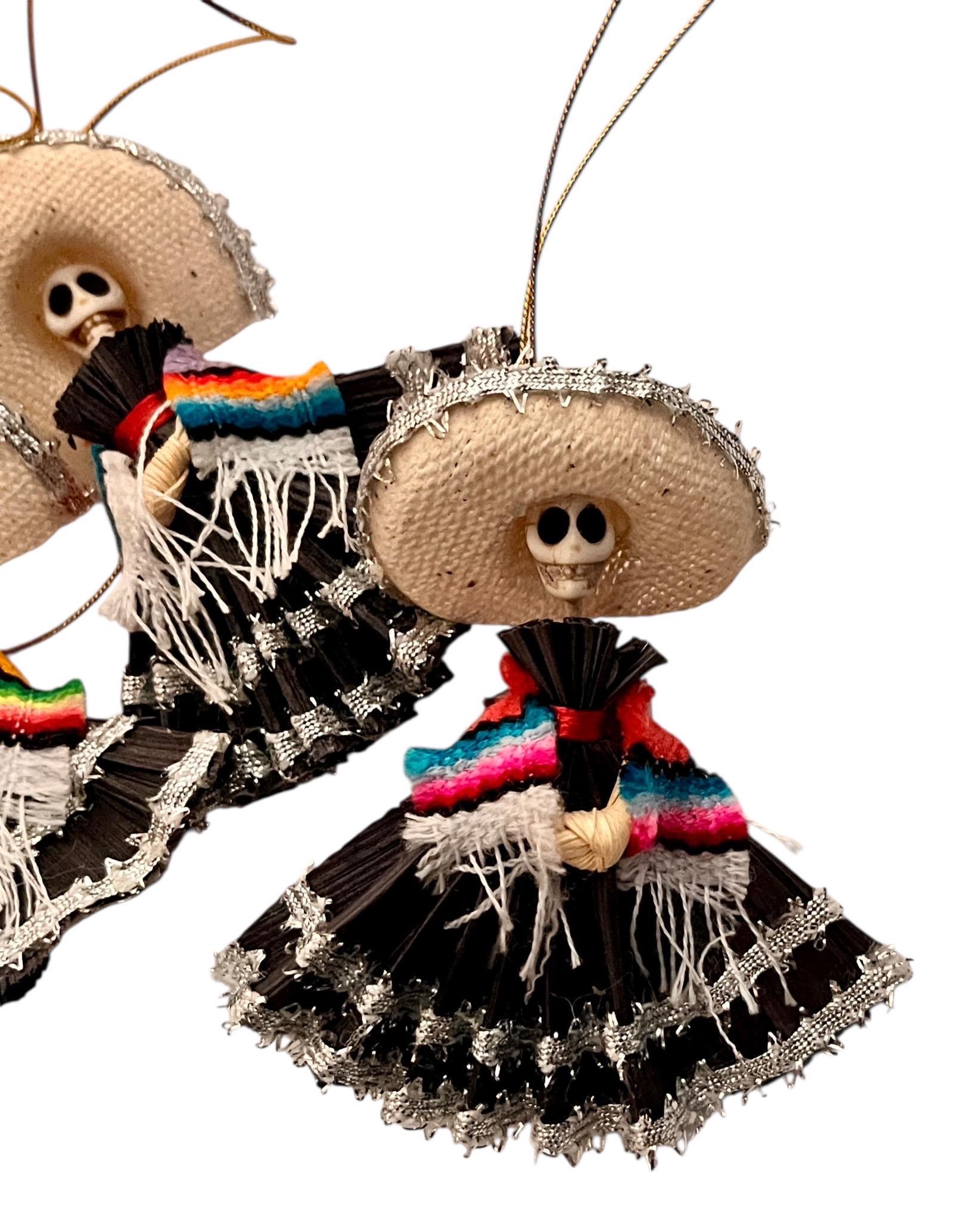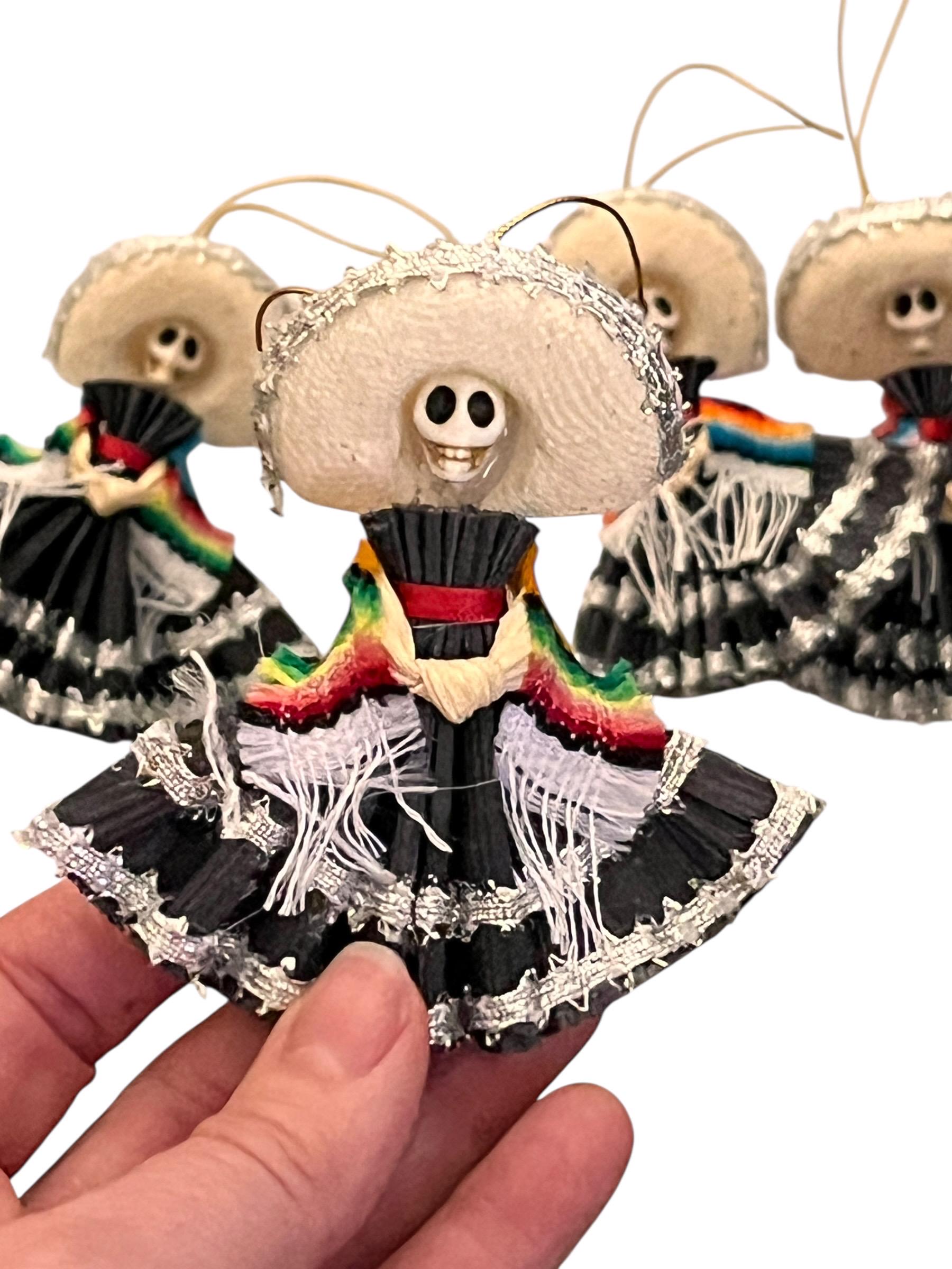 SET (4) Sweet little Corn Husk Day of the Dead Catrina Ornaments
