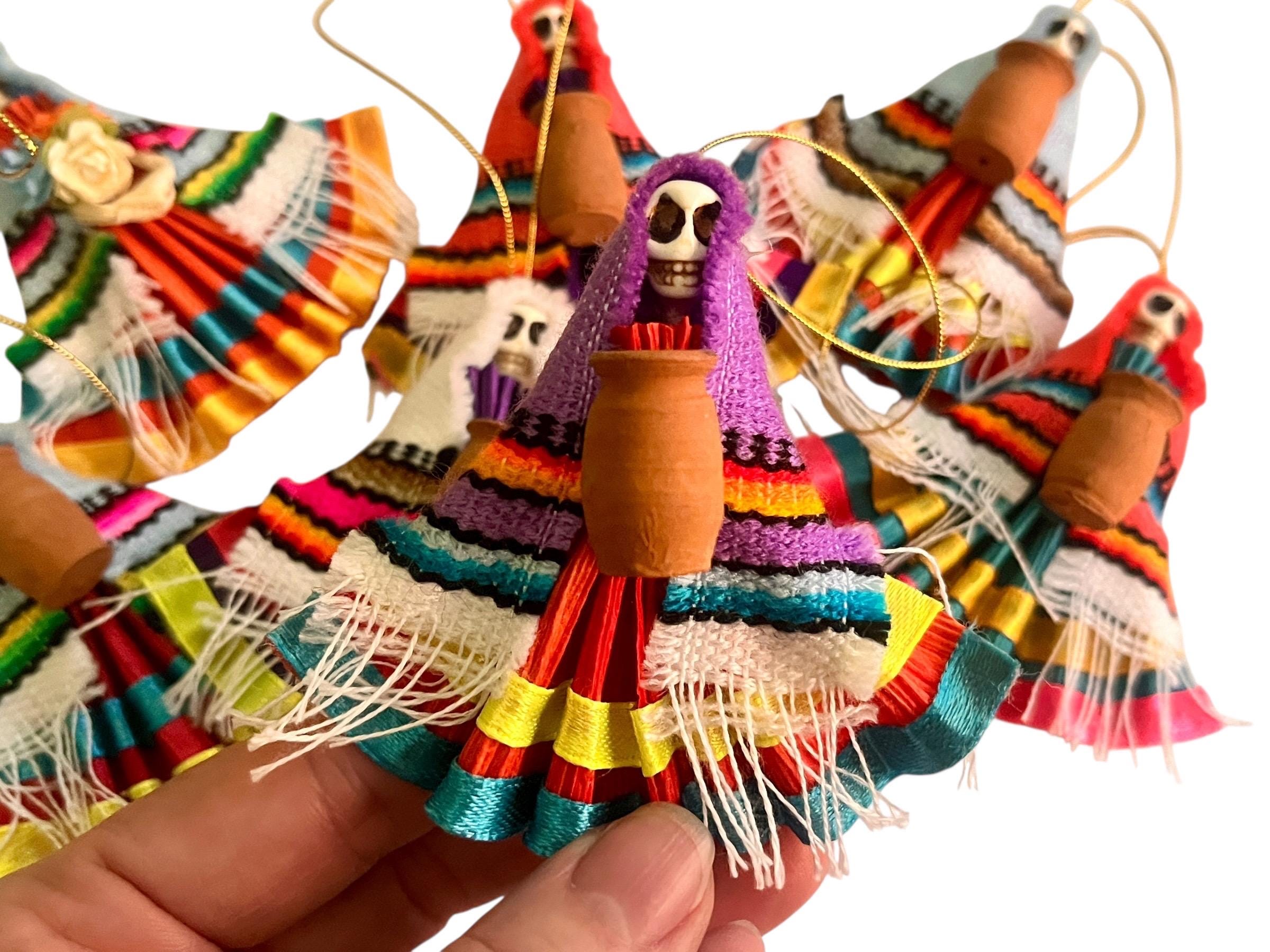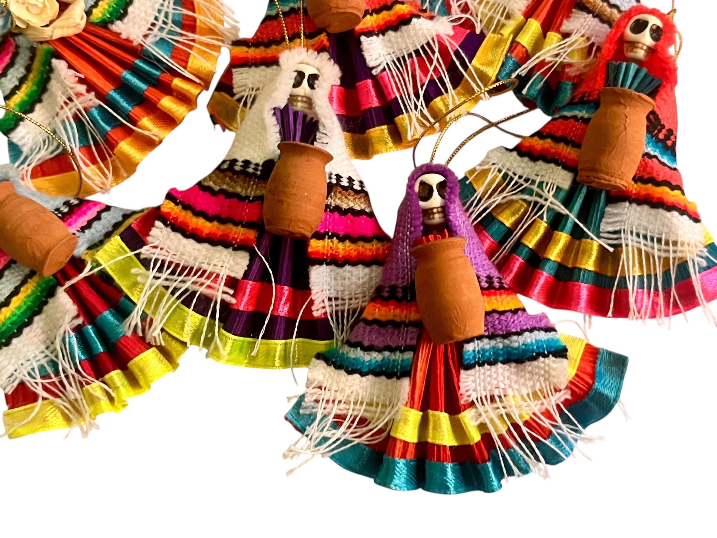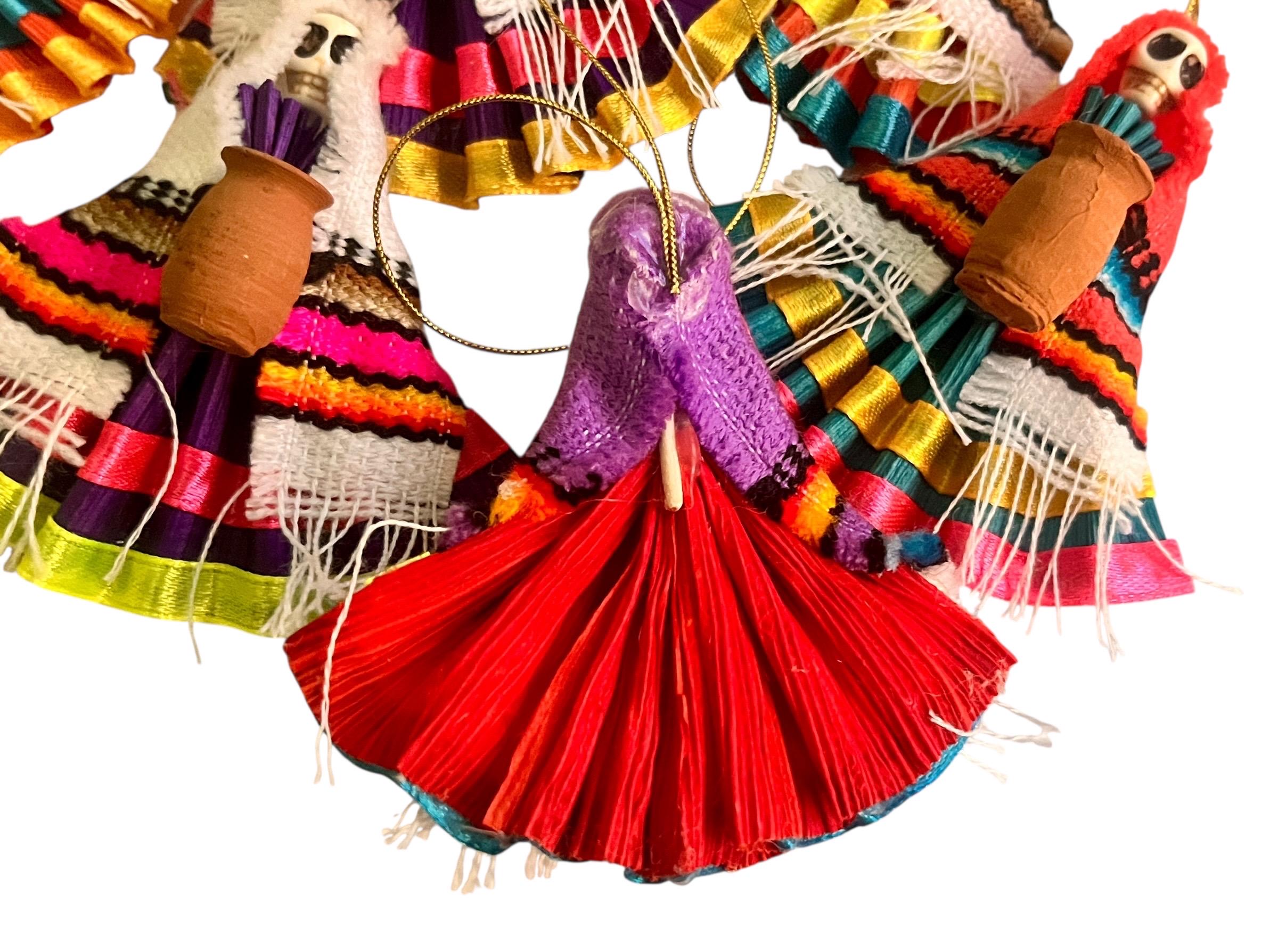 SET (4) Sweet little Corn Husk Day of the Dead Catrina Ornaments