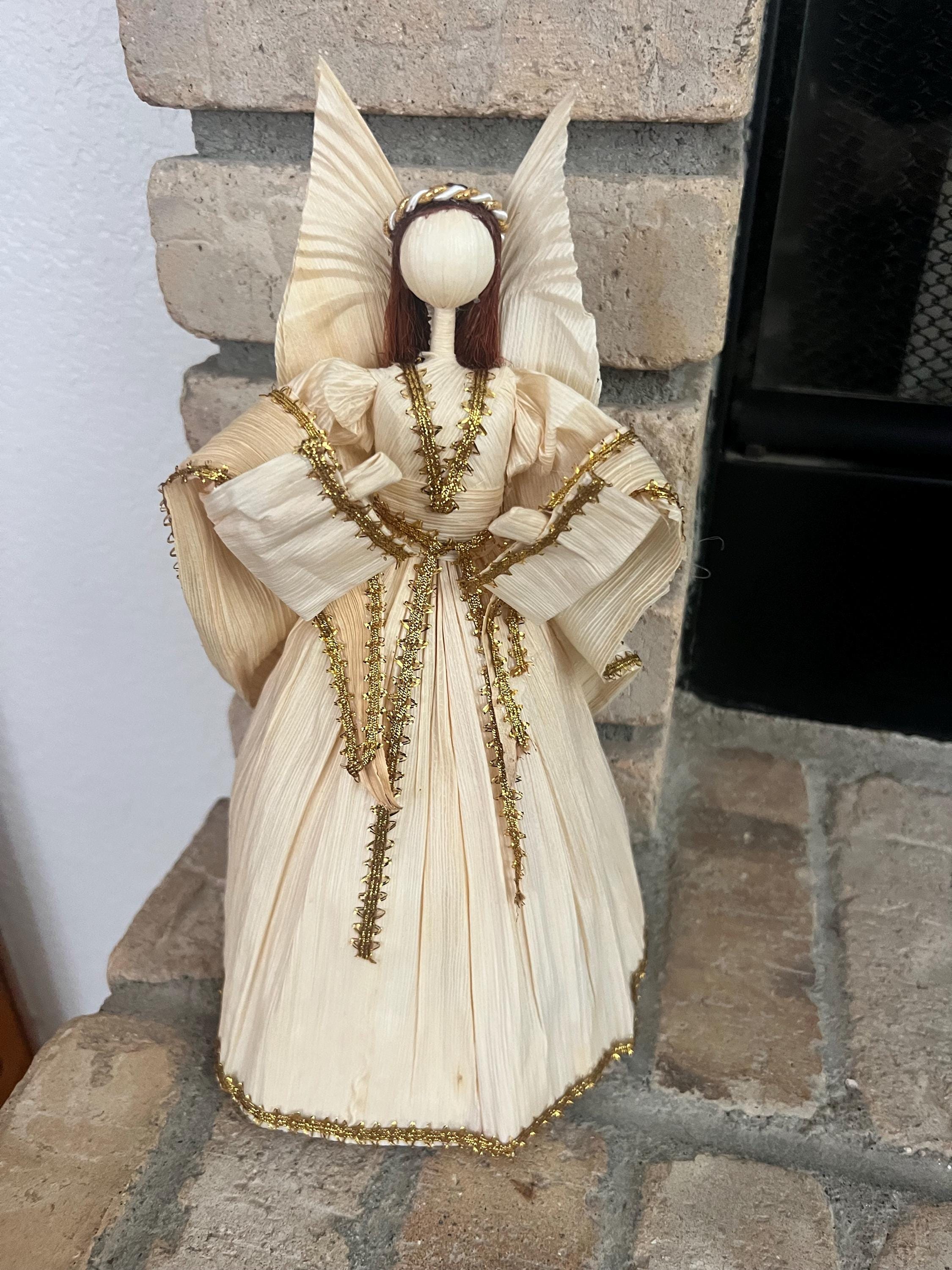 I bought this to replace a cornhusk angel that has graced our Christmas tree for over 40 years and grown worn and bald in her service to our family. The new angel is absolutely beautiful, and I love her so much I've decided just to leave her out gracing the living room for the rest of the year too. Thank you to the crafter!!