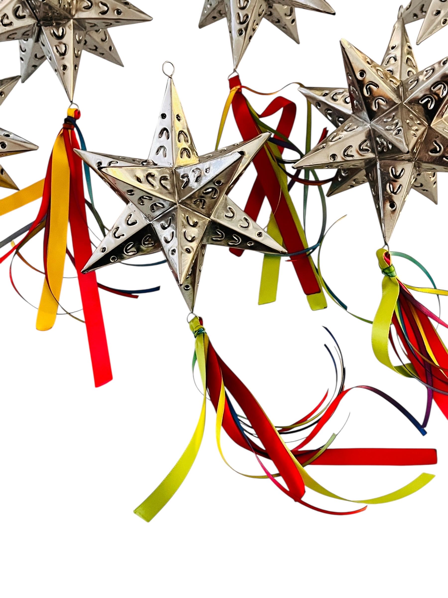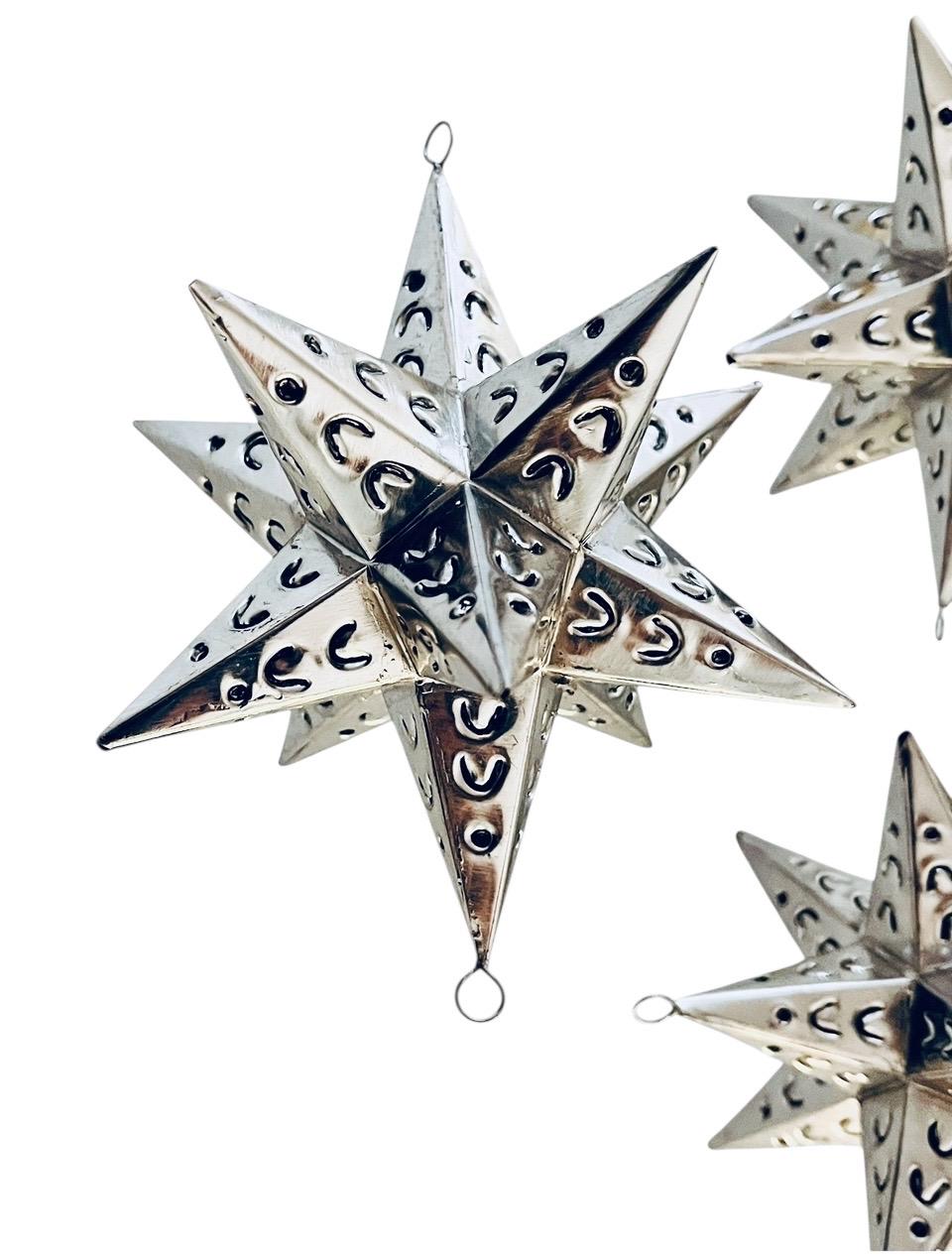 Set of punched tin star ornaments.