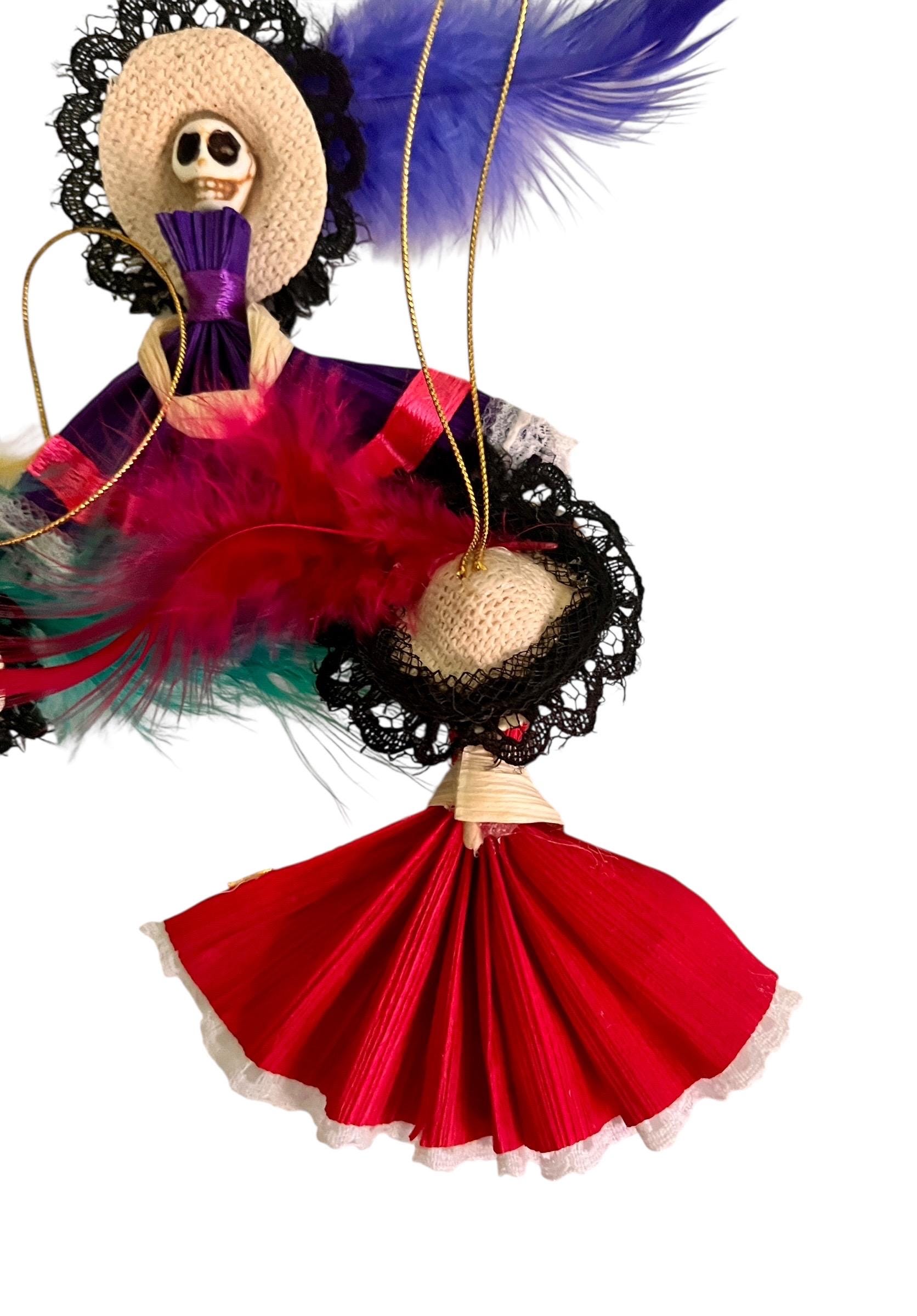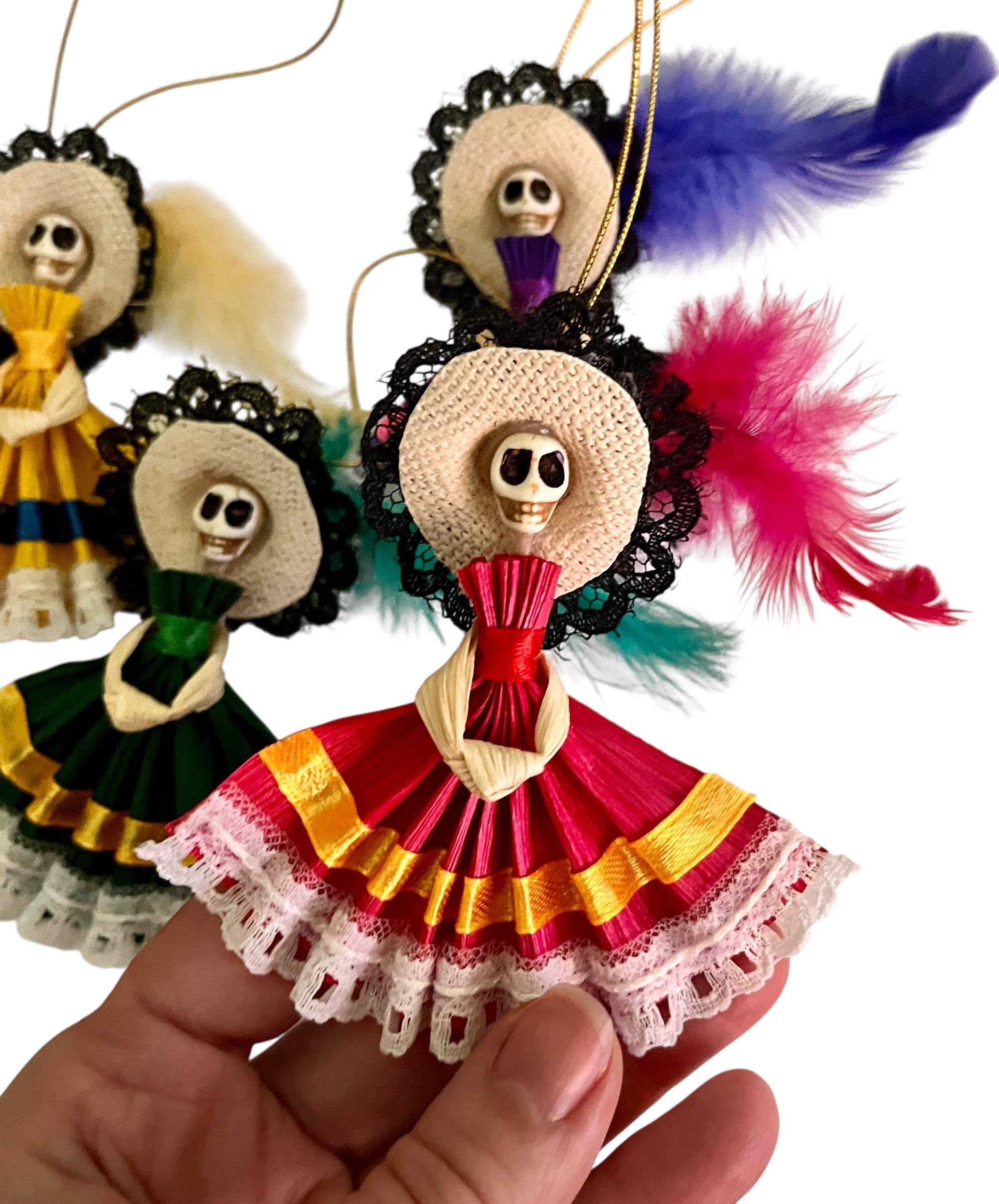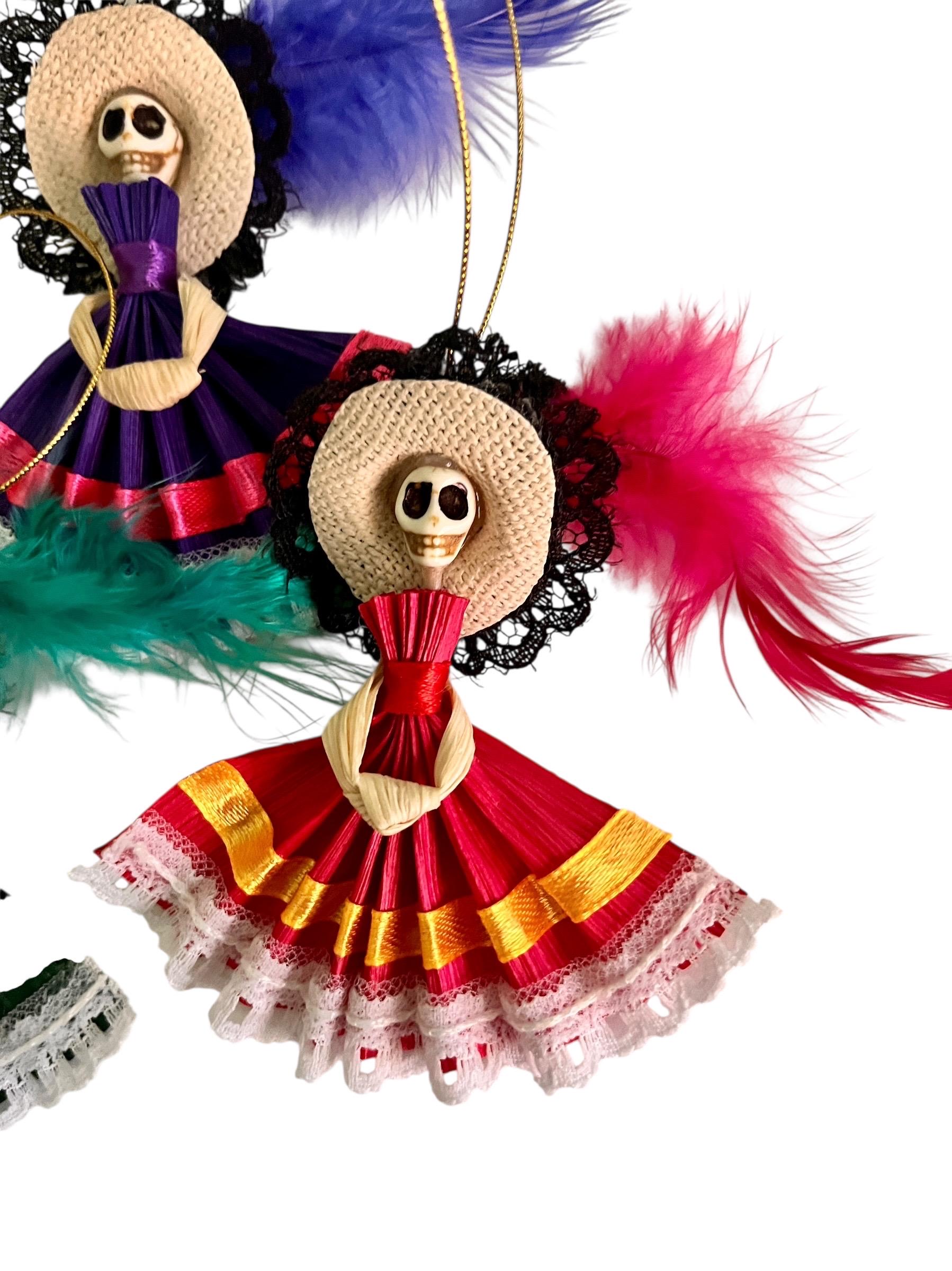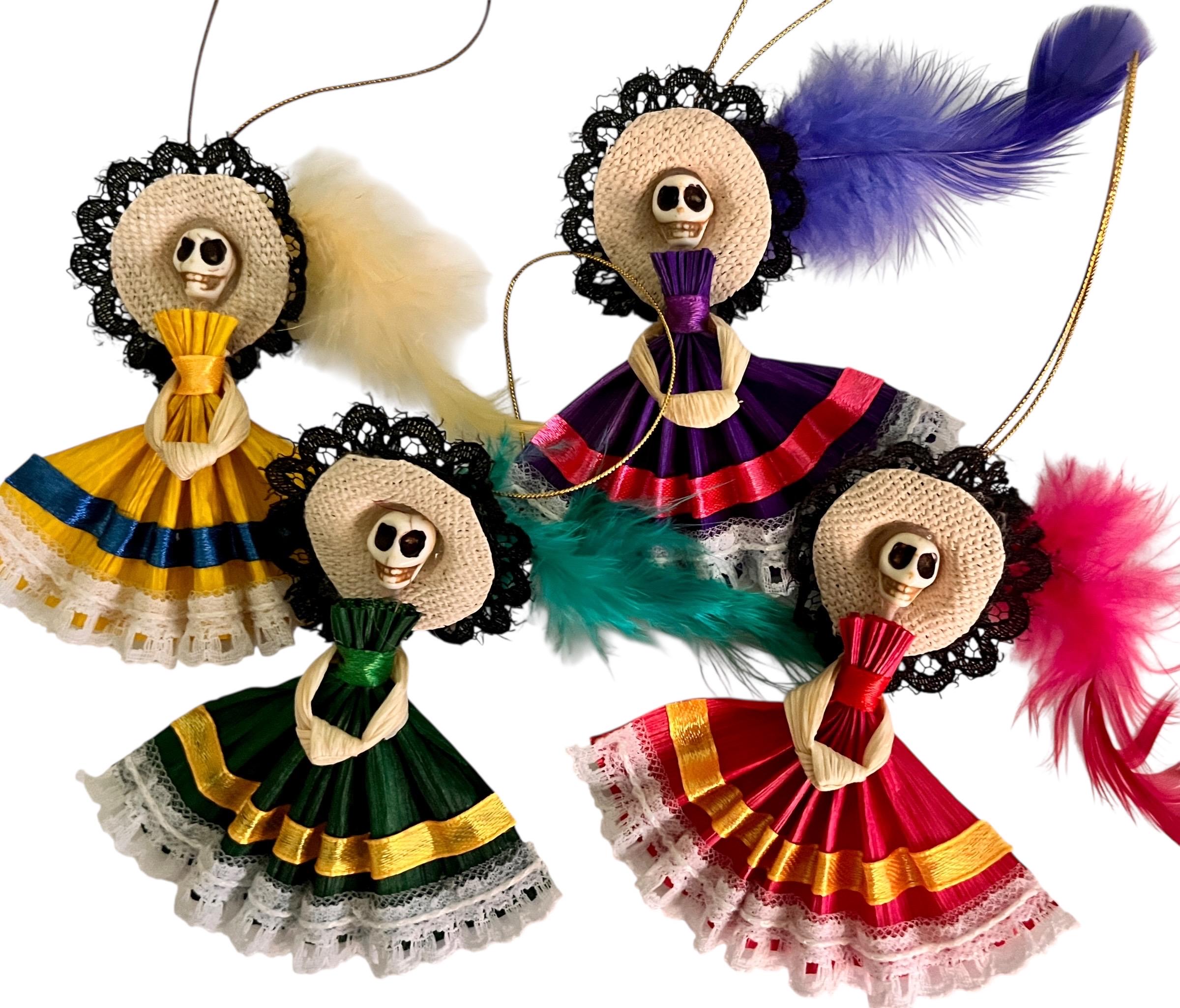 SET (4) Corn Husk Day of the Dead Catrina Ornaments