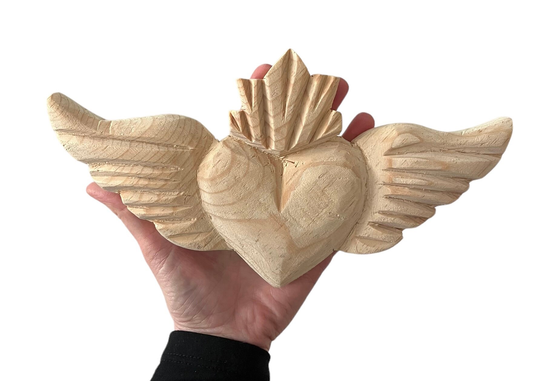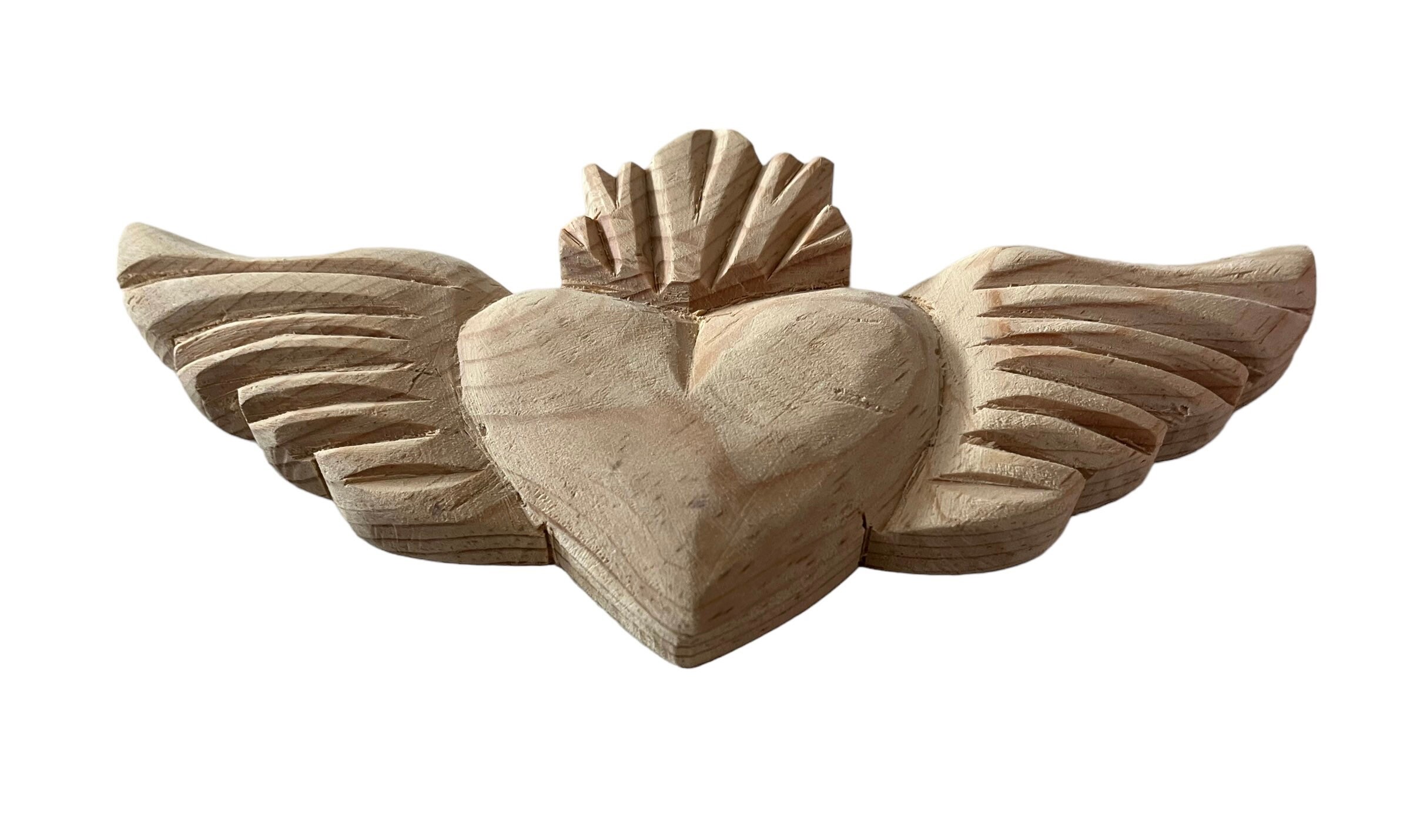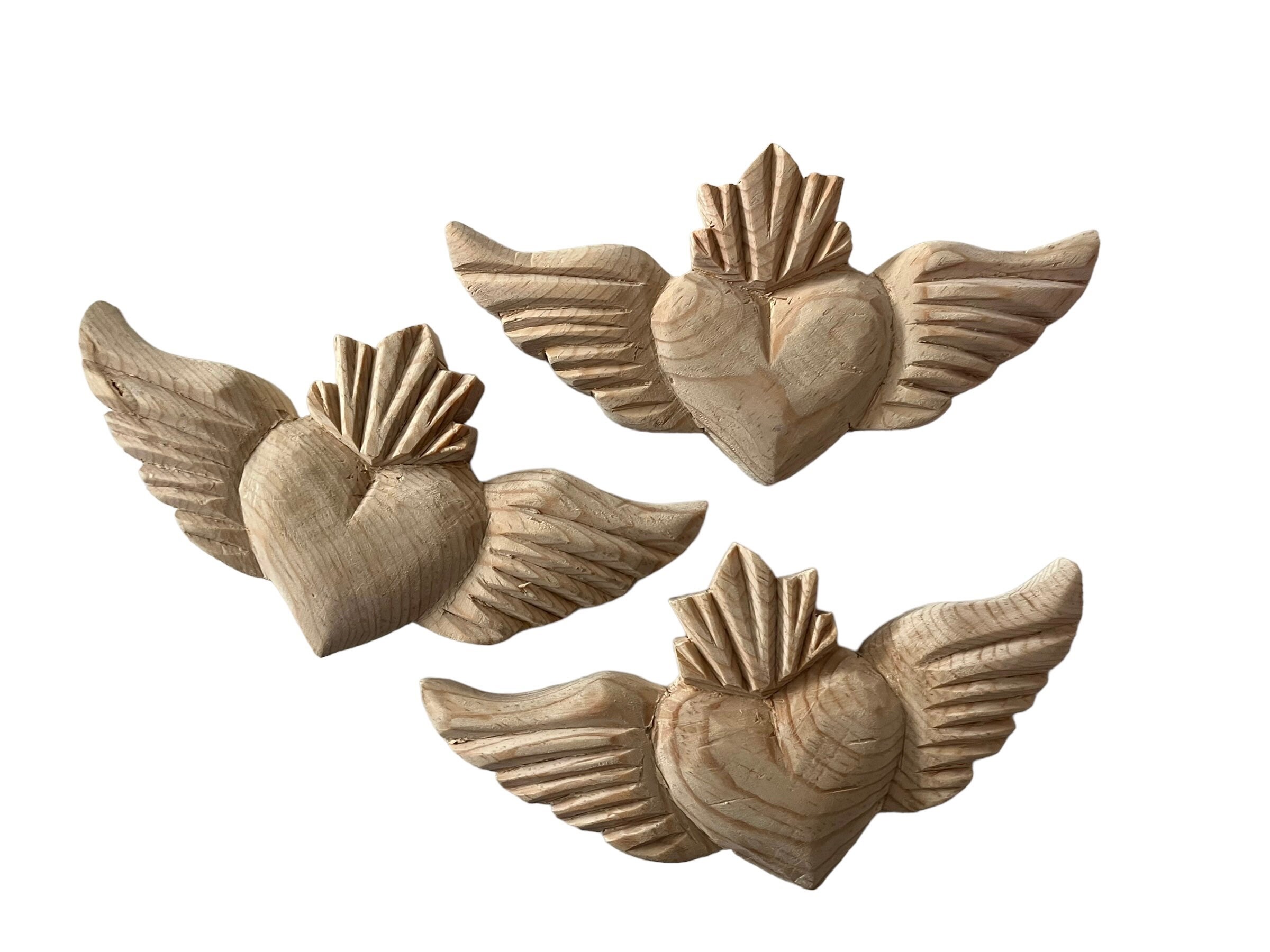 SET (3) natural carved wood winged hearts. DIY hearts perfect for your craft projects and finishing touches!