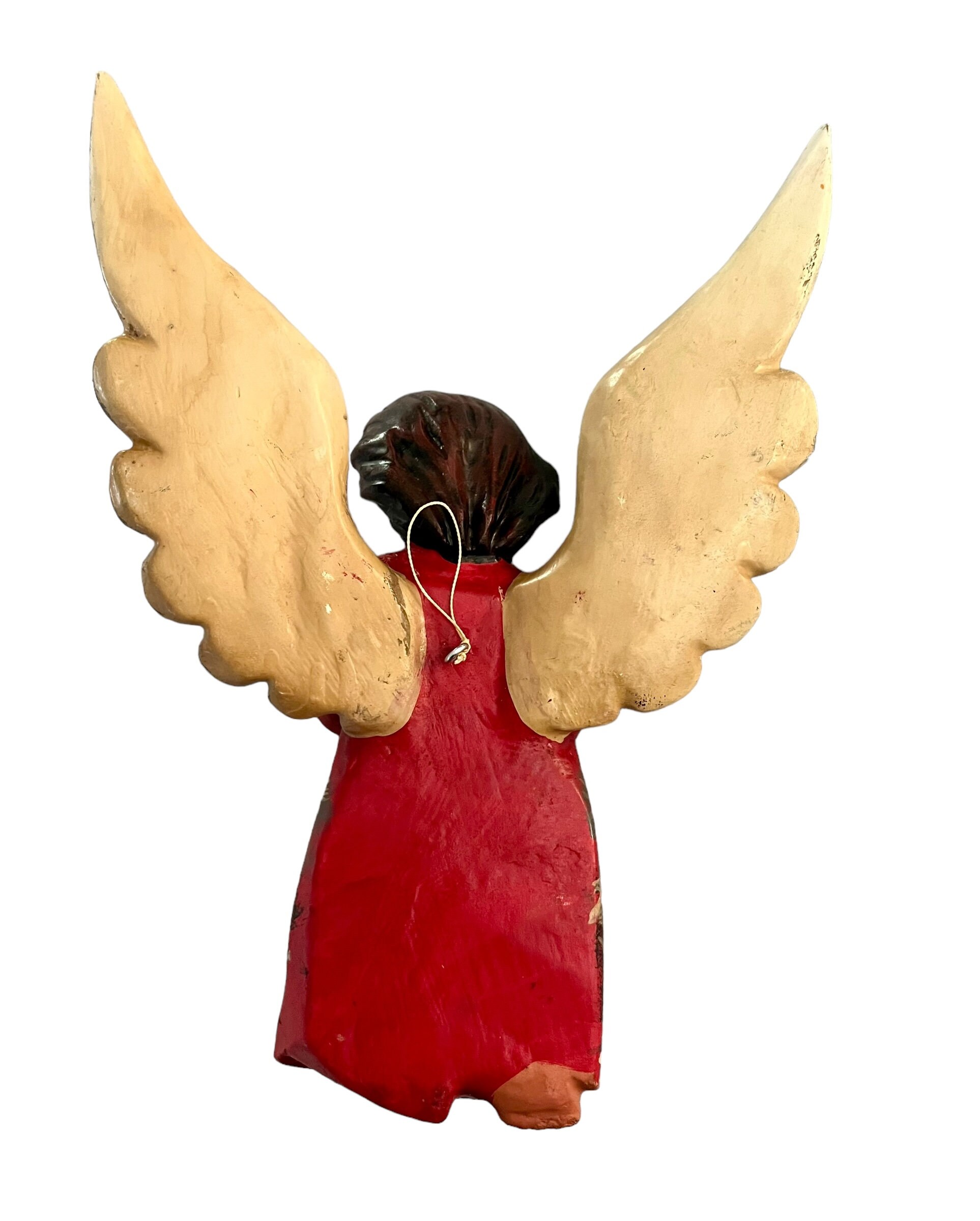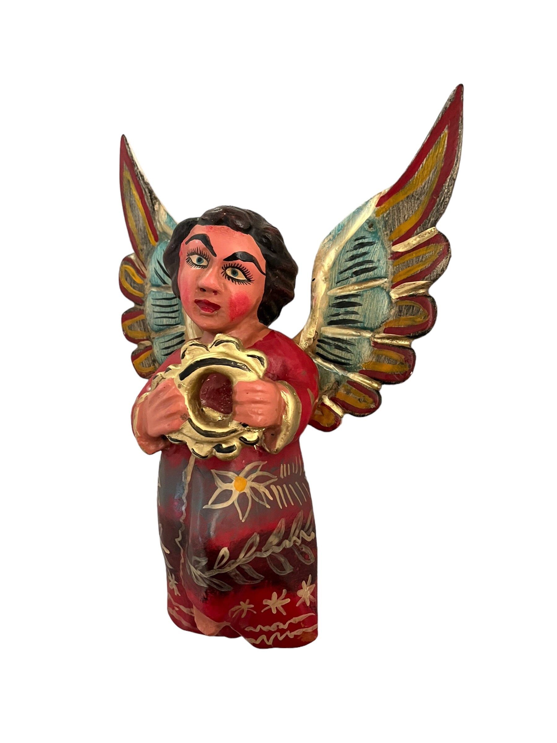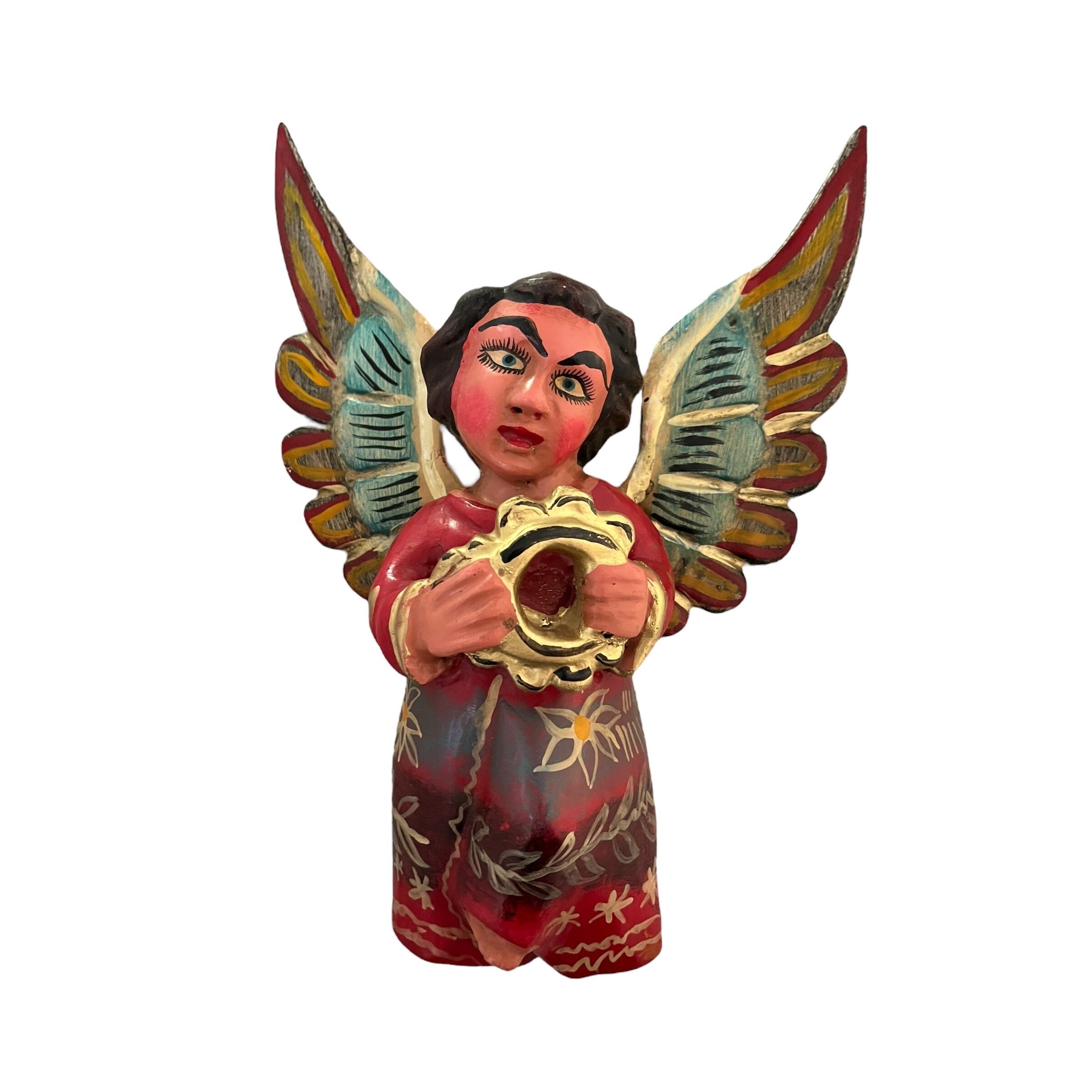 Sweet little carved wood Angel with tambourine.