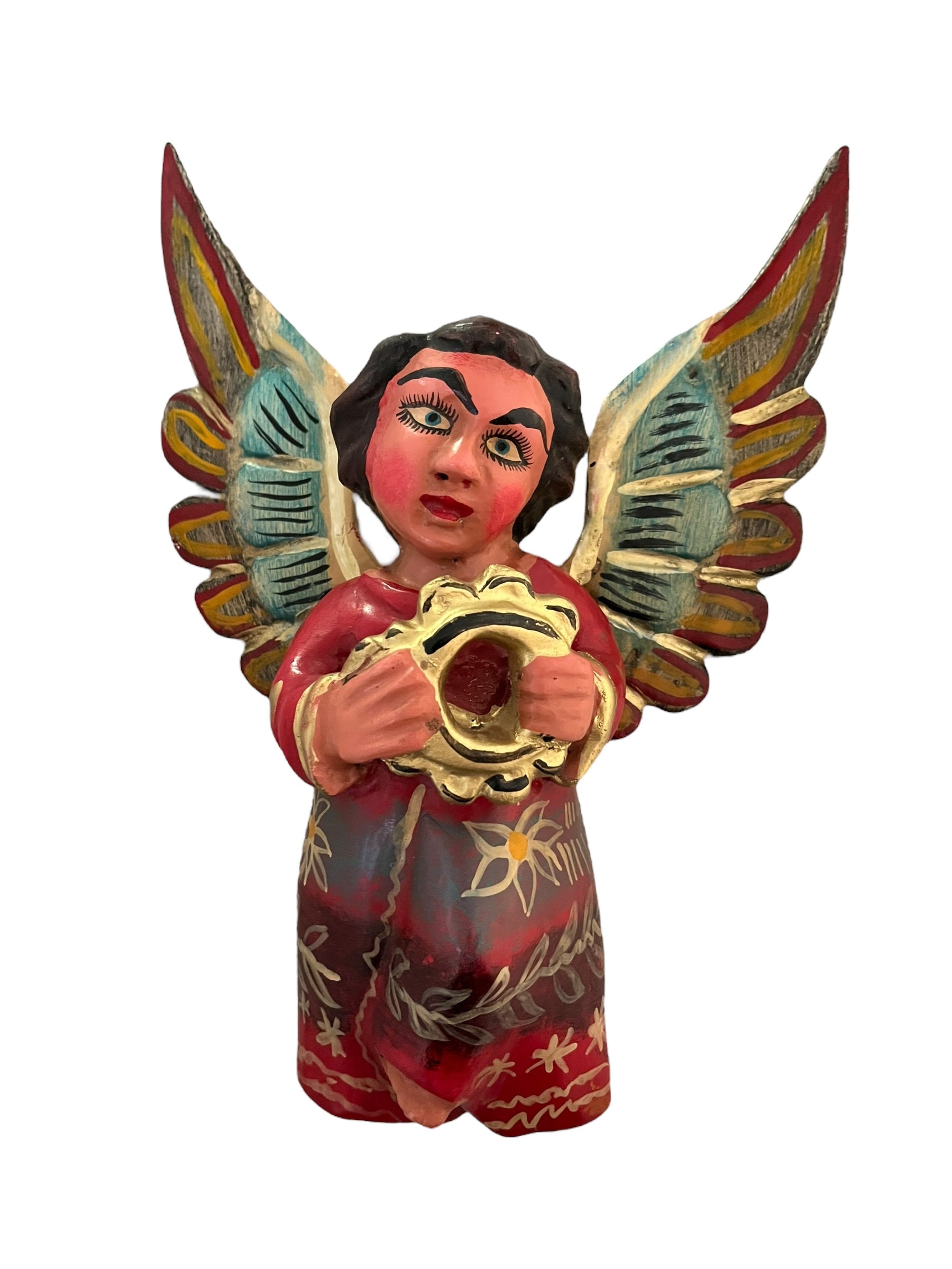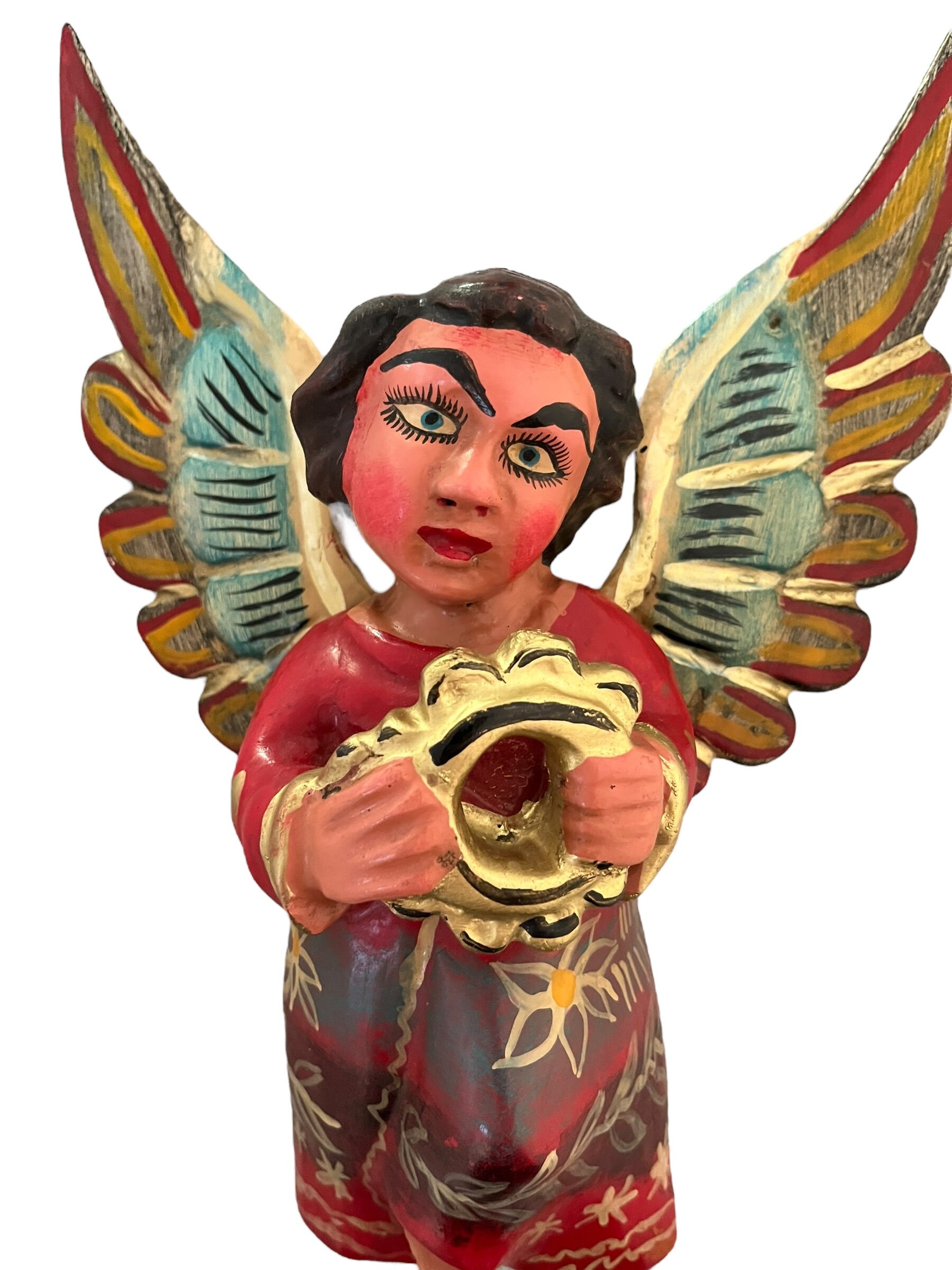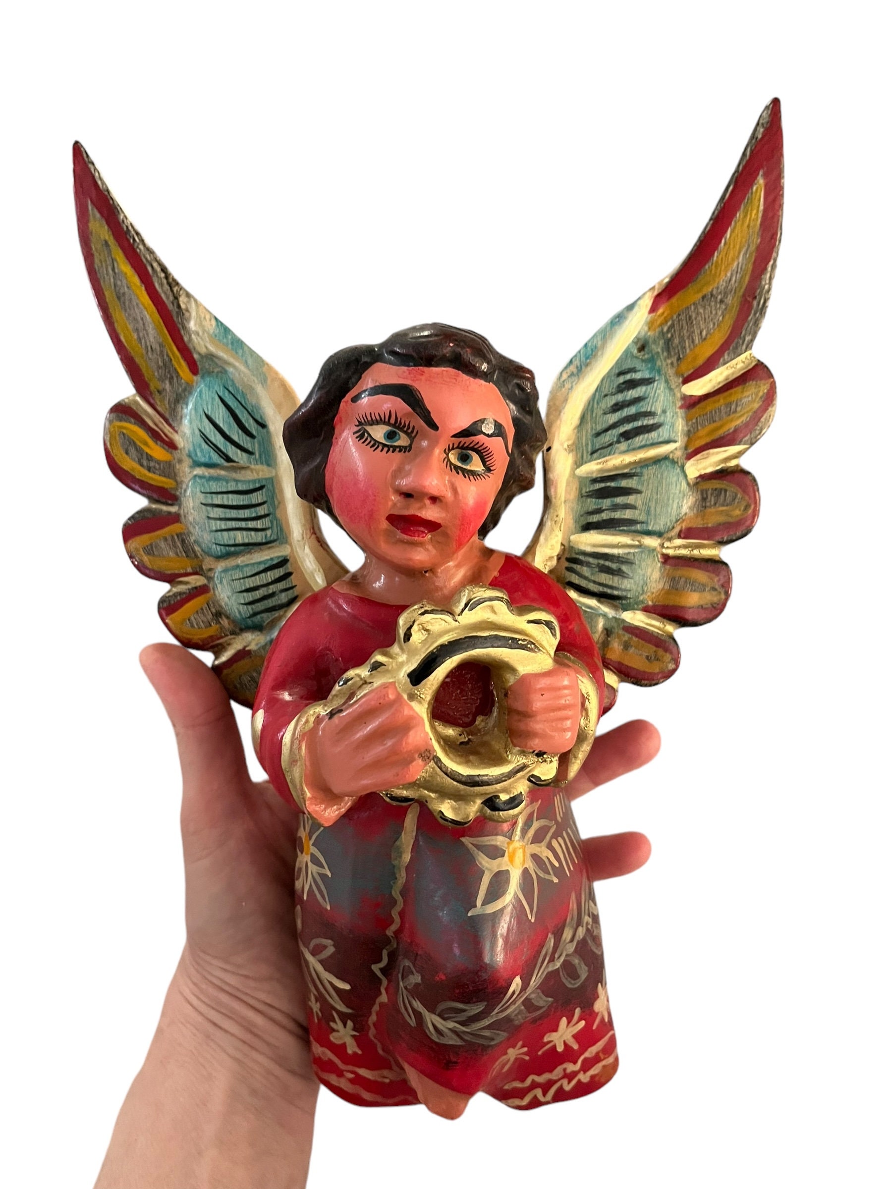 Sweet little carved wood Angel with tambourine.