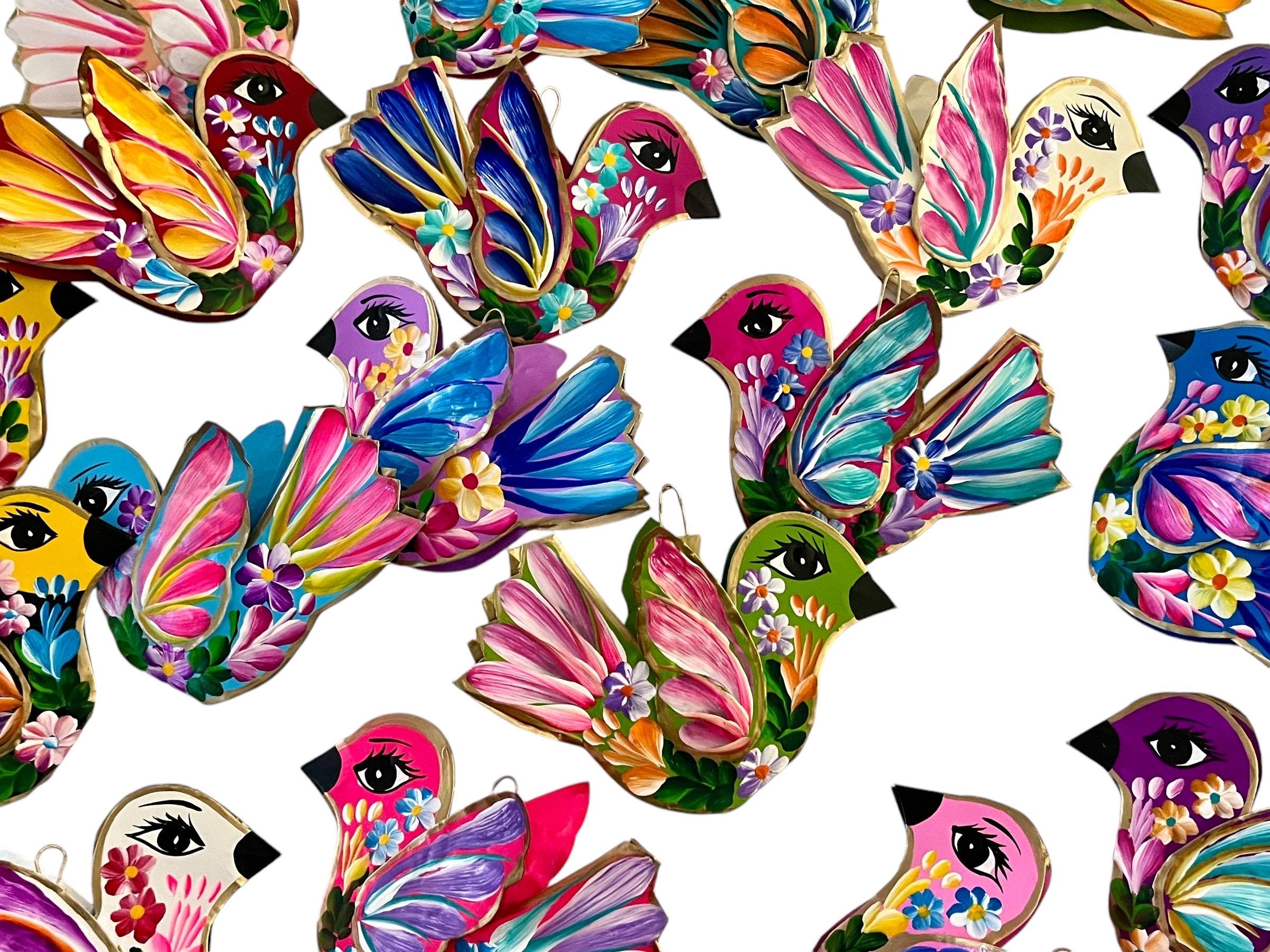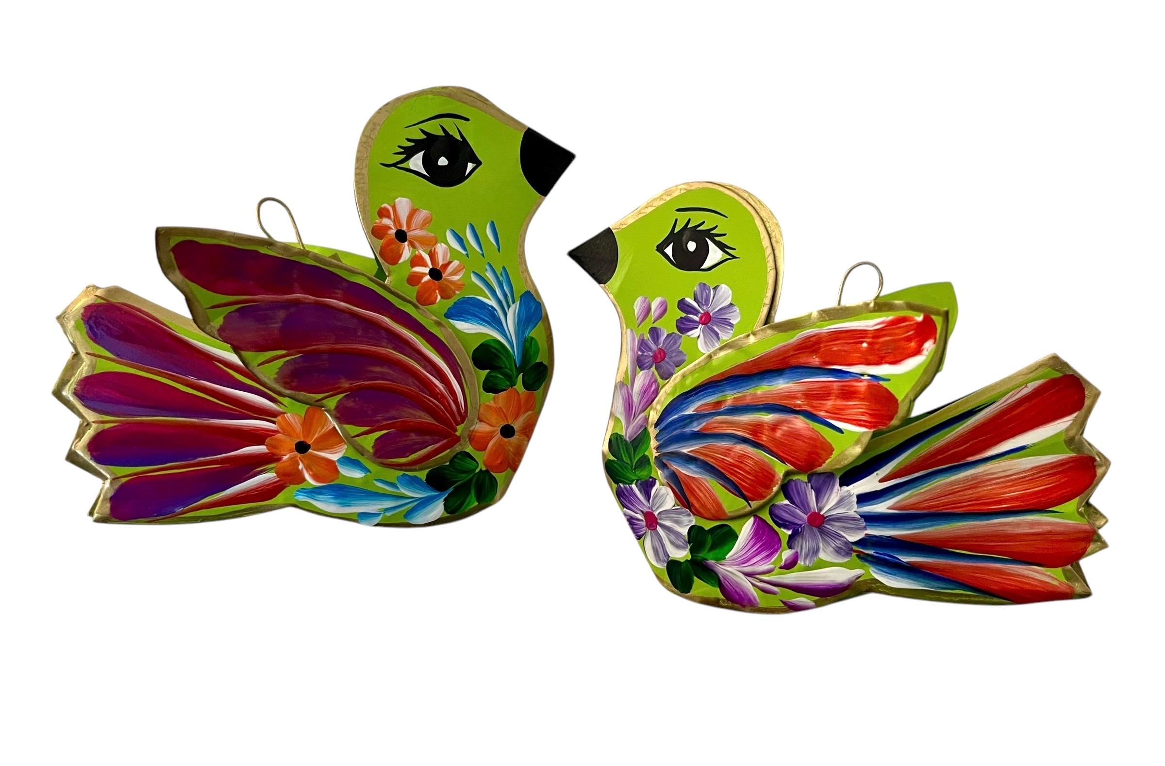 Adorable colorful hanging bird ornaments. Loop at wings to string for hanging.