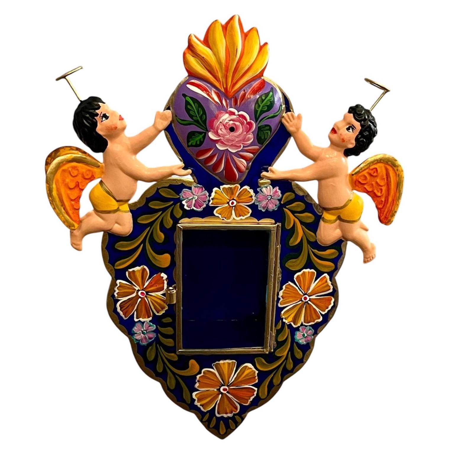 Tin Nicho Picture Frame with Angels & Sacred Heart