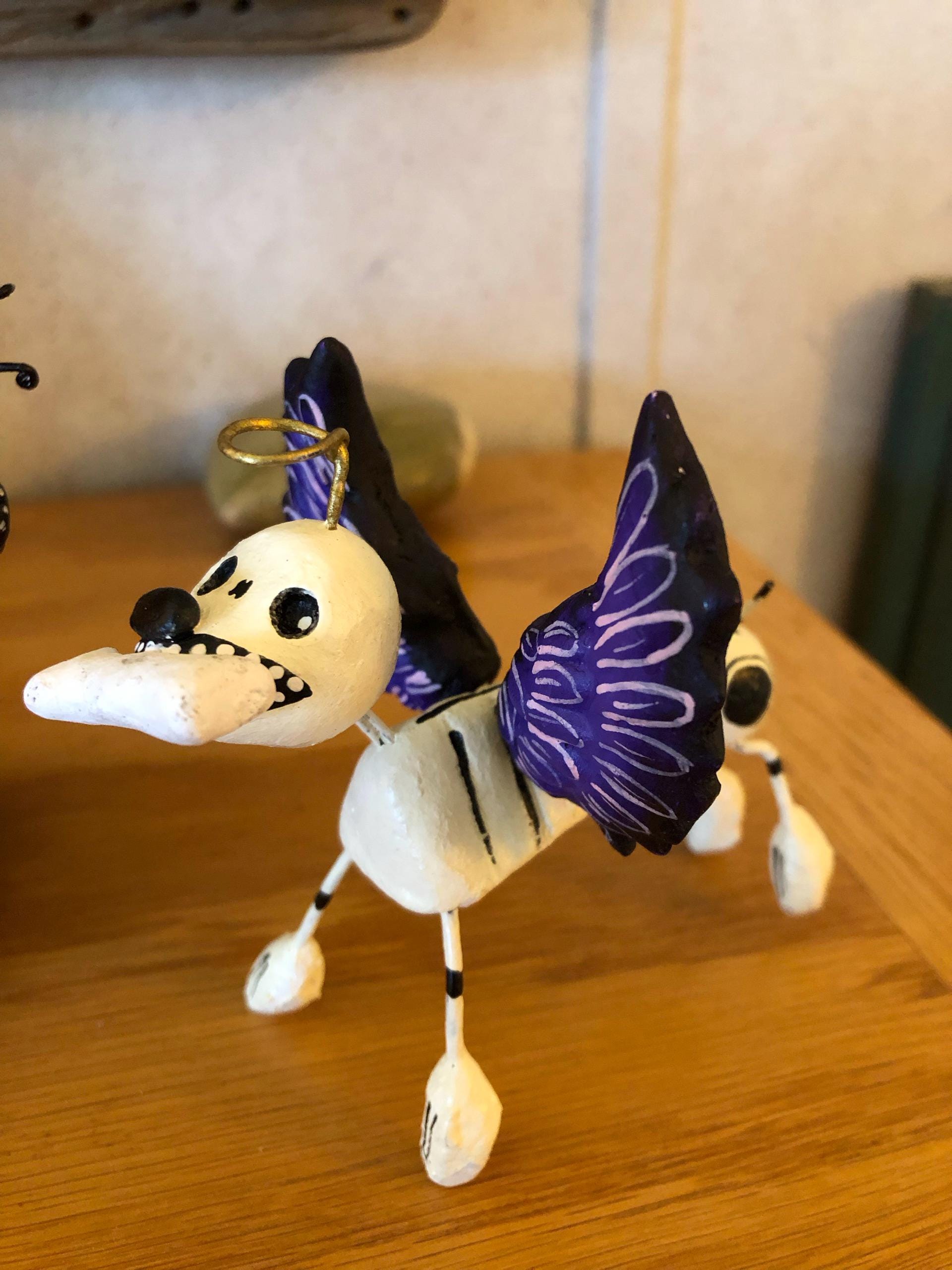 Sweet little Angel Dog with Wings and Halo holding a bone in it’s mouth!