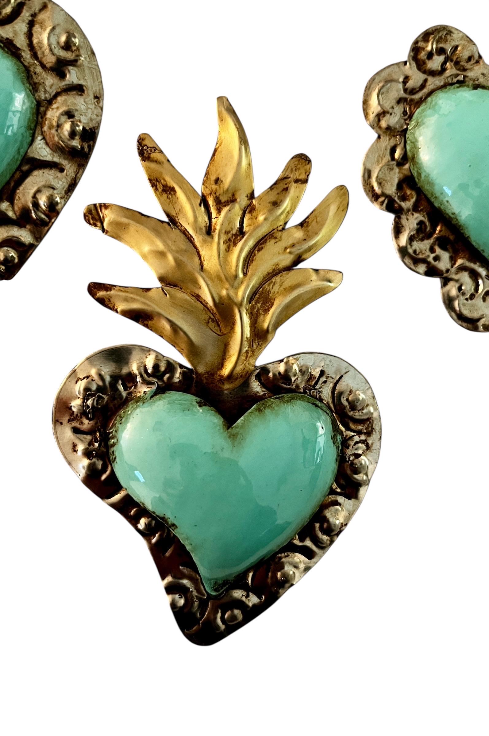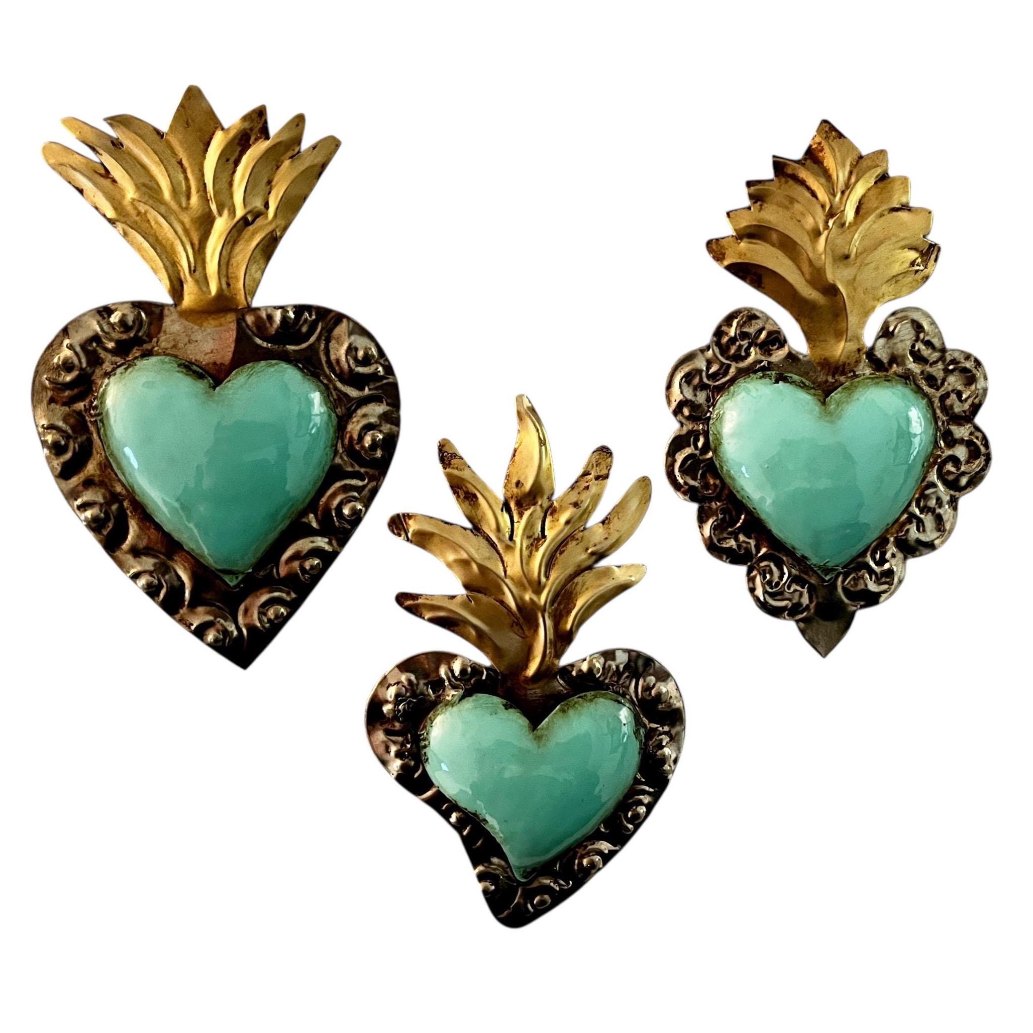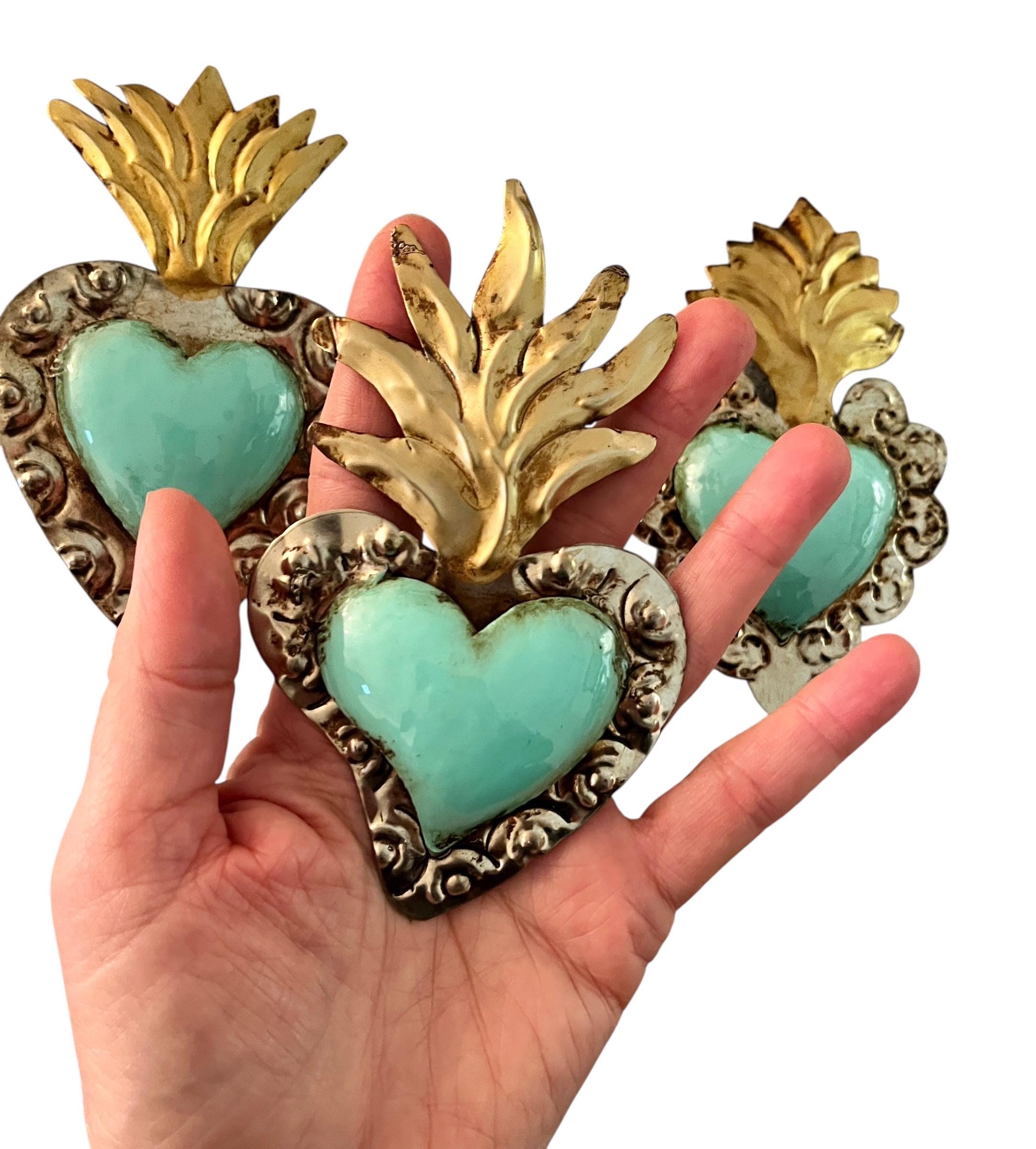 SET (3) Small Tin Hearts Ornaments
