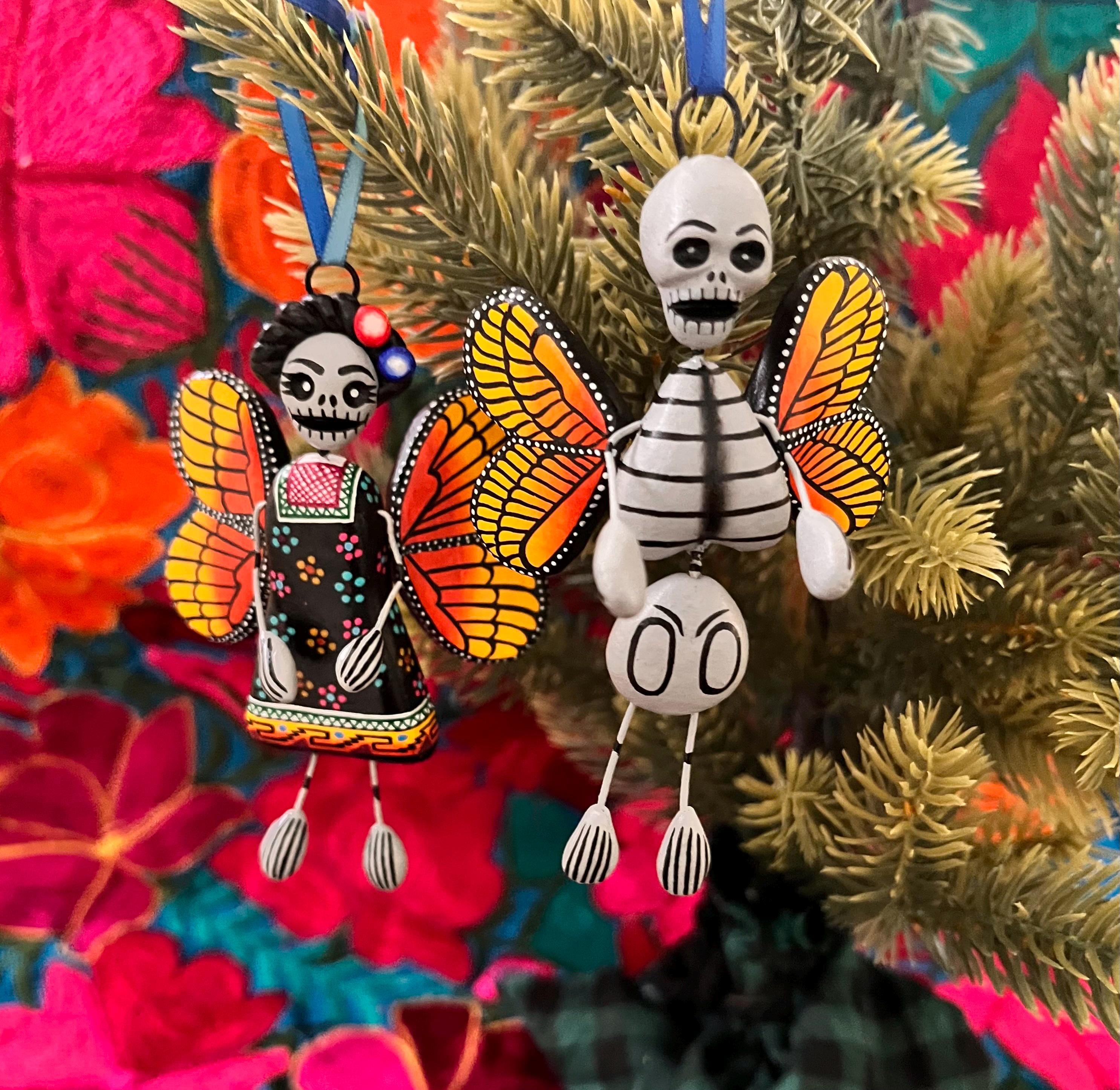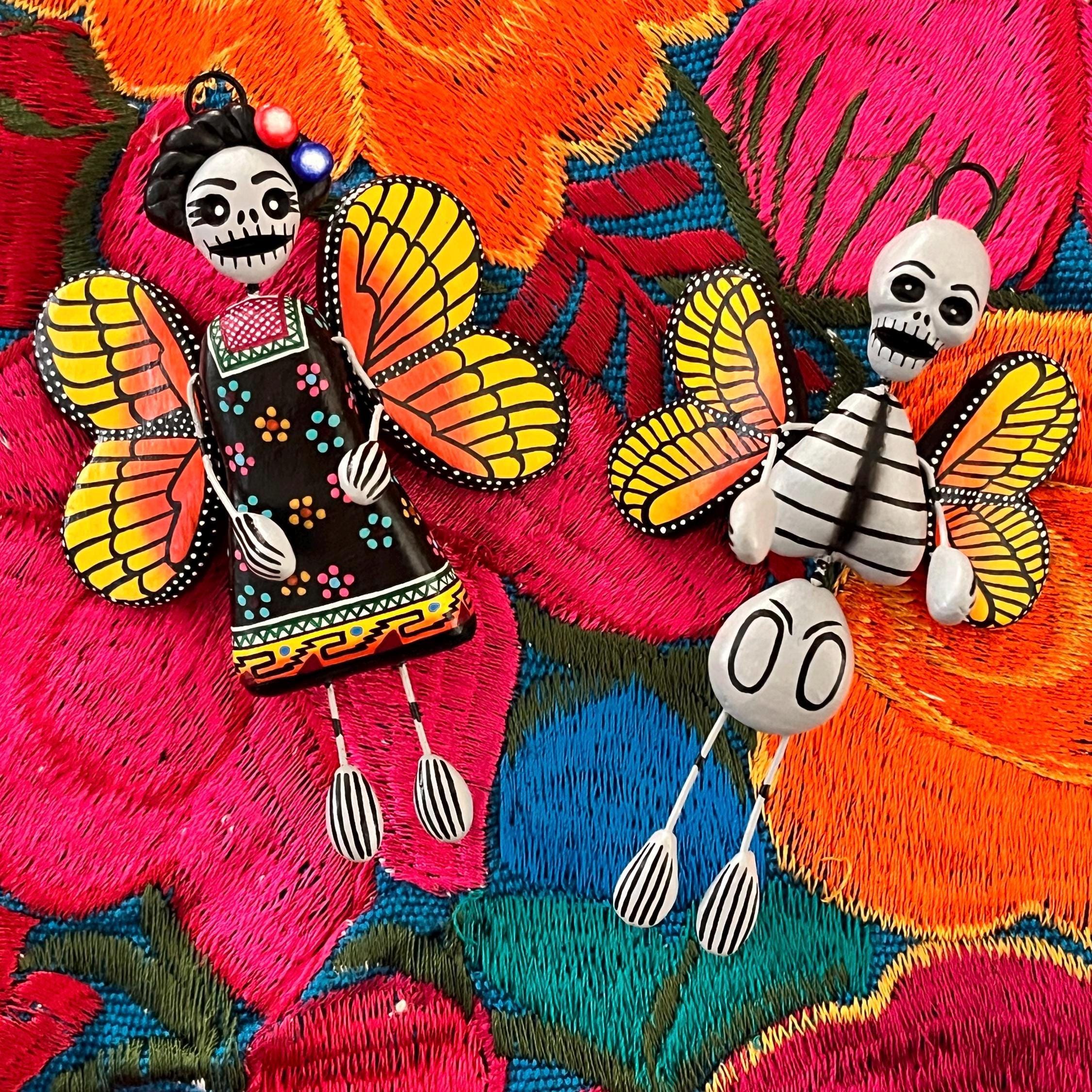 Very cute little clay Day of the Dead Butterfly ornaments. SET (2)