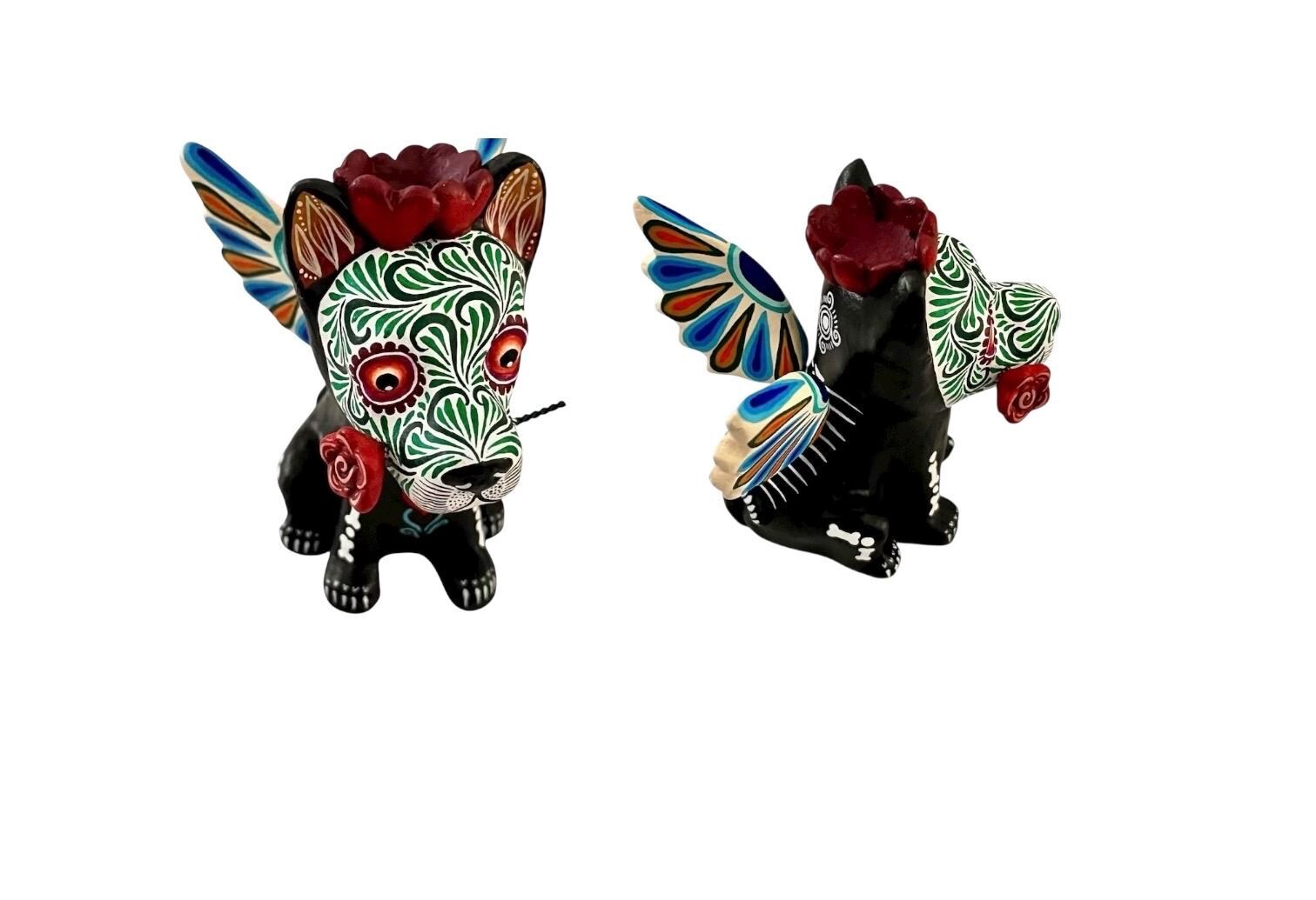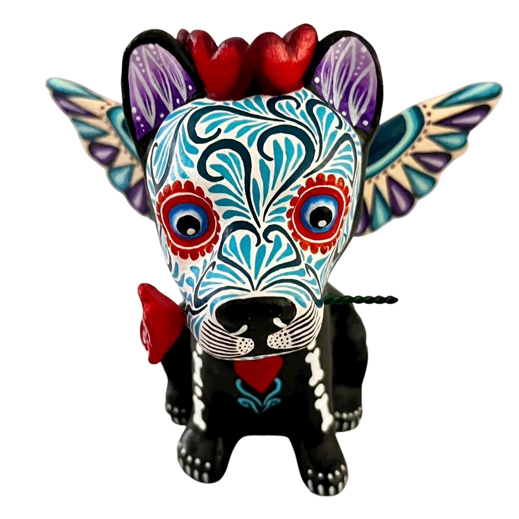 Sweet little Day of the Dead Dog with a crown of hearts, painted wings and a Rose in it’s mouth!