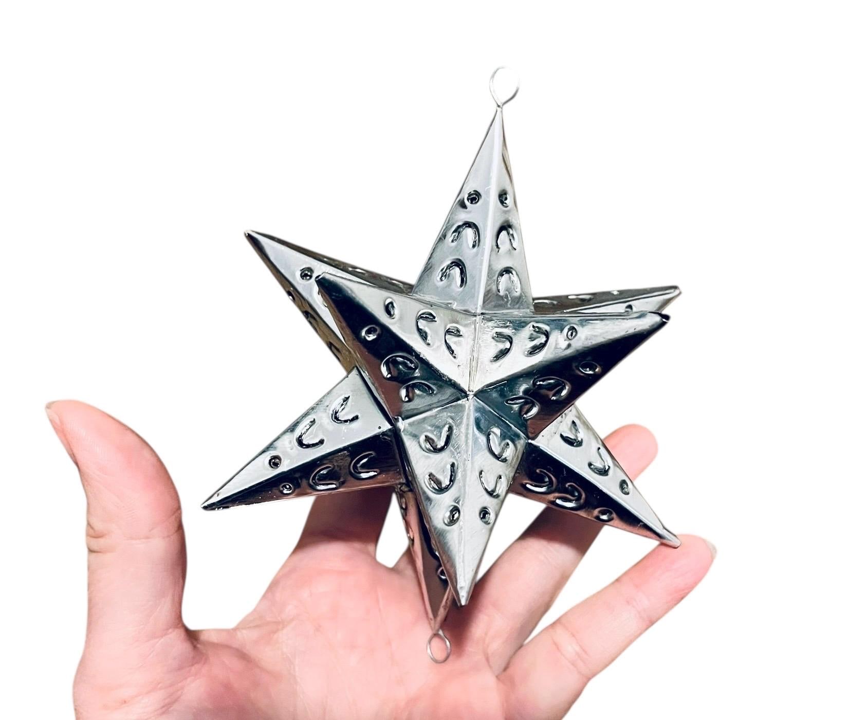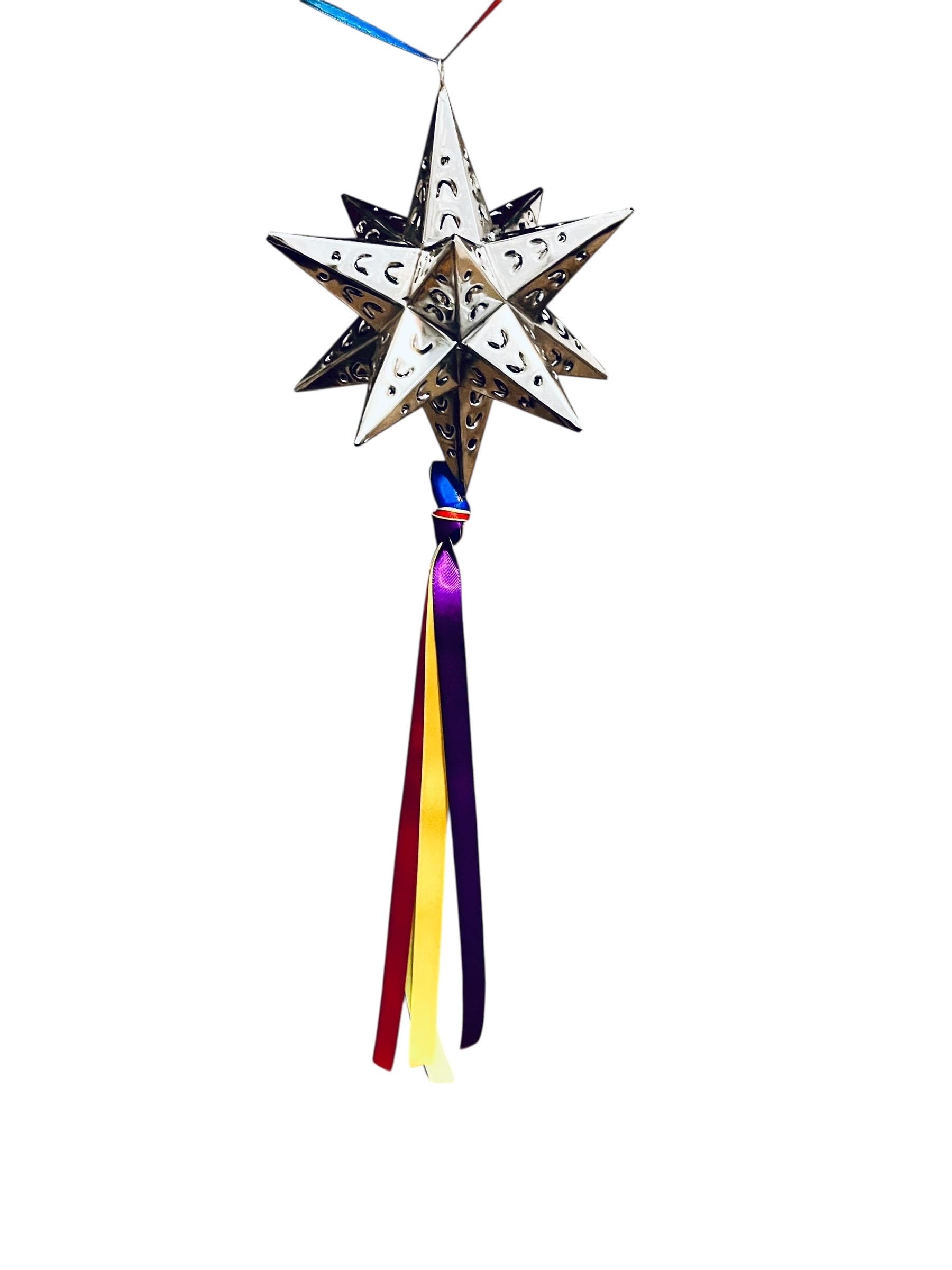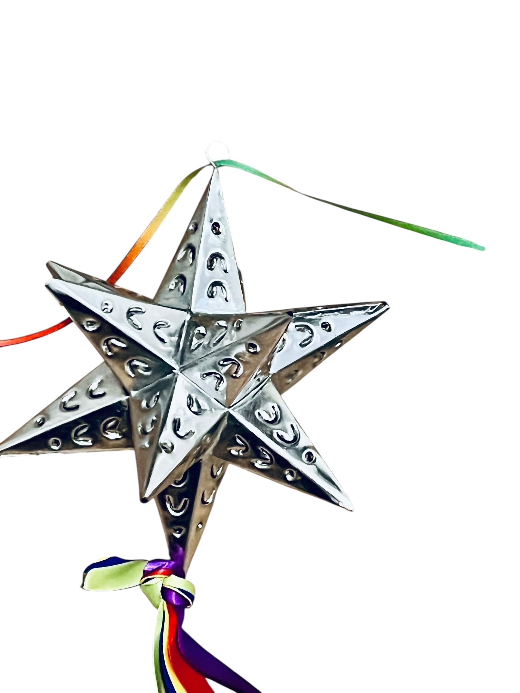 Each star has two loops, one on top for hanging and one at bottom to hold ribbons.