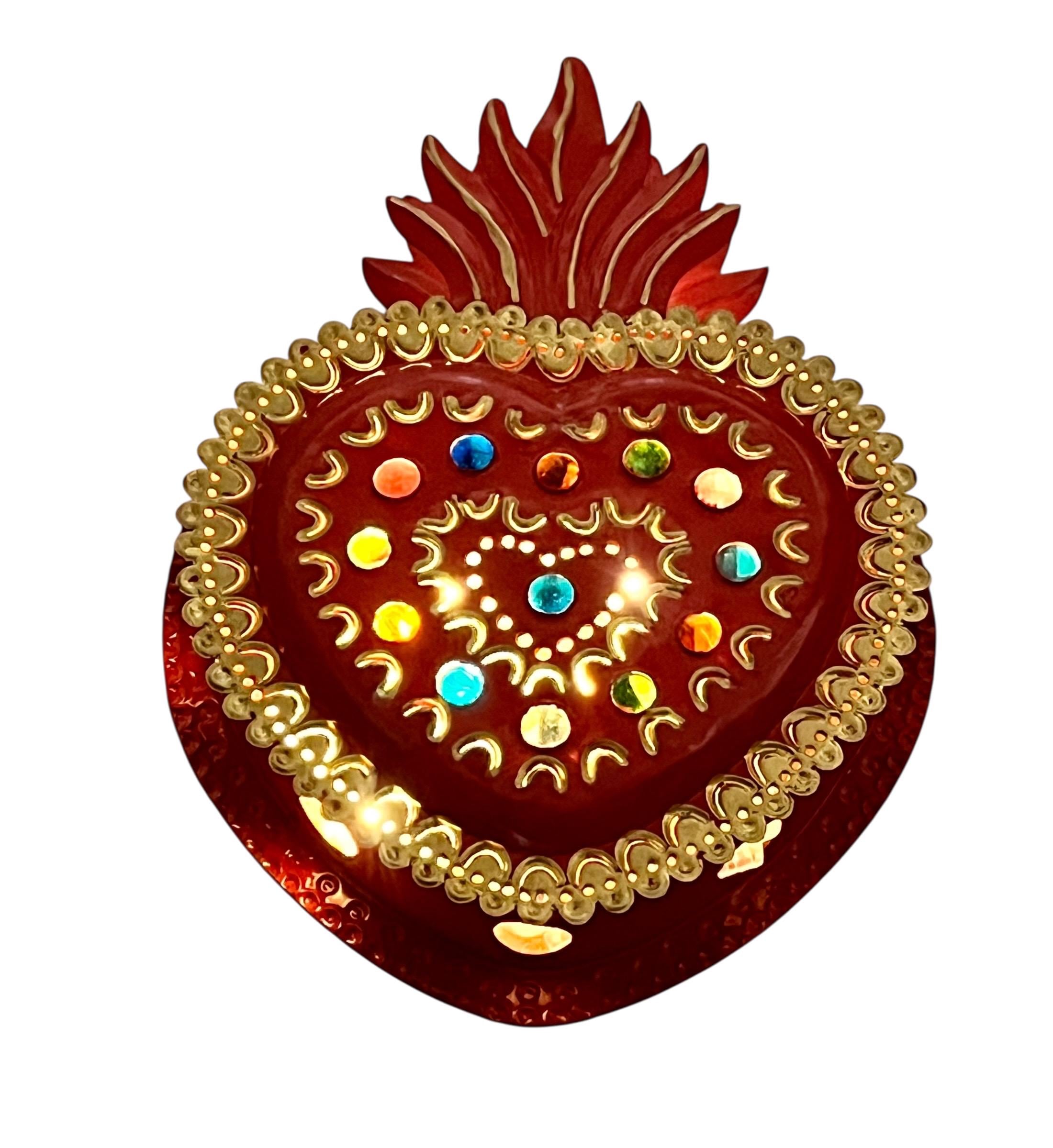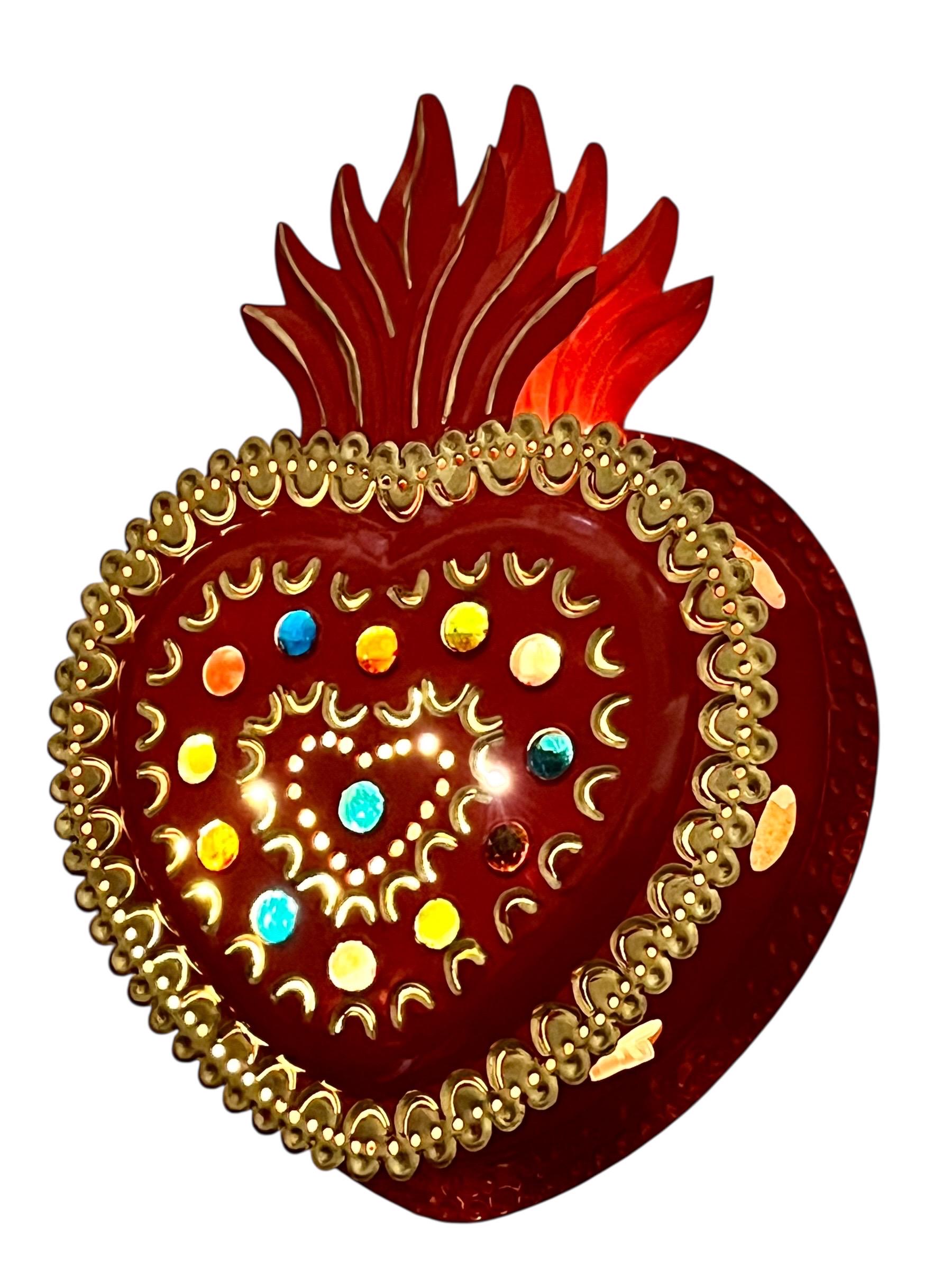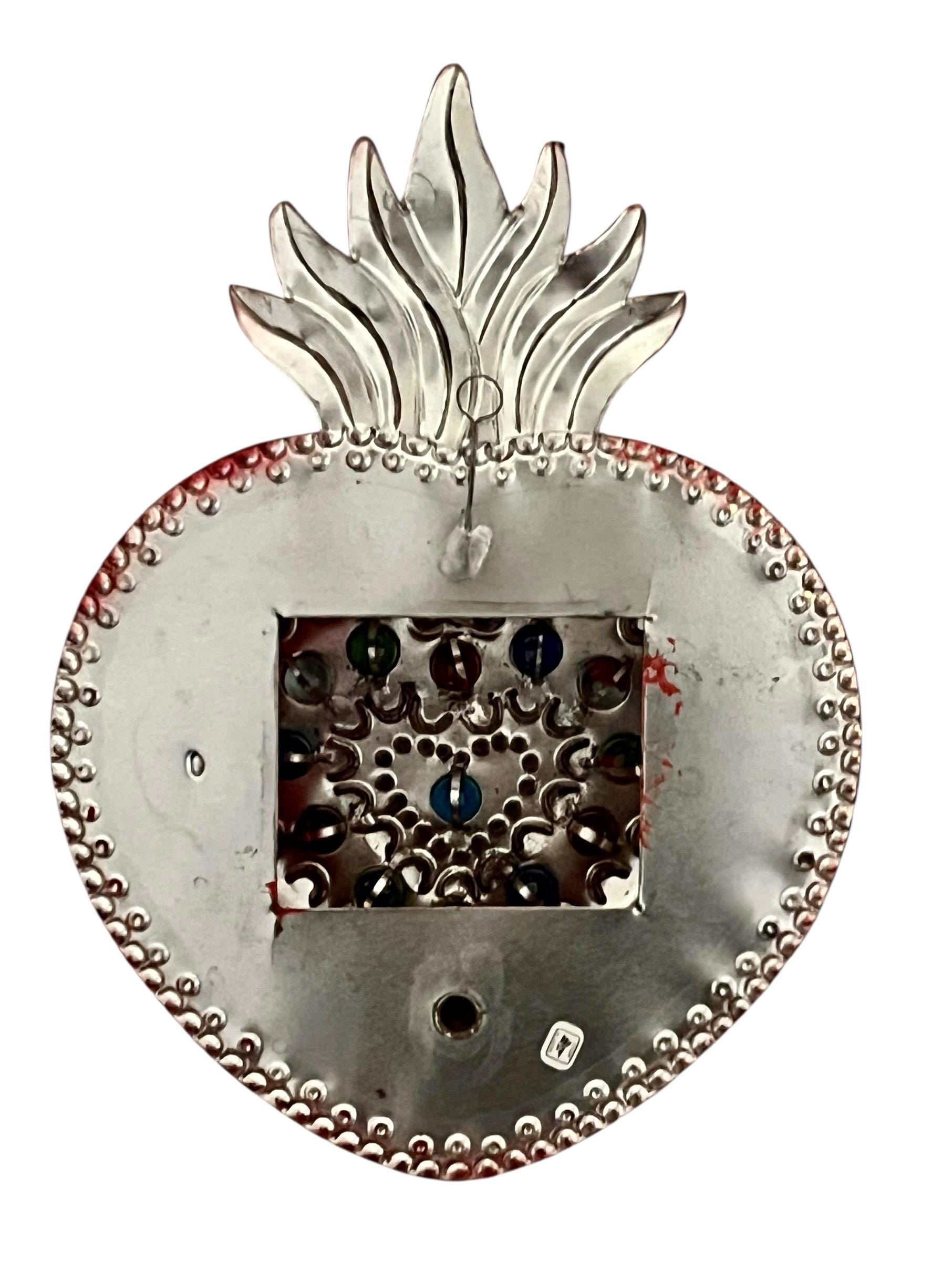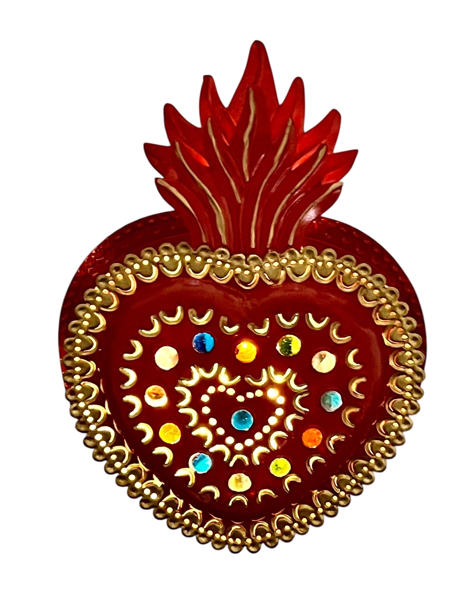 Layered tin Sacred Heart - Cutouts on front of heart and sides let light shine through.