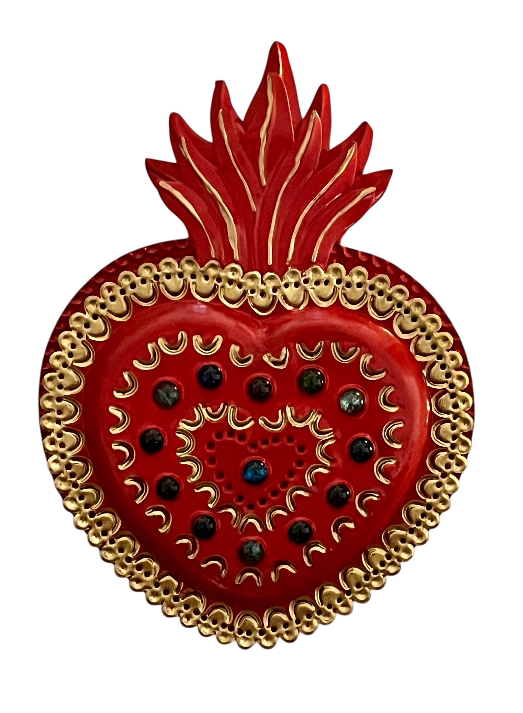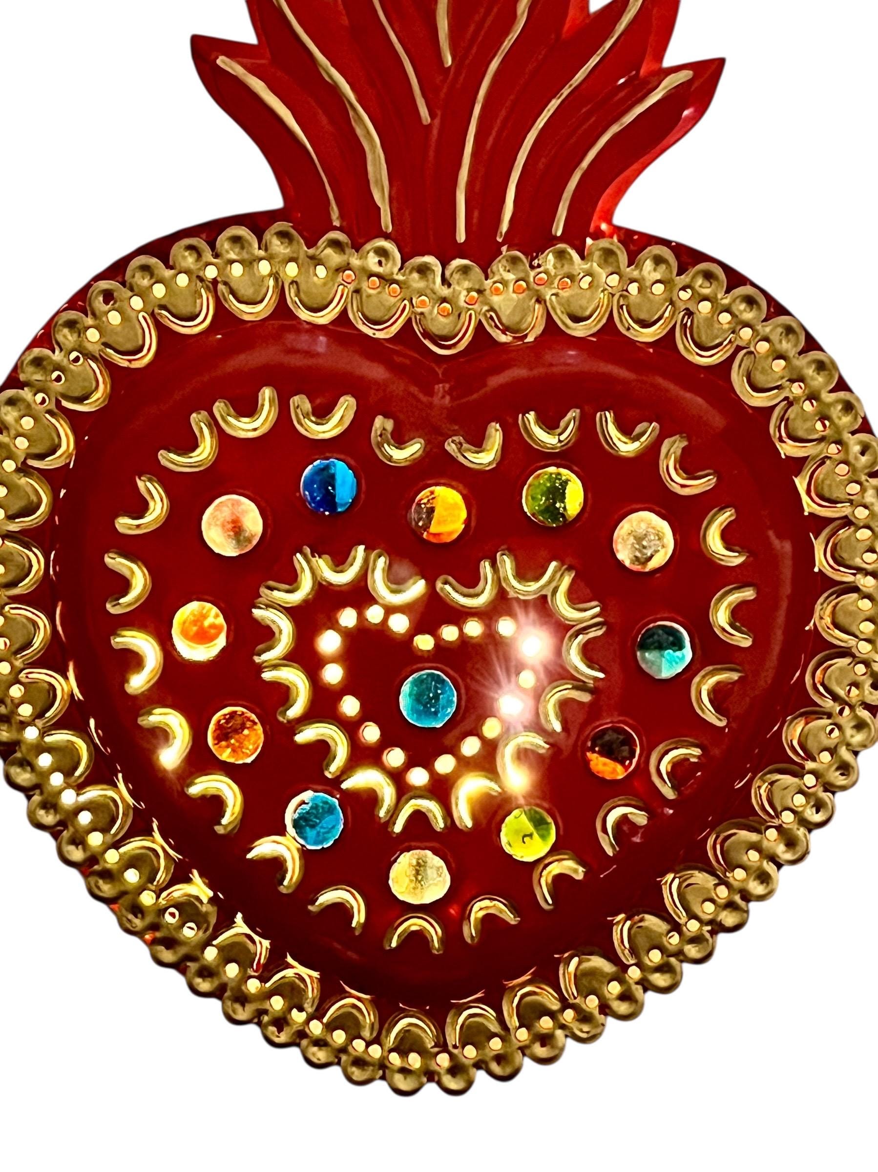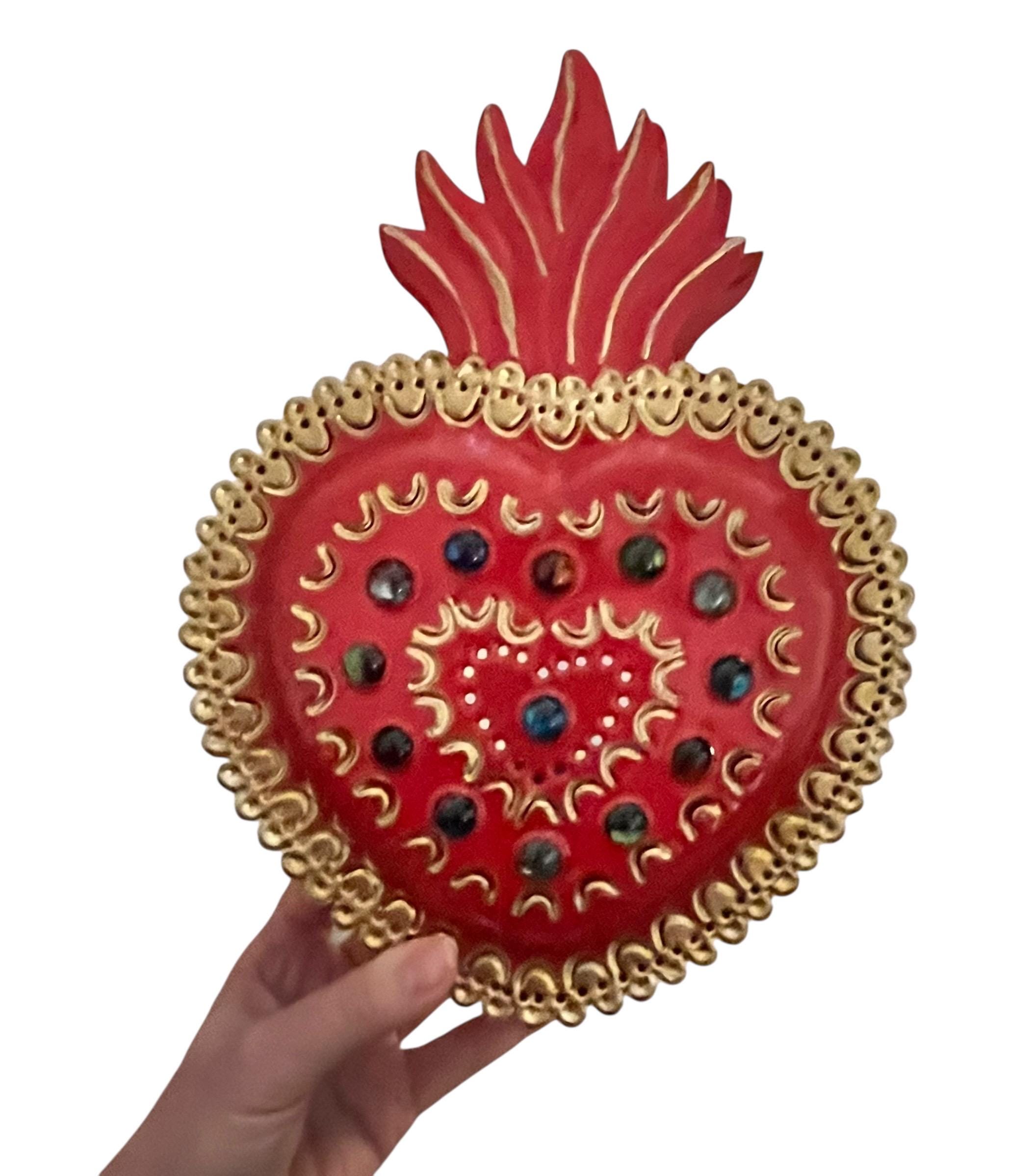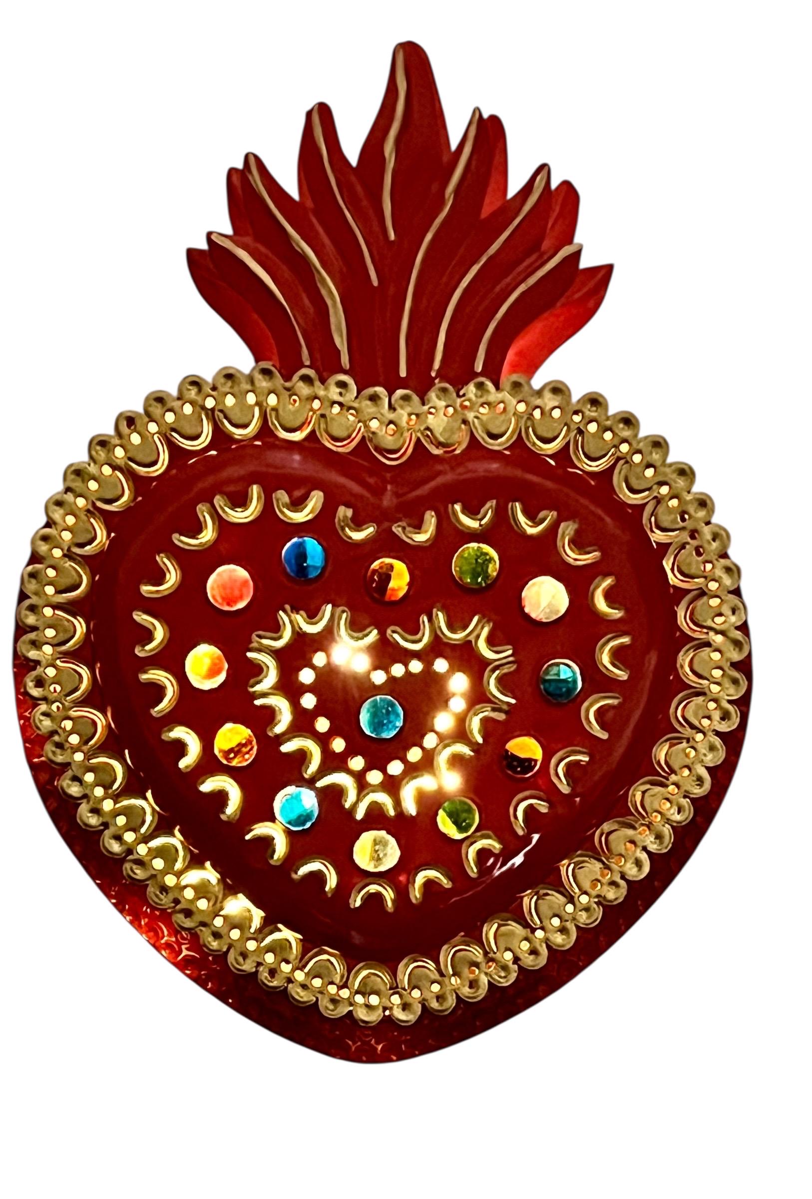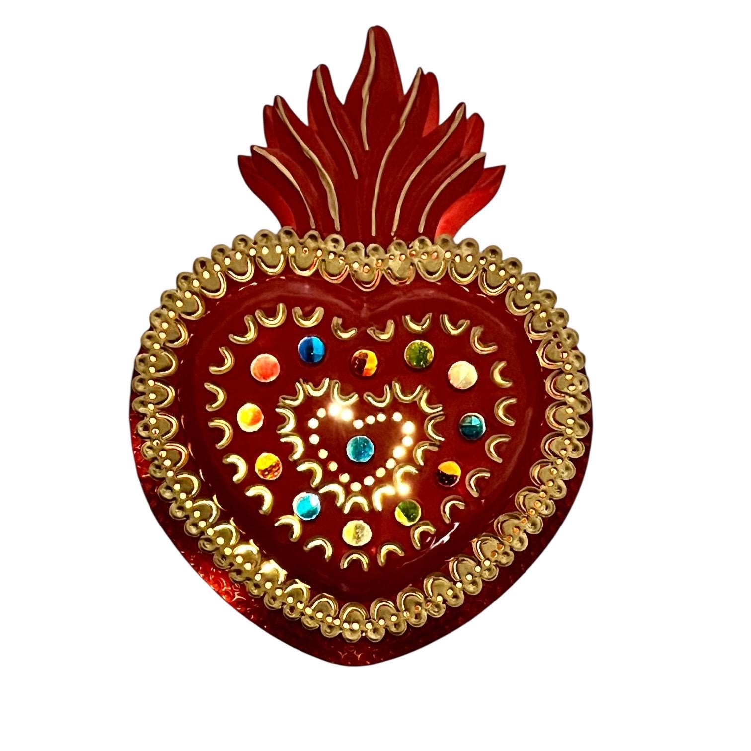 Layered tin Sacred Heart - Cutouts on front of heart and sides let light shine through.