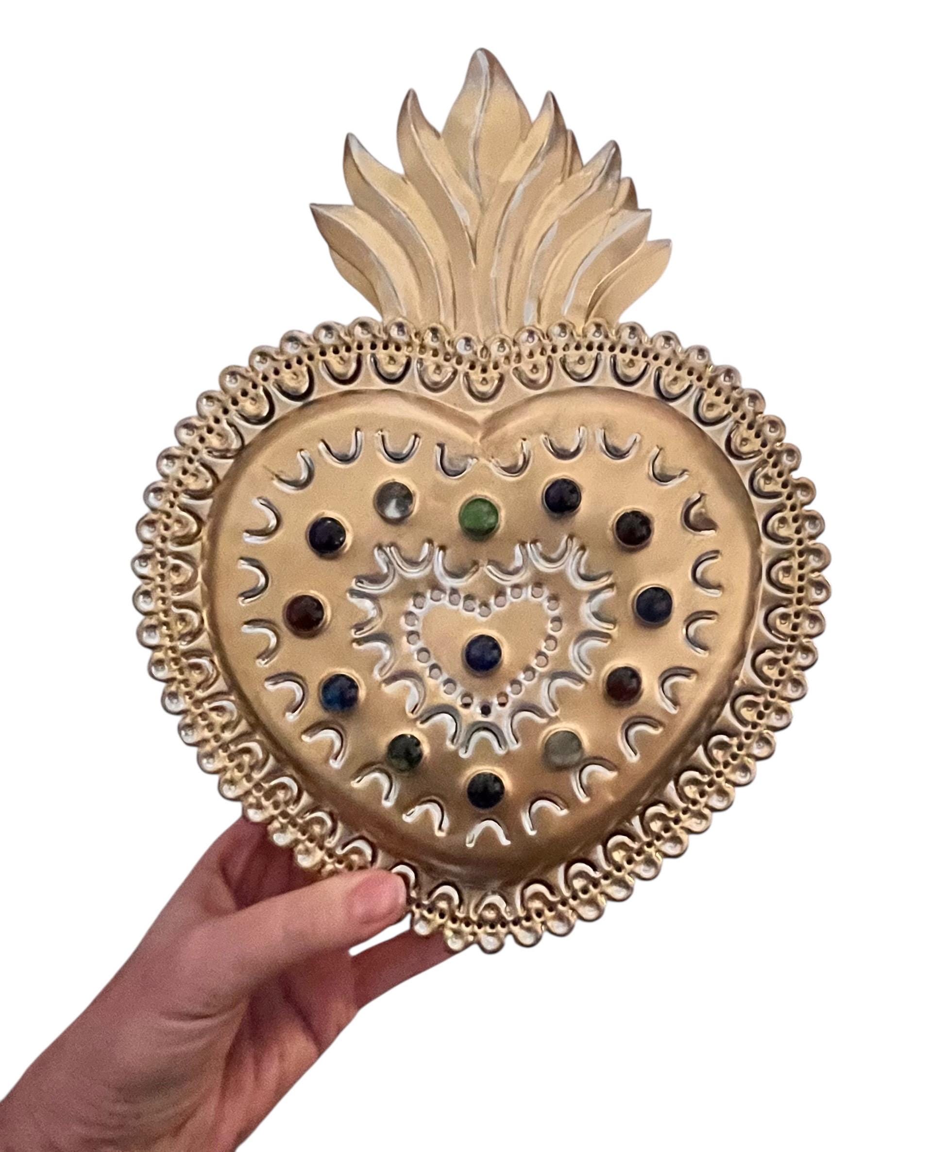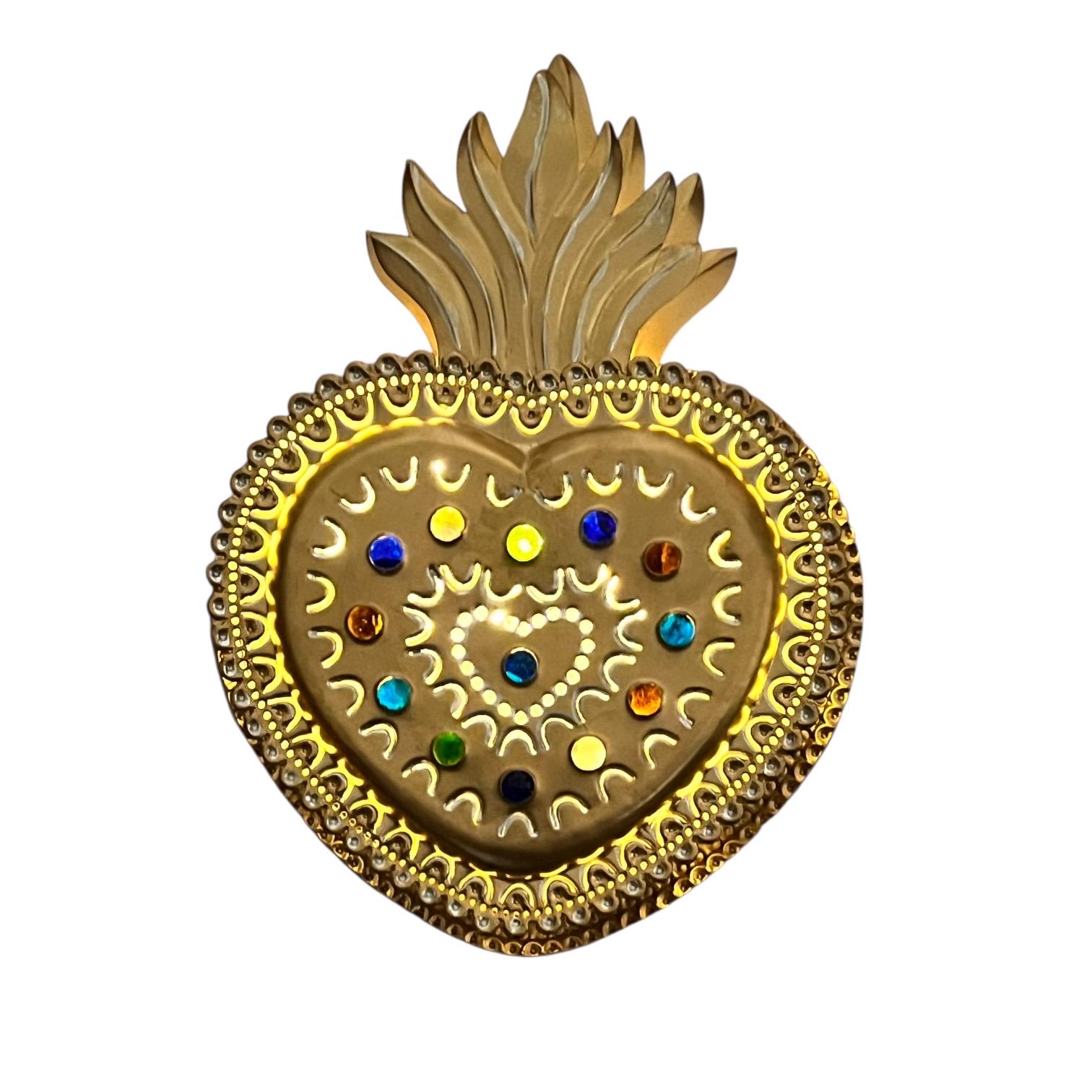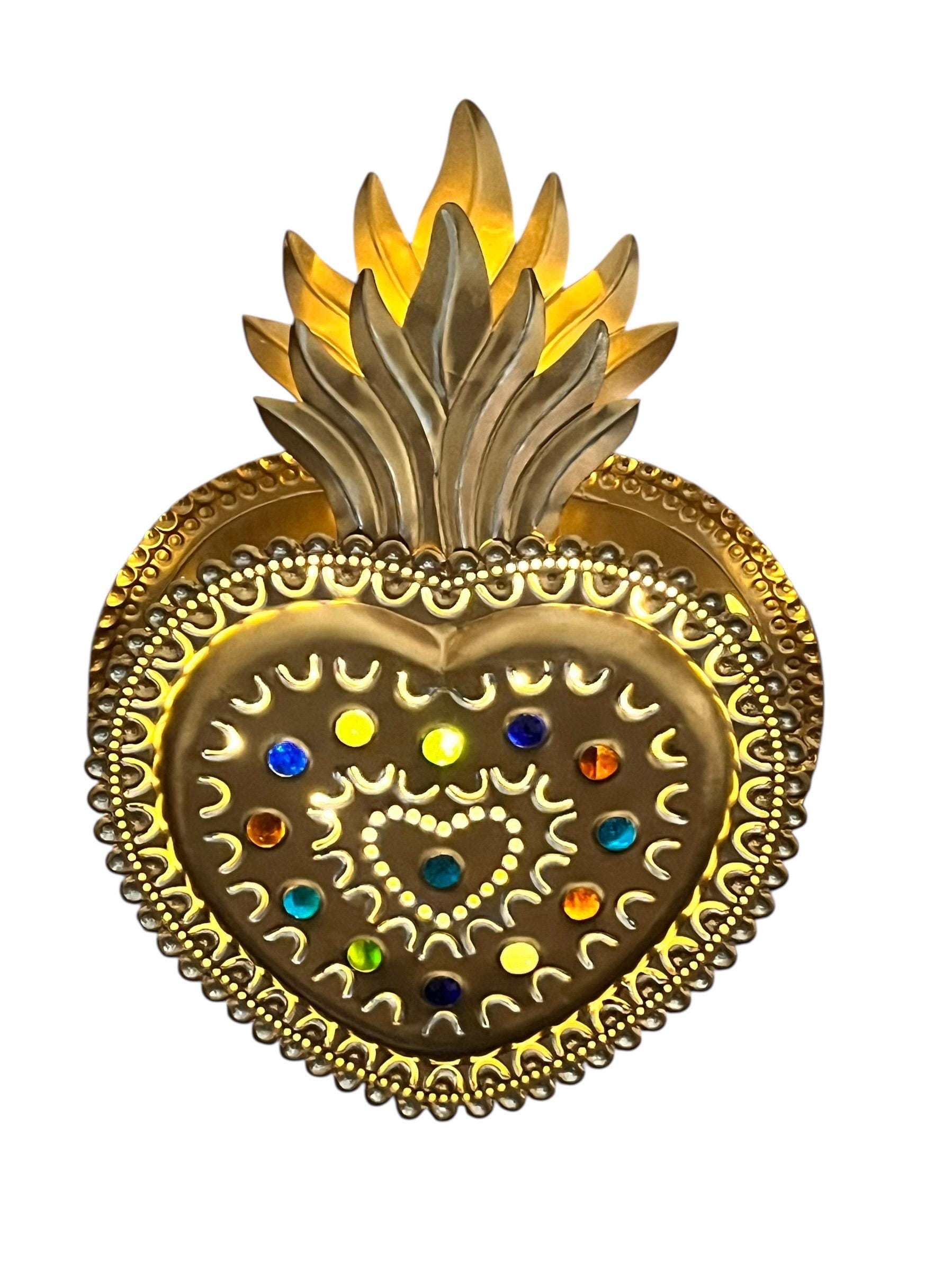 Layered tin Sacred Heart - Cutouts on front of heart and sides let light shine through.