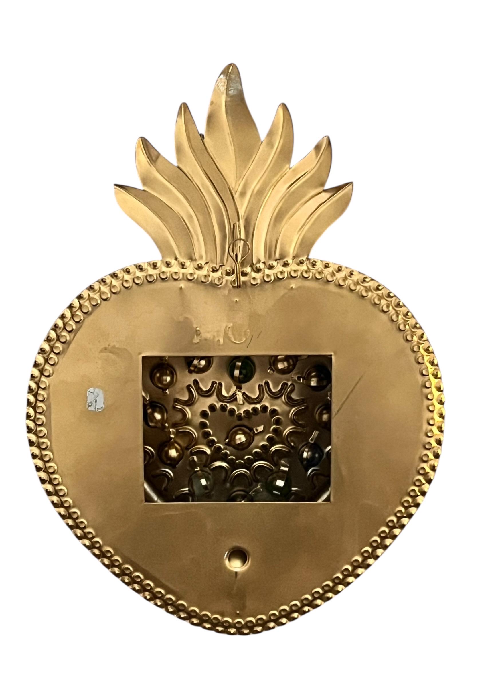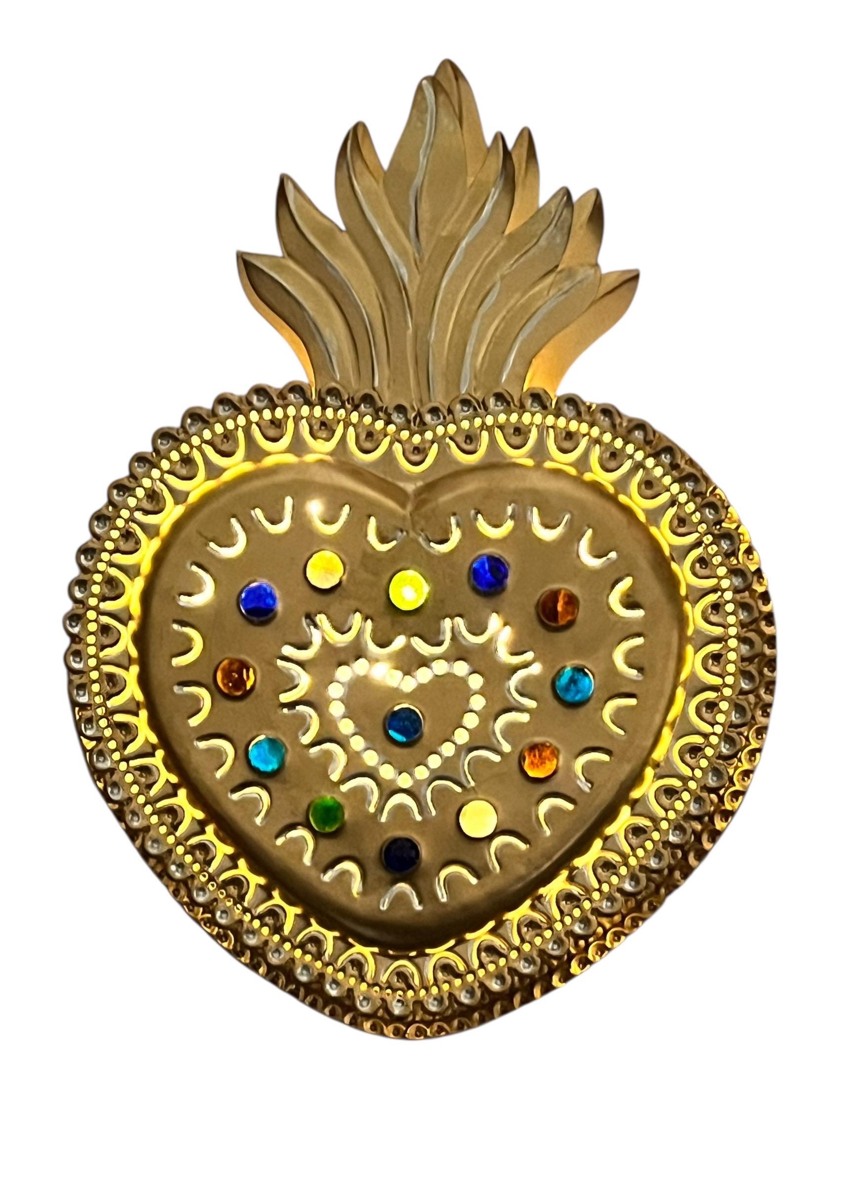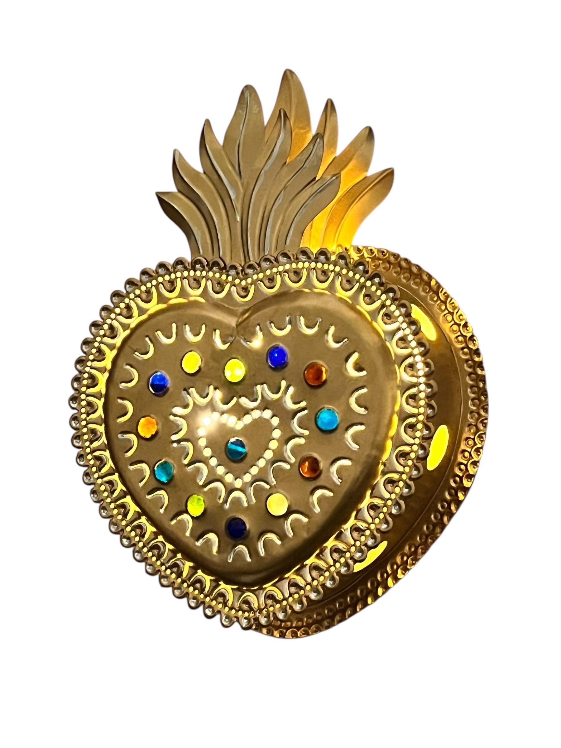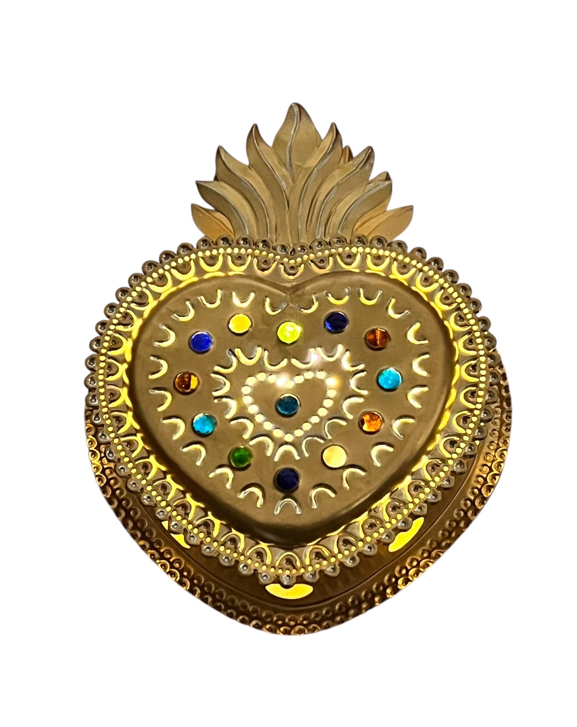 Layered tin Sacred Heart - Cutouts on front of heart and sides let light shine through.