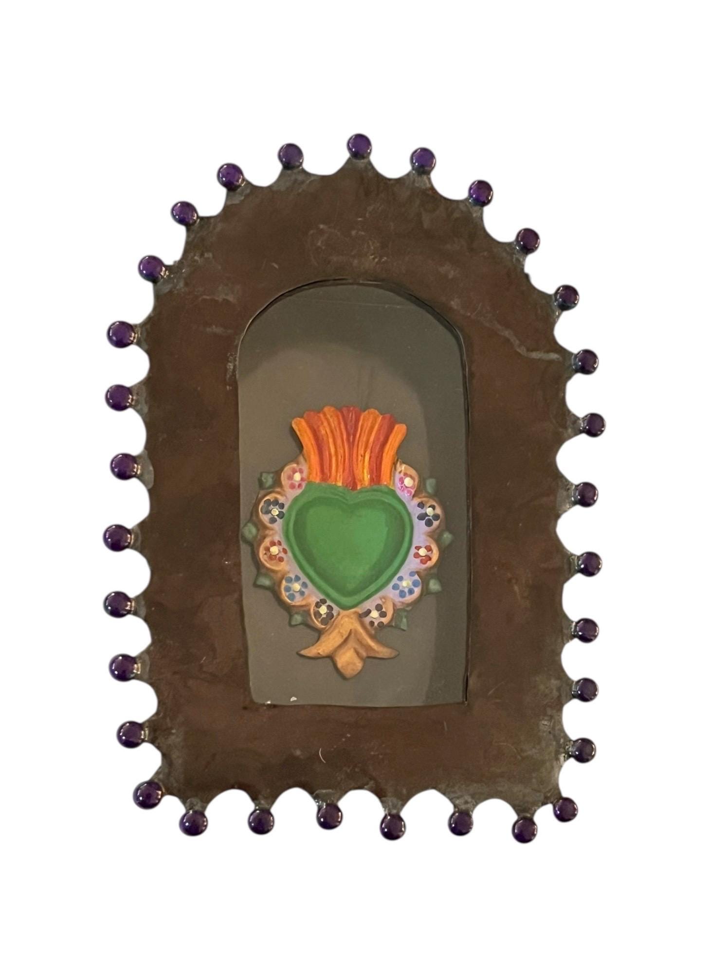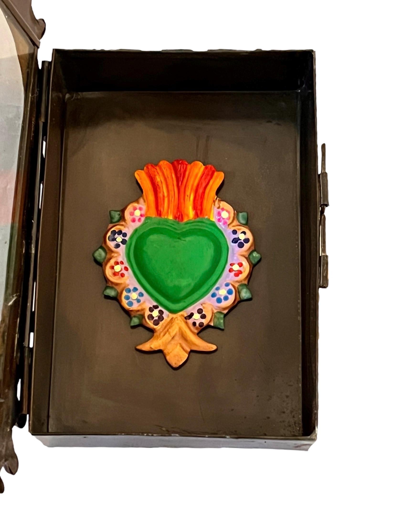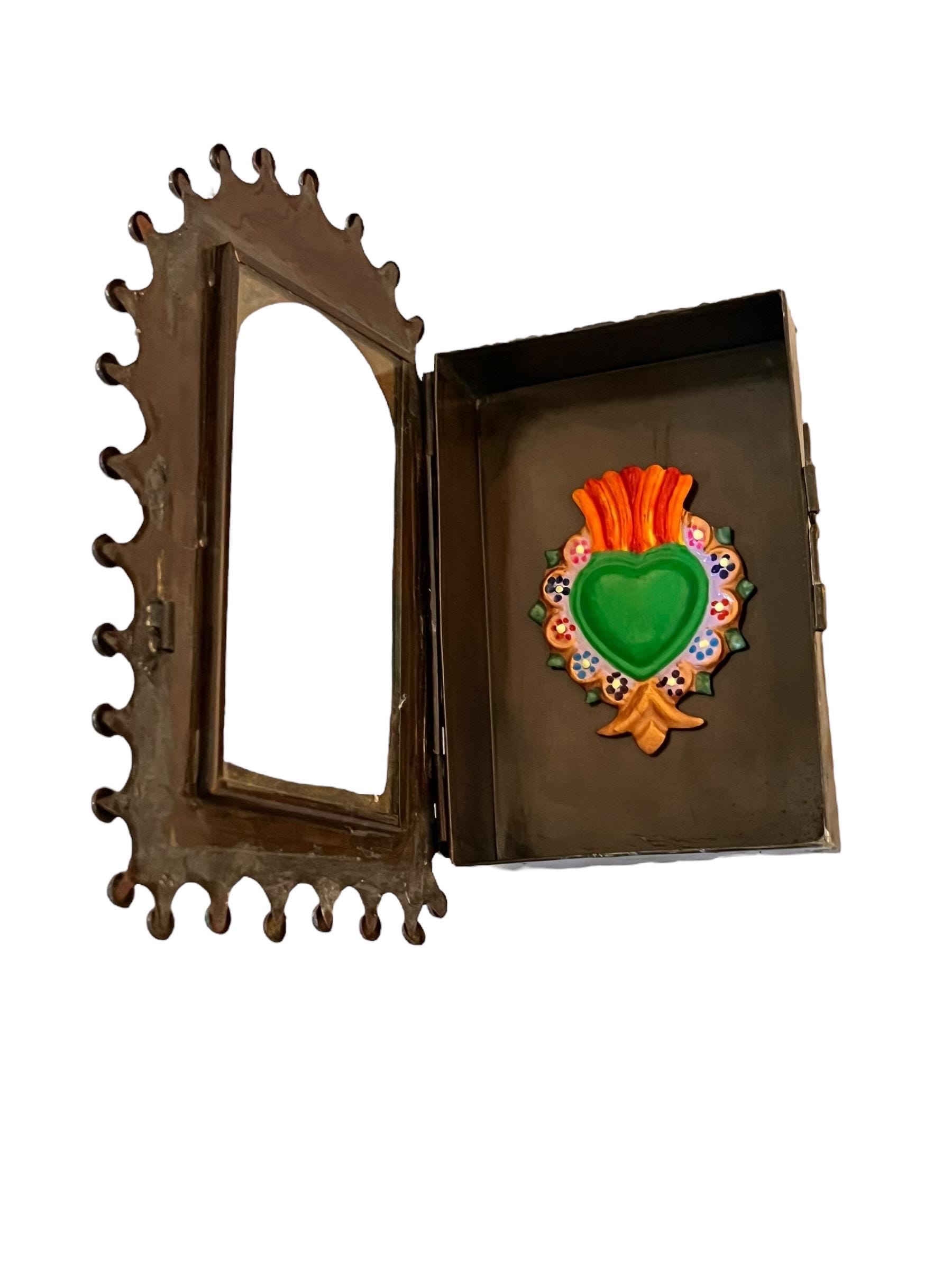 Punched Tin Nicho with tin Sacred Heart ornament/magnet.