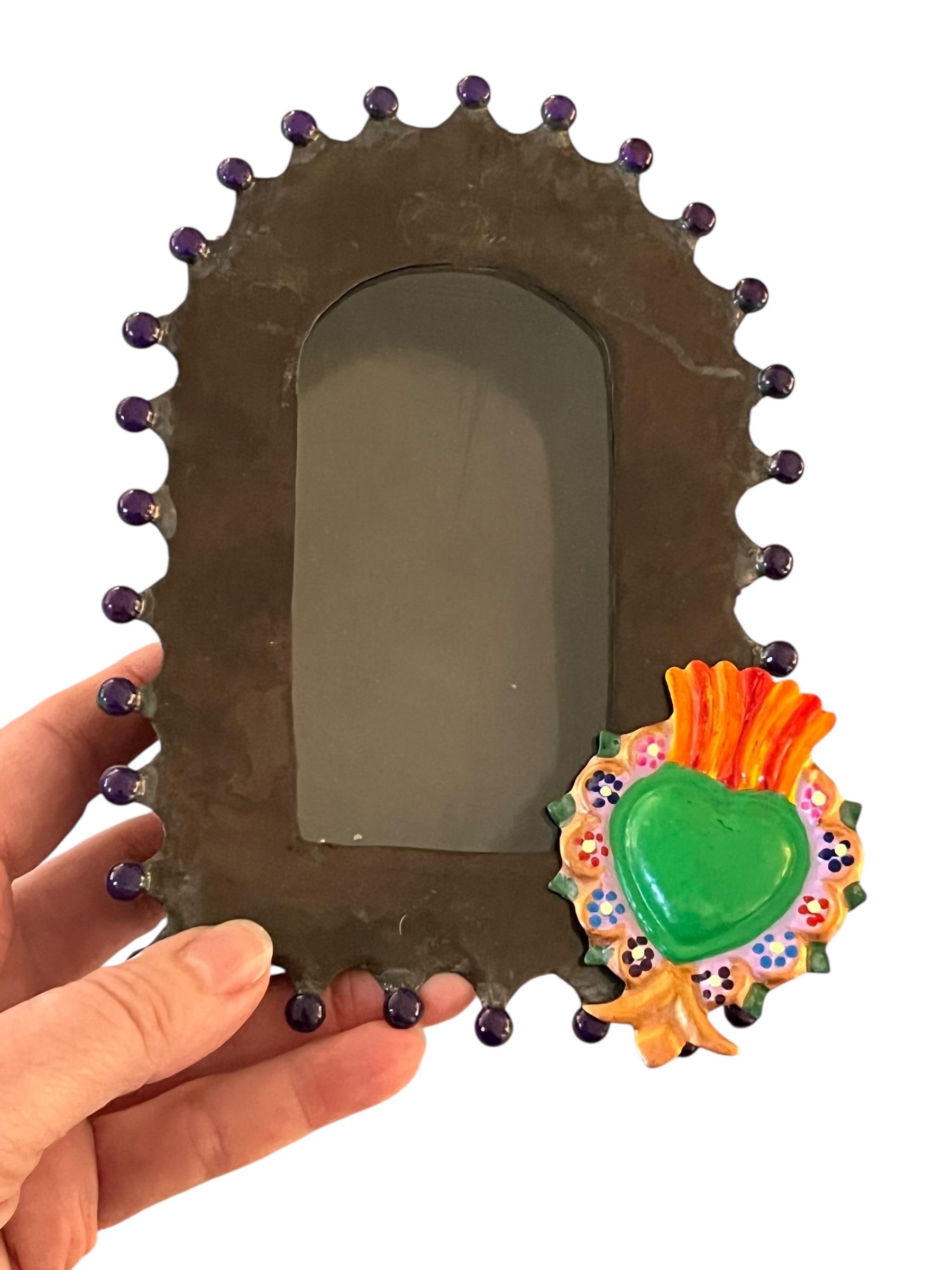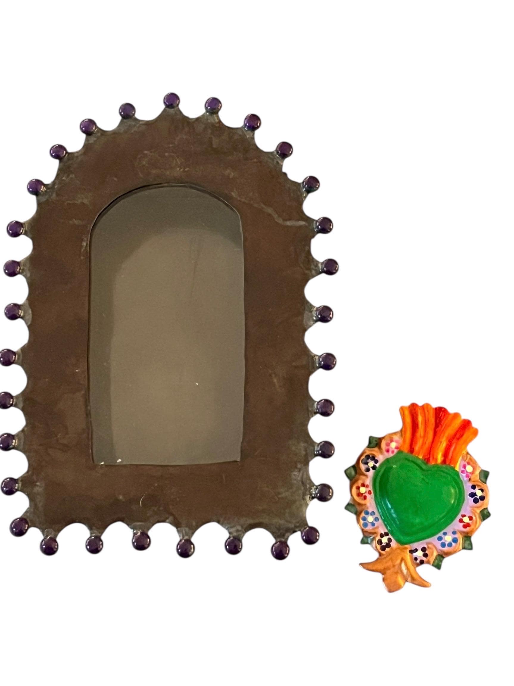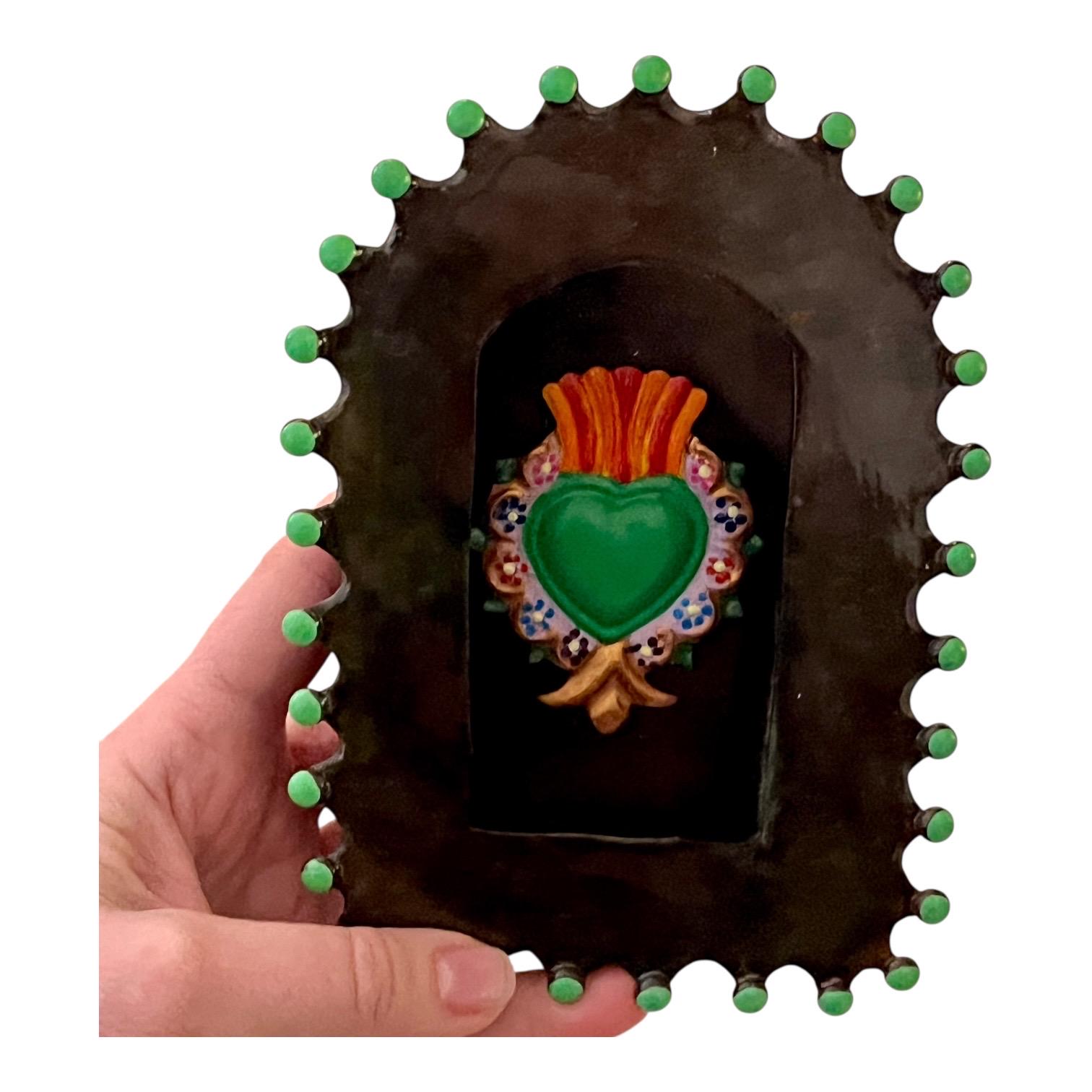 Punched Tin Nicho with tin Sacred Heart ornament/magnet.