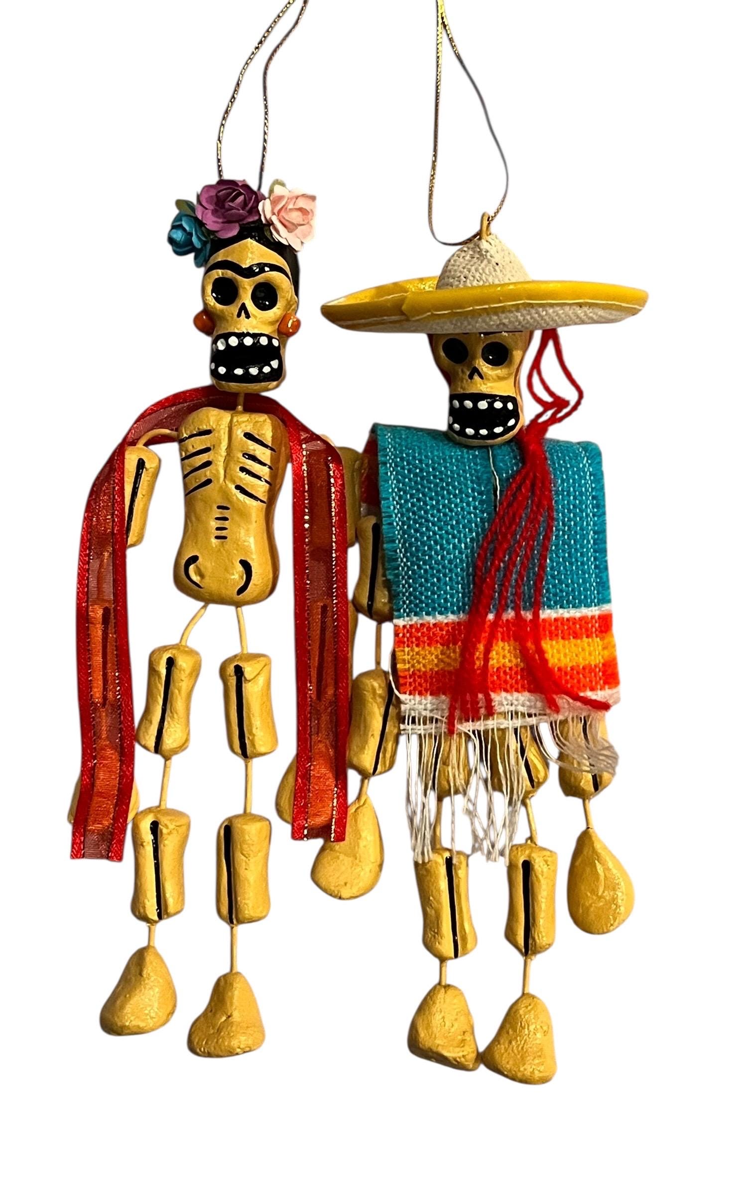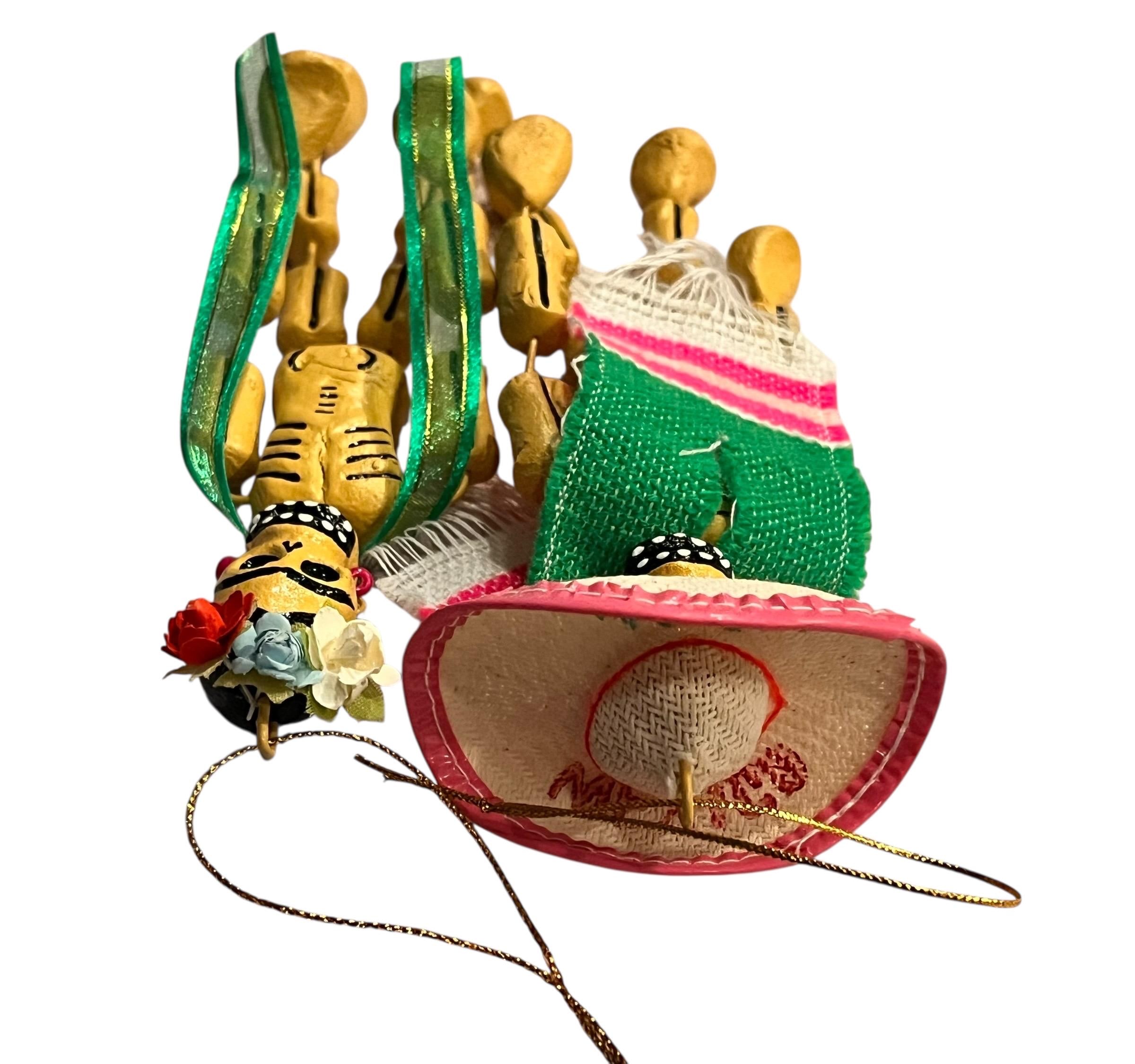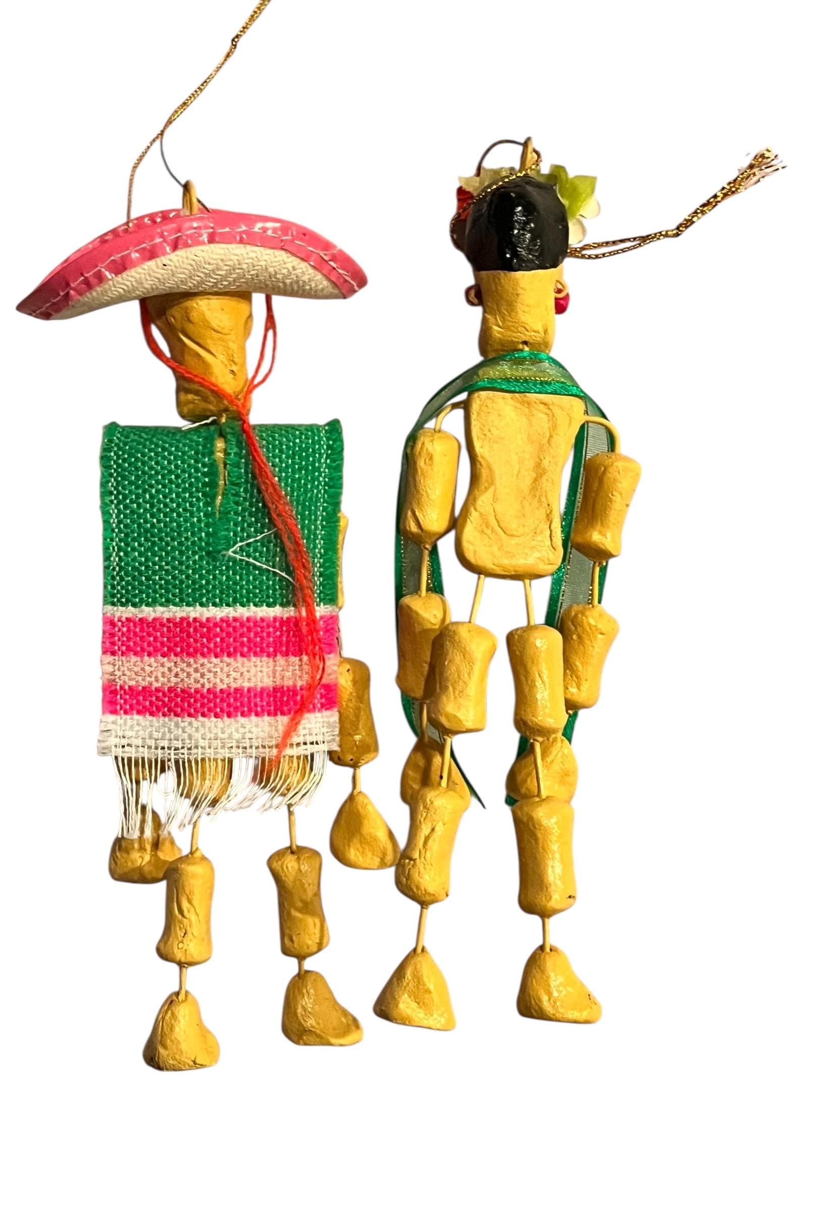 He is sporting a colorful serape & “Viva Mexico” sombrero. Frida with her trademark flowers in her hair!