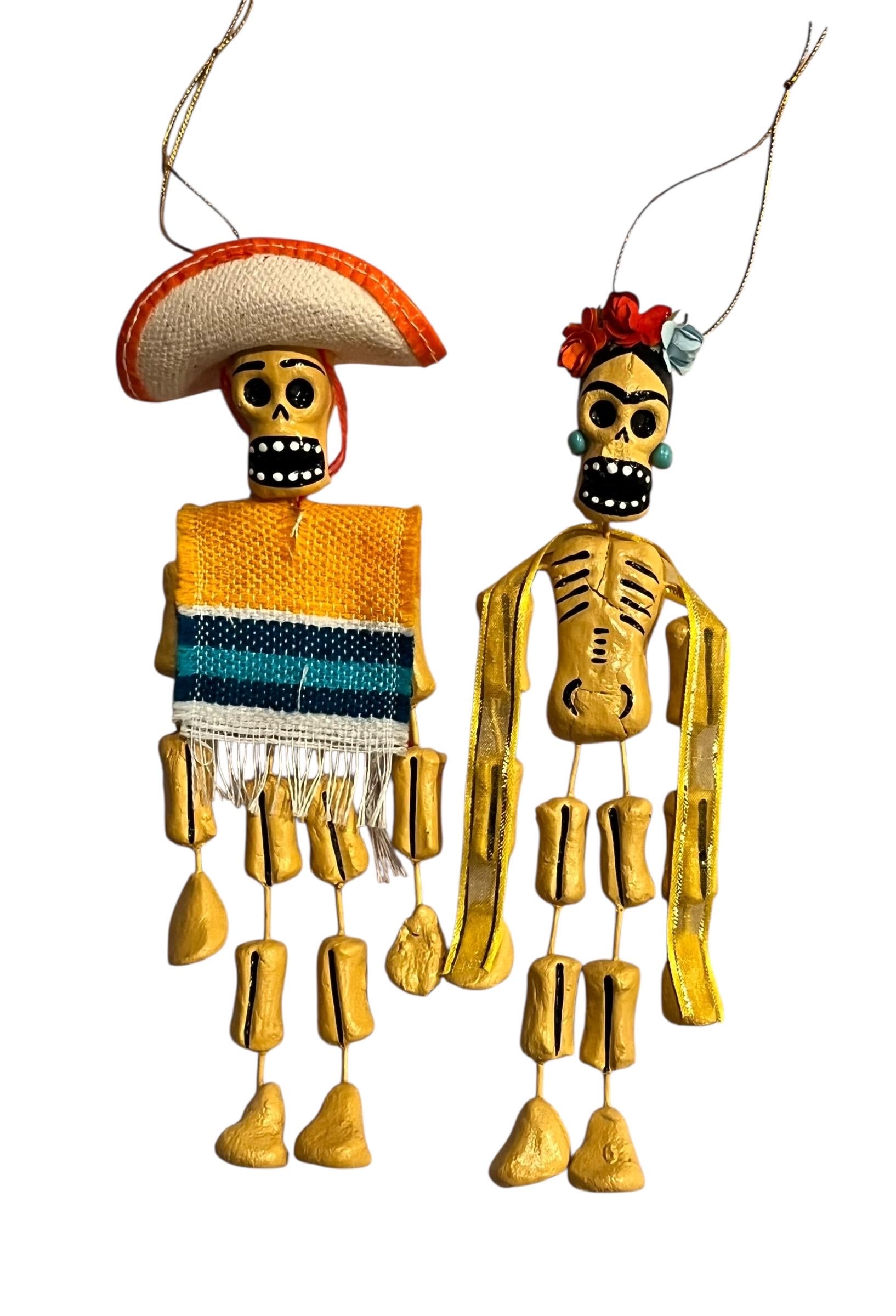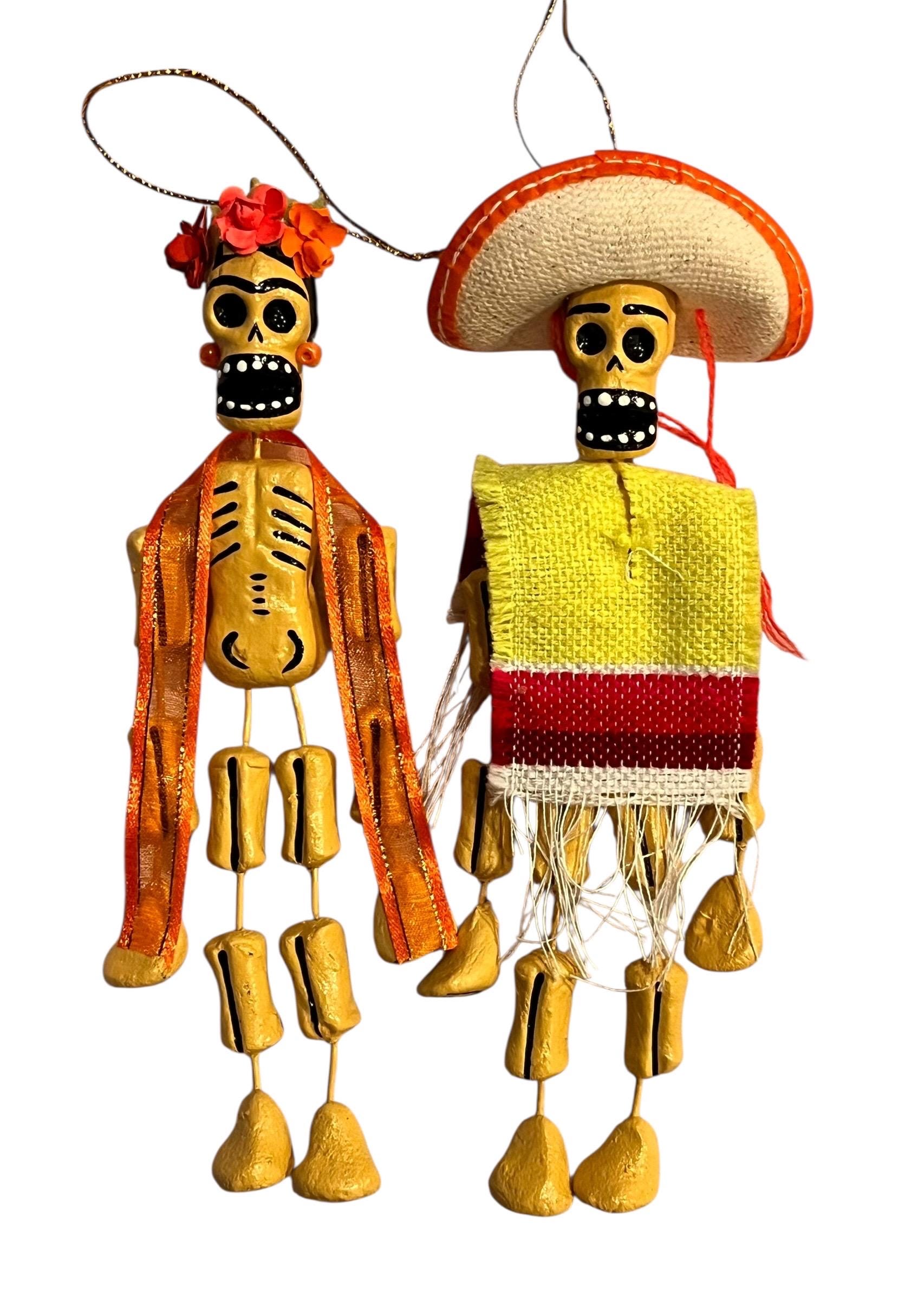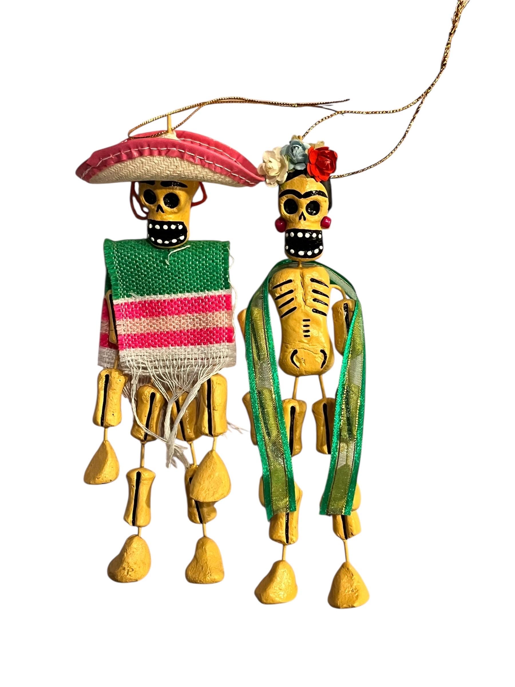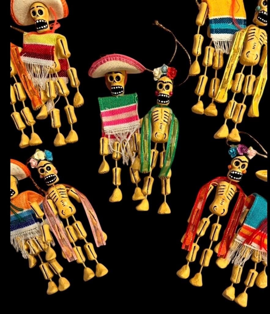 He is sporting a colorful serape & “Viva Mexico” sombrero. Frida with her trademark flowers in her hair!