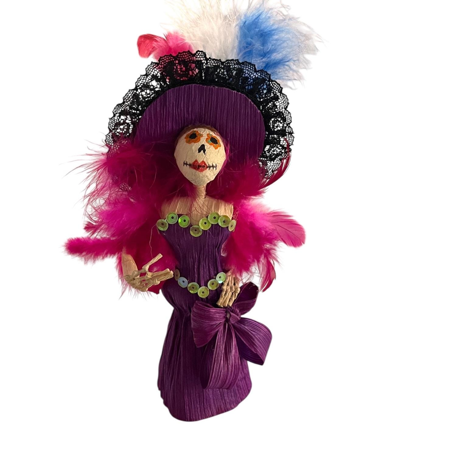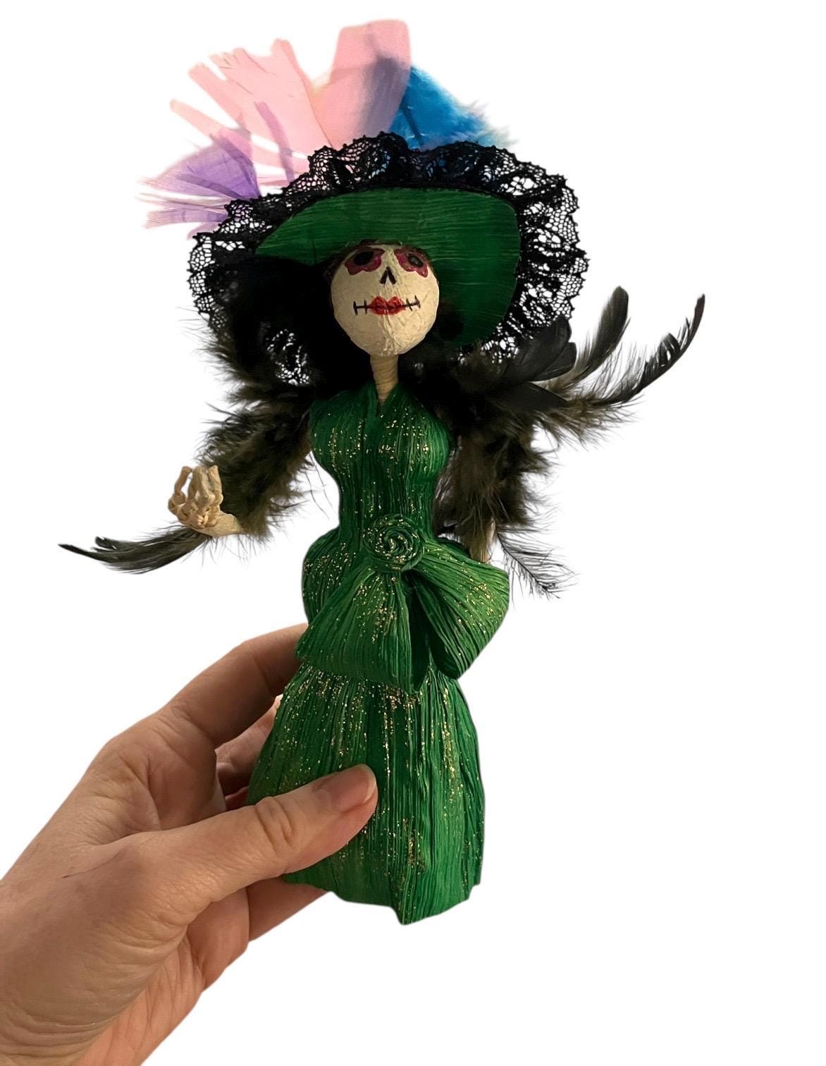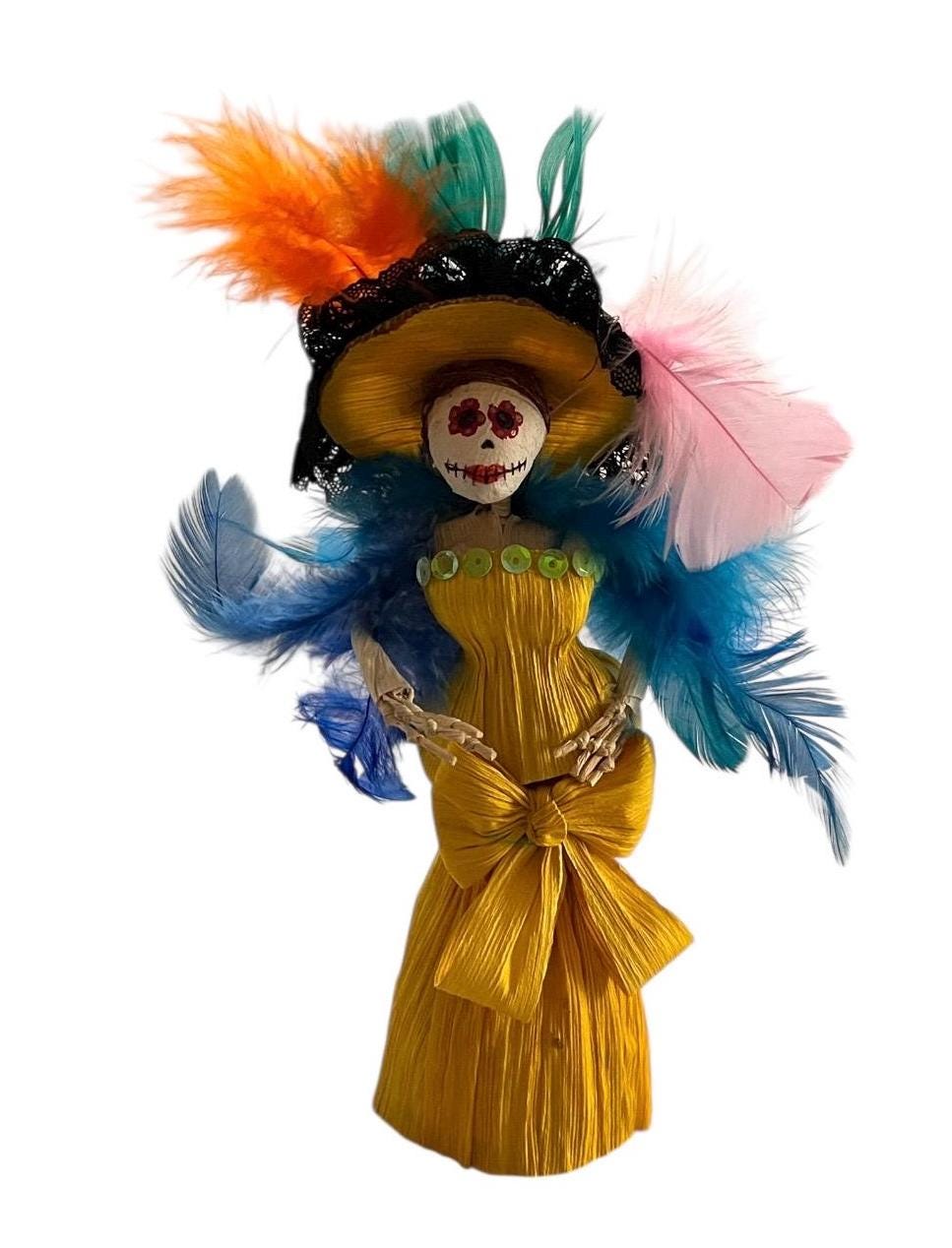 Super cute Catrina figurine crafted from corn husks.