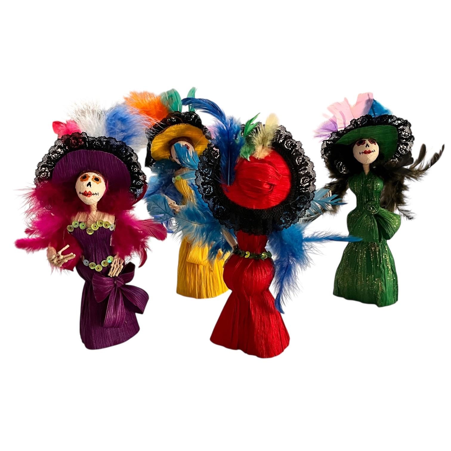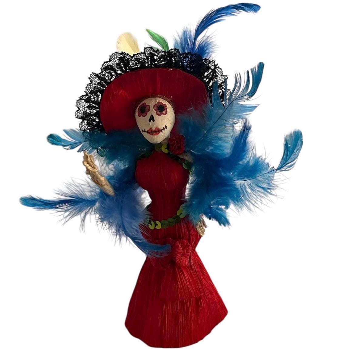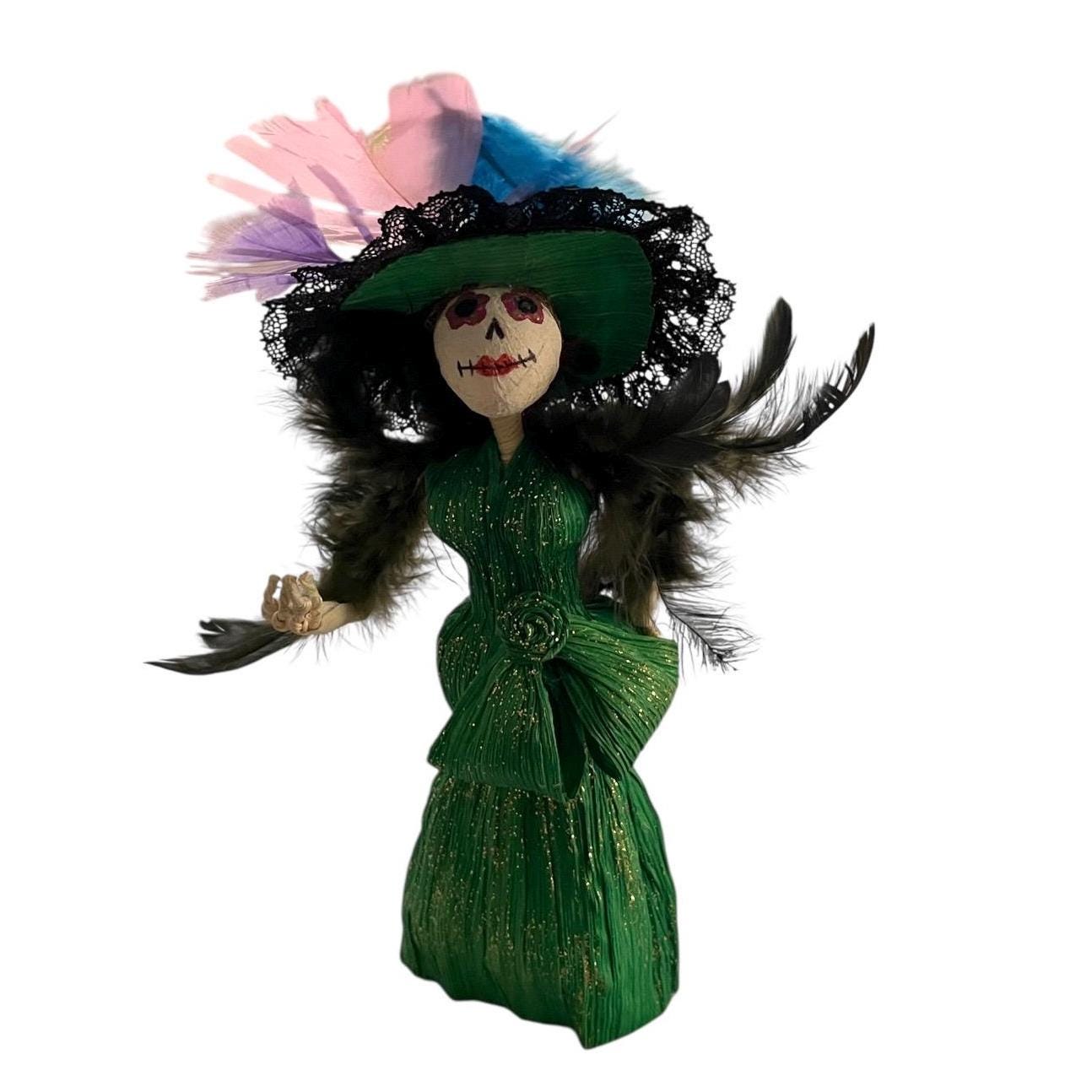 Super cute Catrina figurine crafted from corn husks.