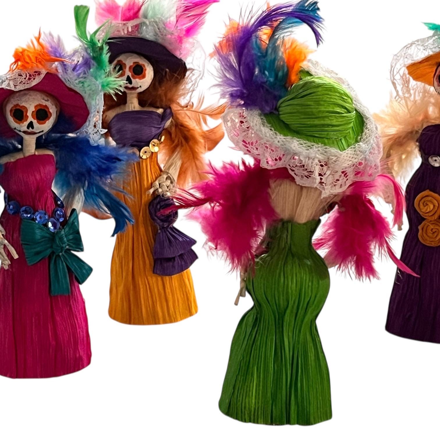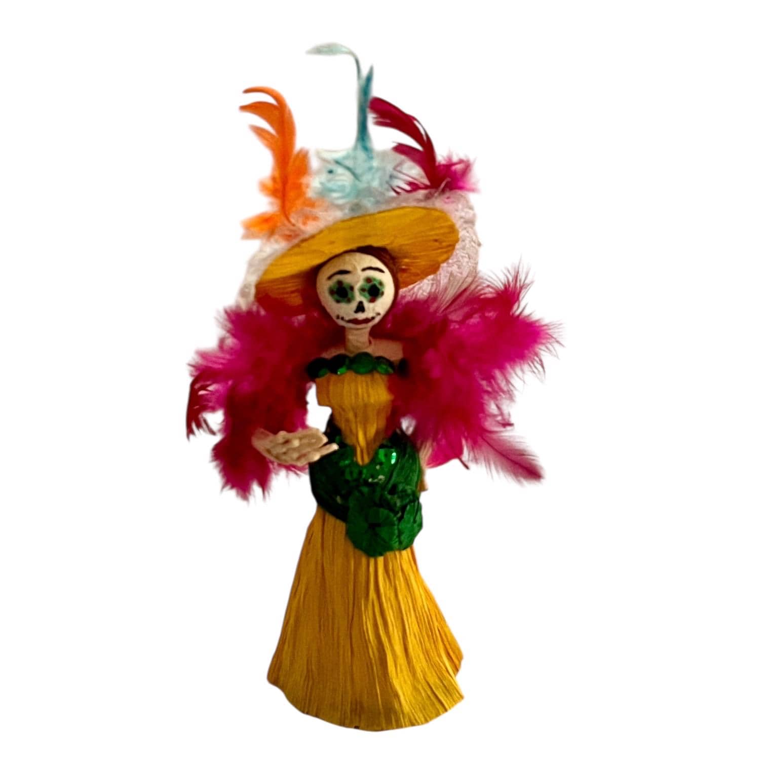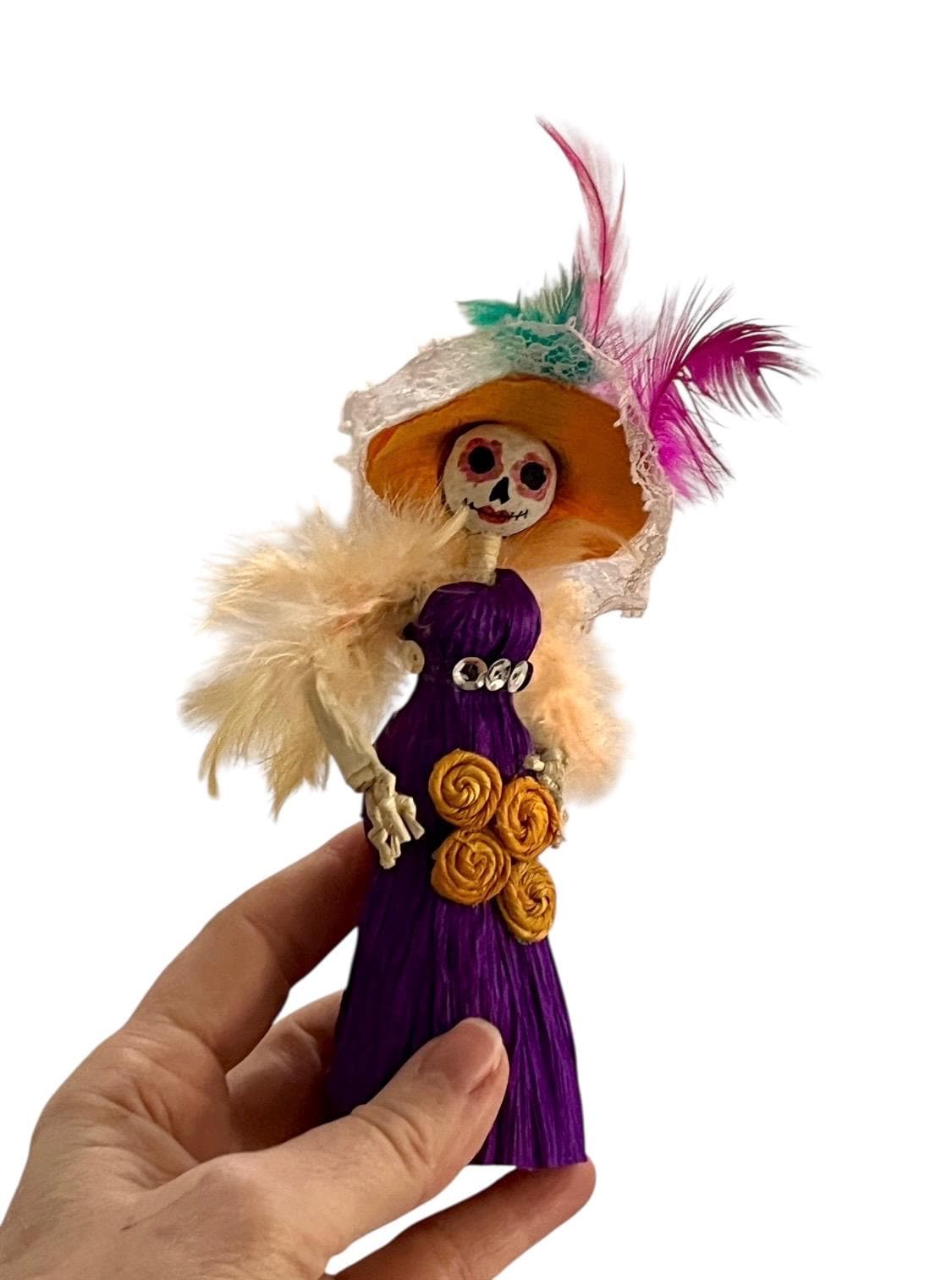 Super cute small Day of the Dead Catrina crafted from corn husks.