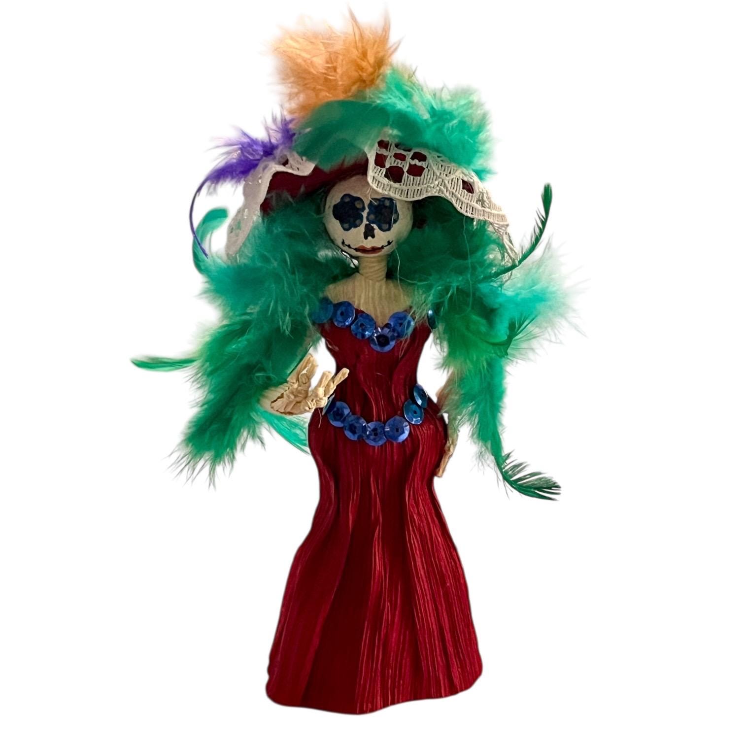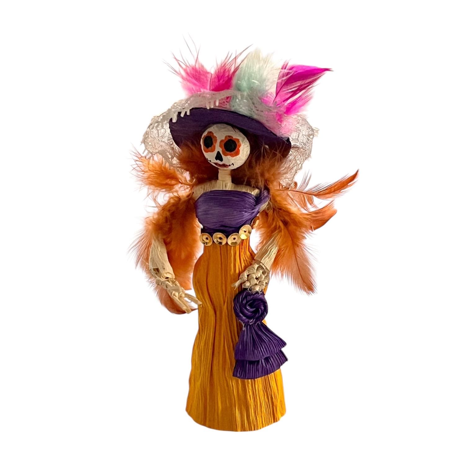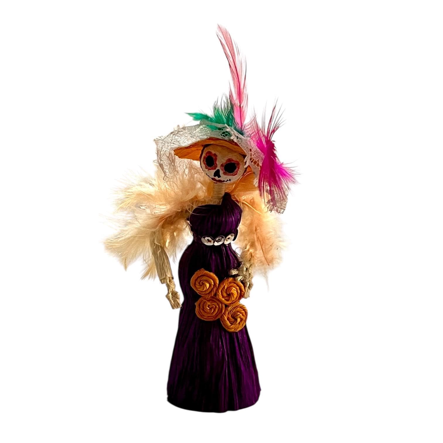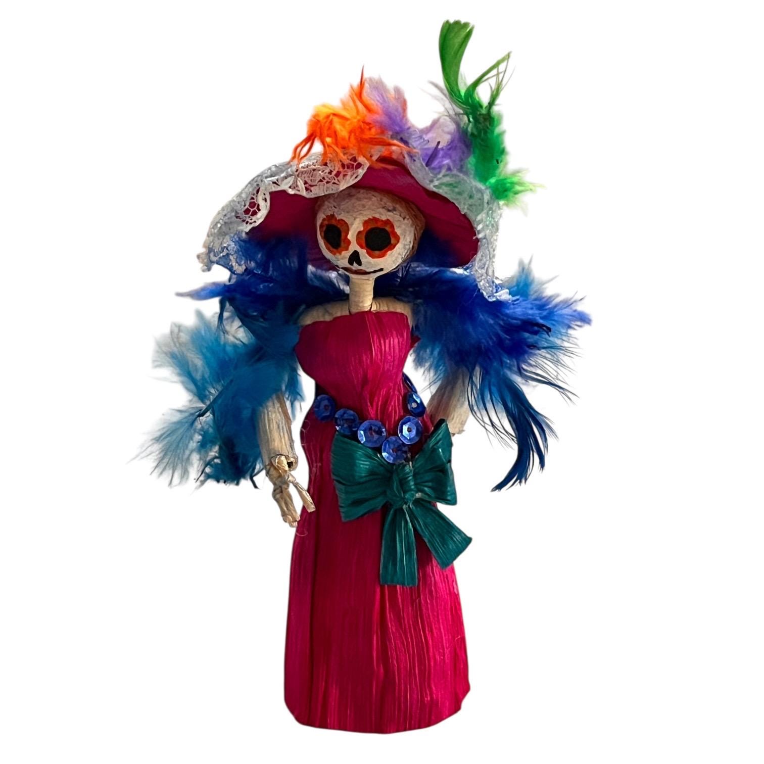 Super cute small Day of the Dead Catrina crafted from corn husks.
