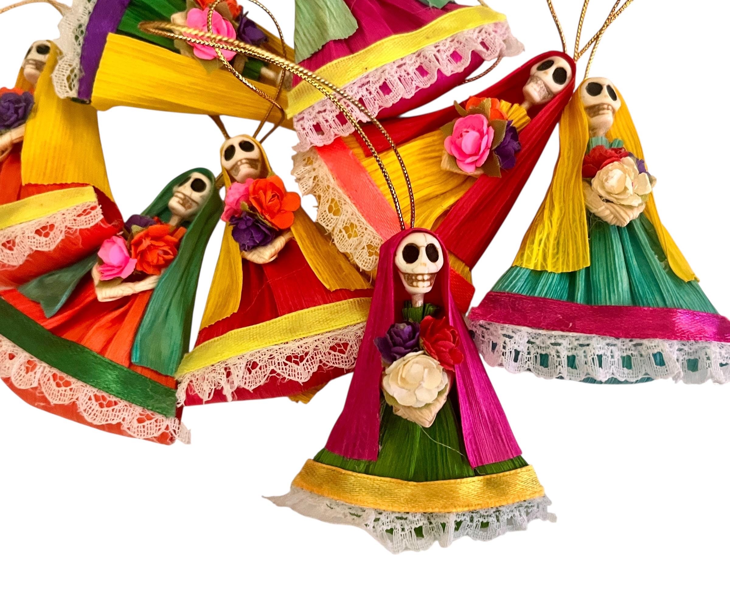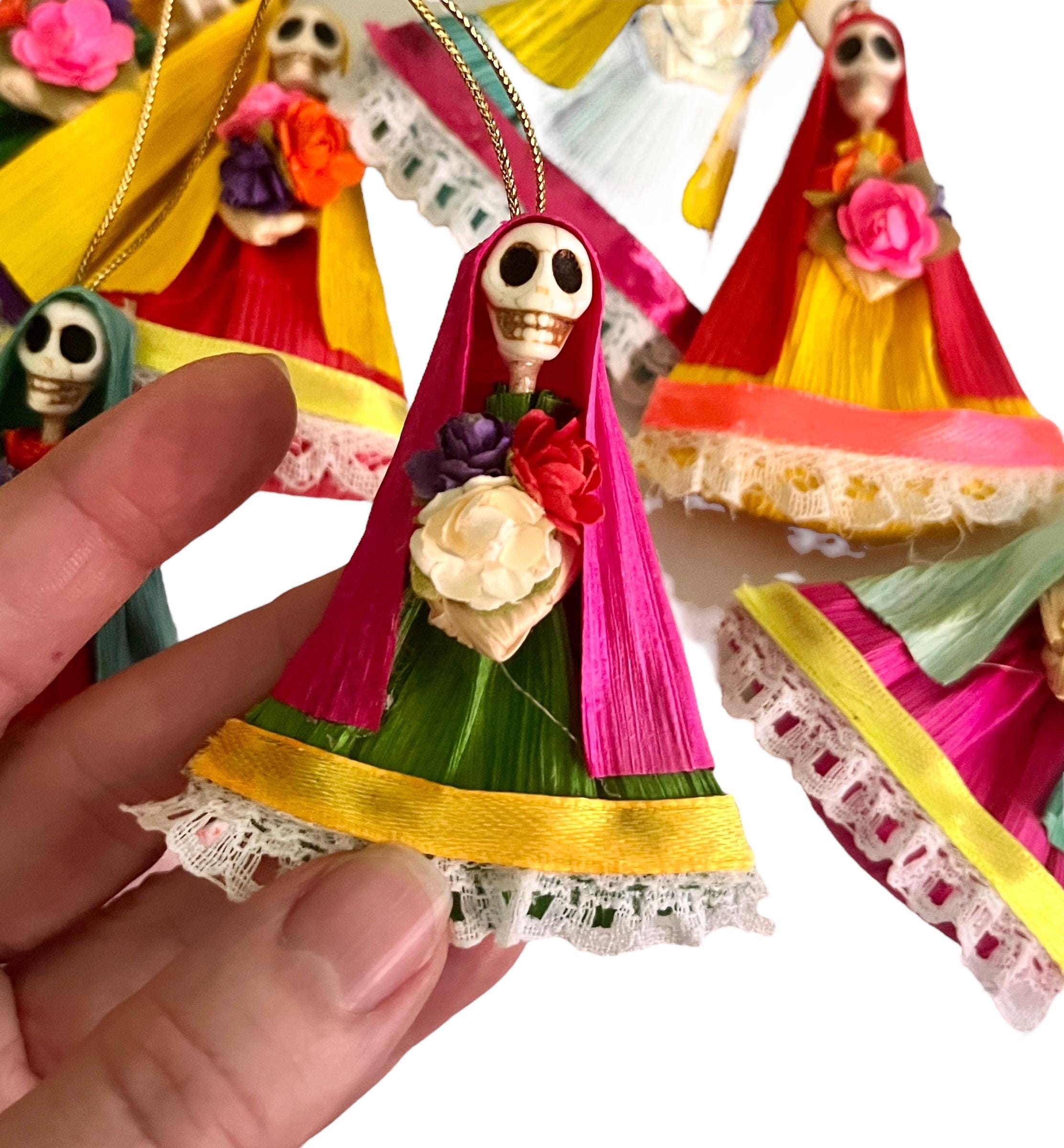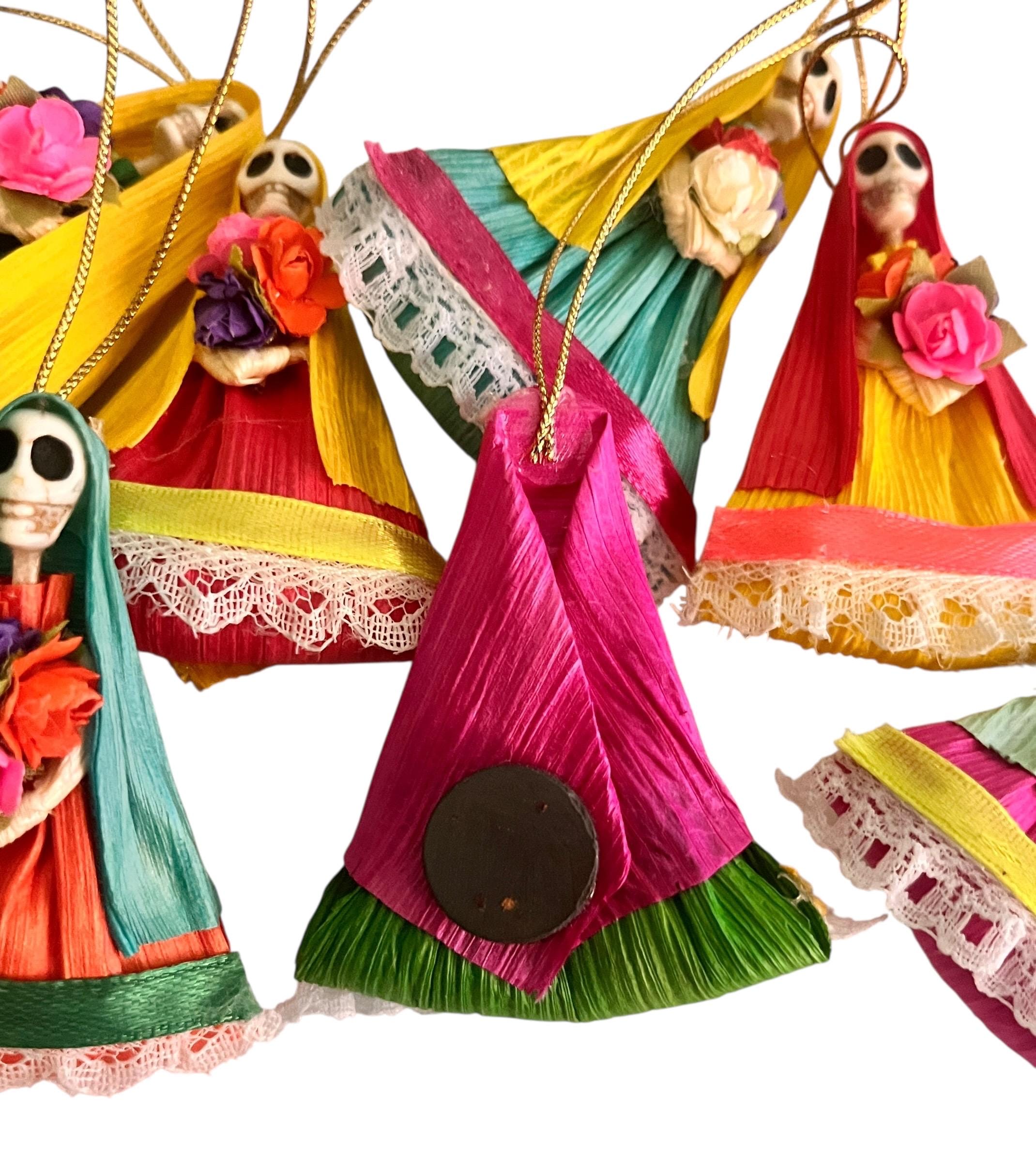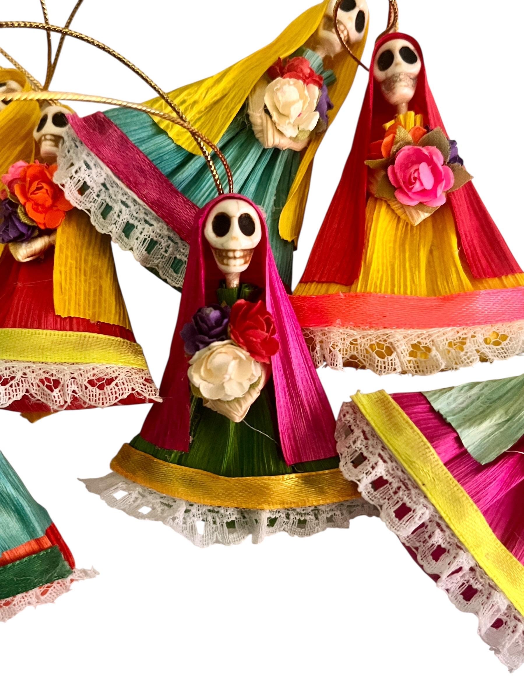 SET (4) Charming Corn Husk Day of the Dead Catrina Ornaments