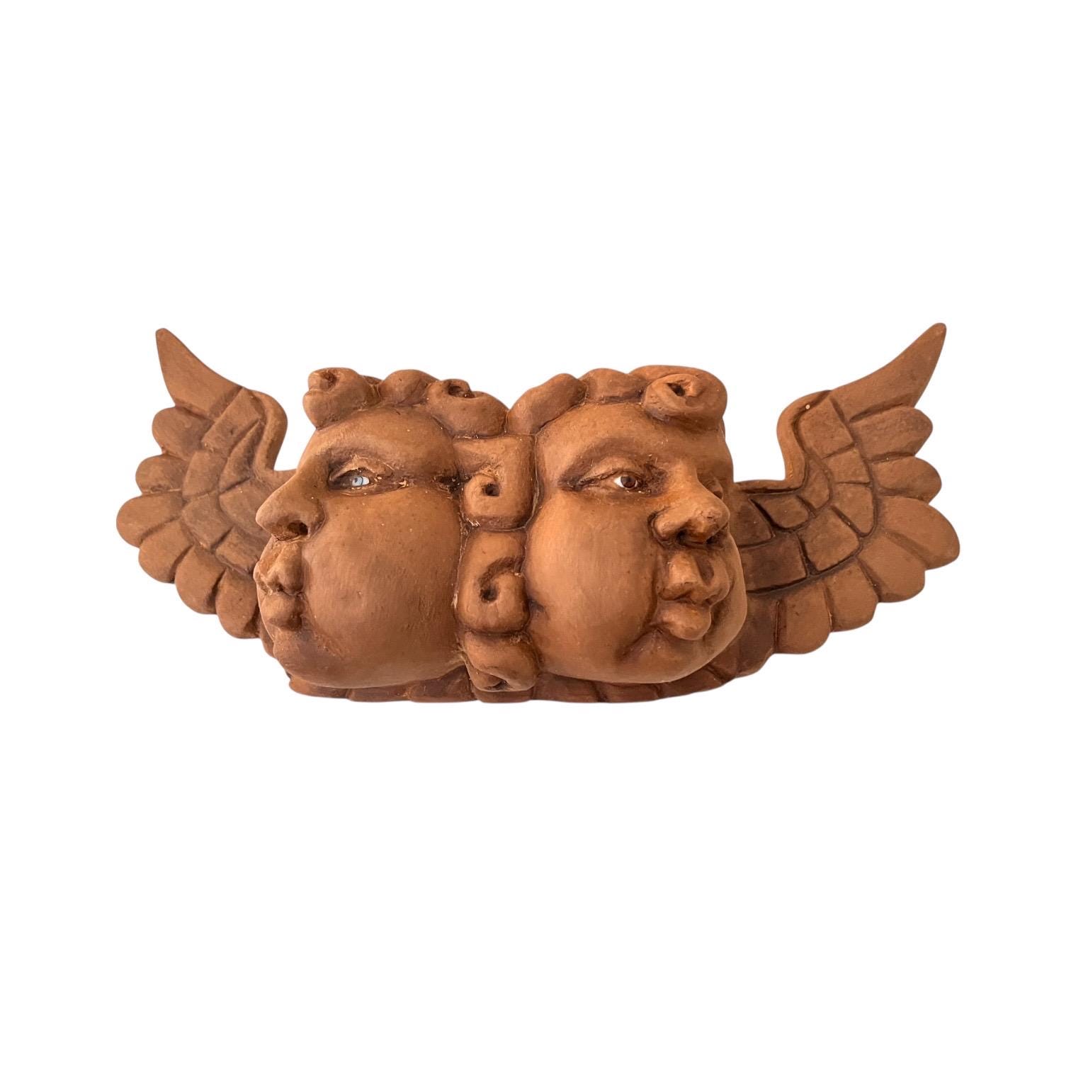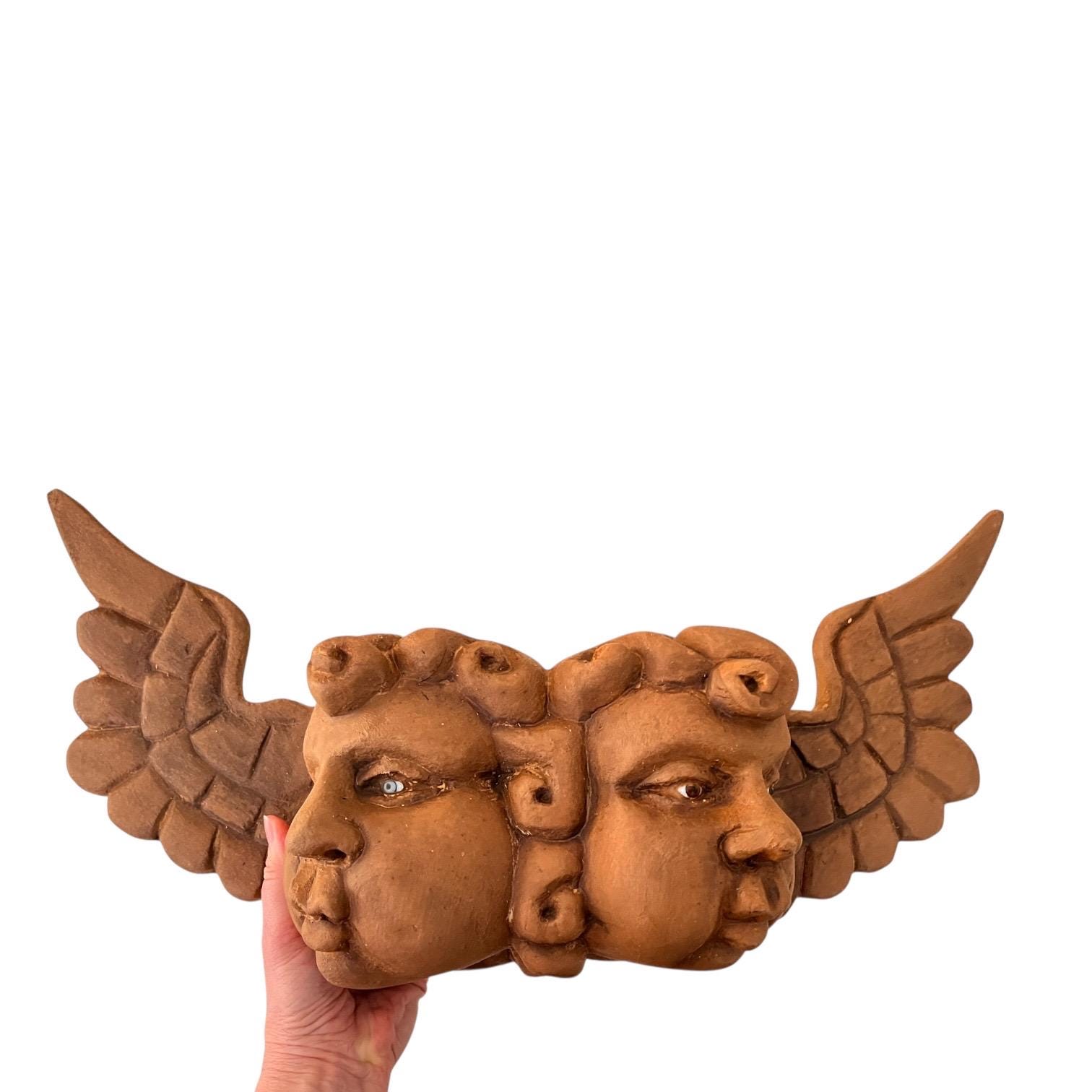 Carved Wood Double Angel Mask