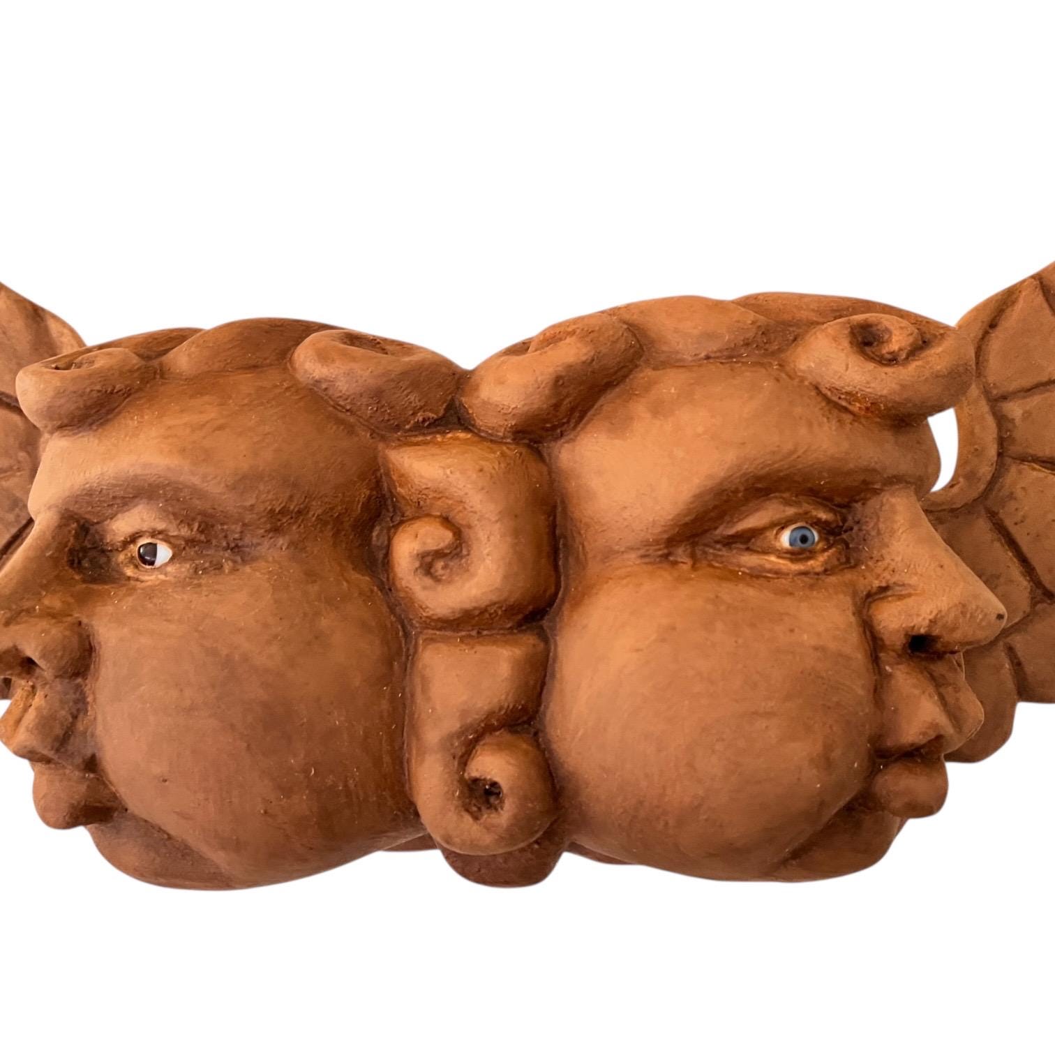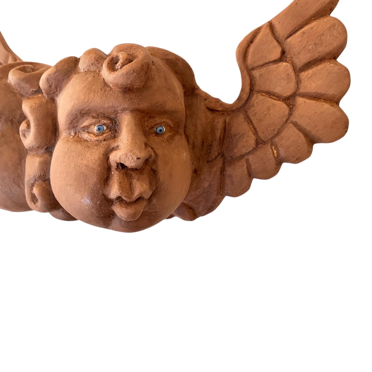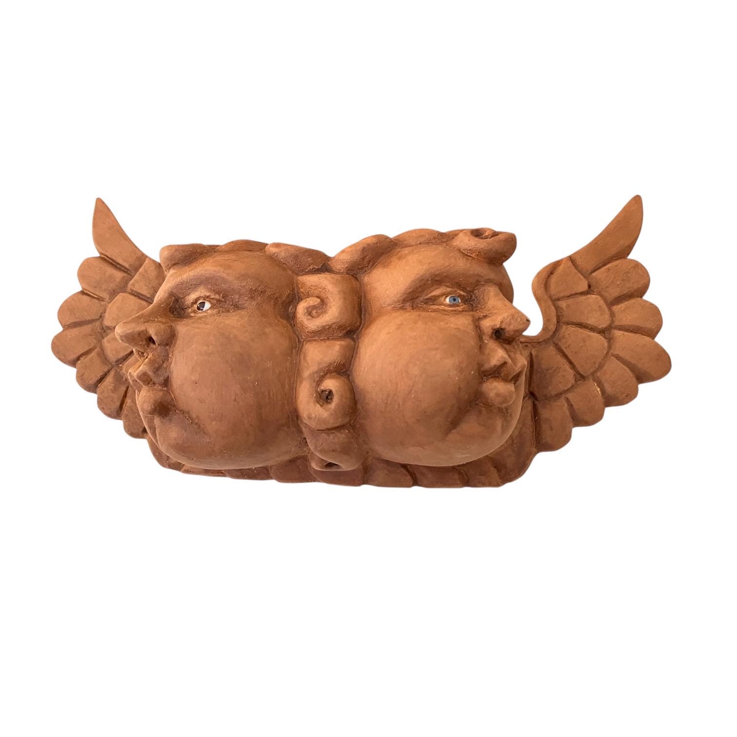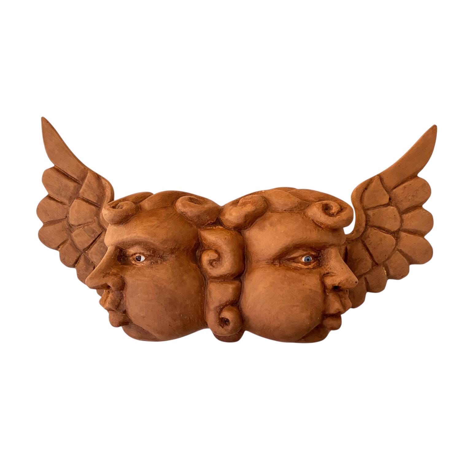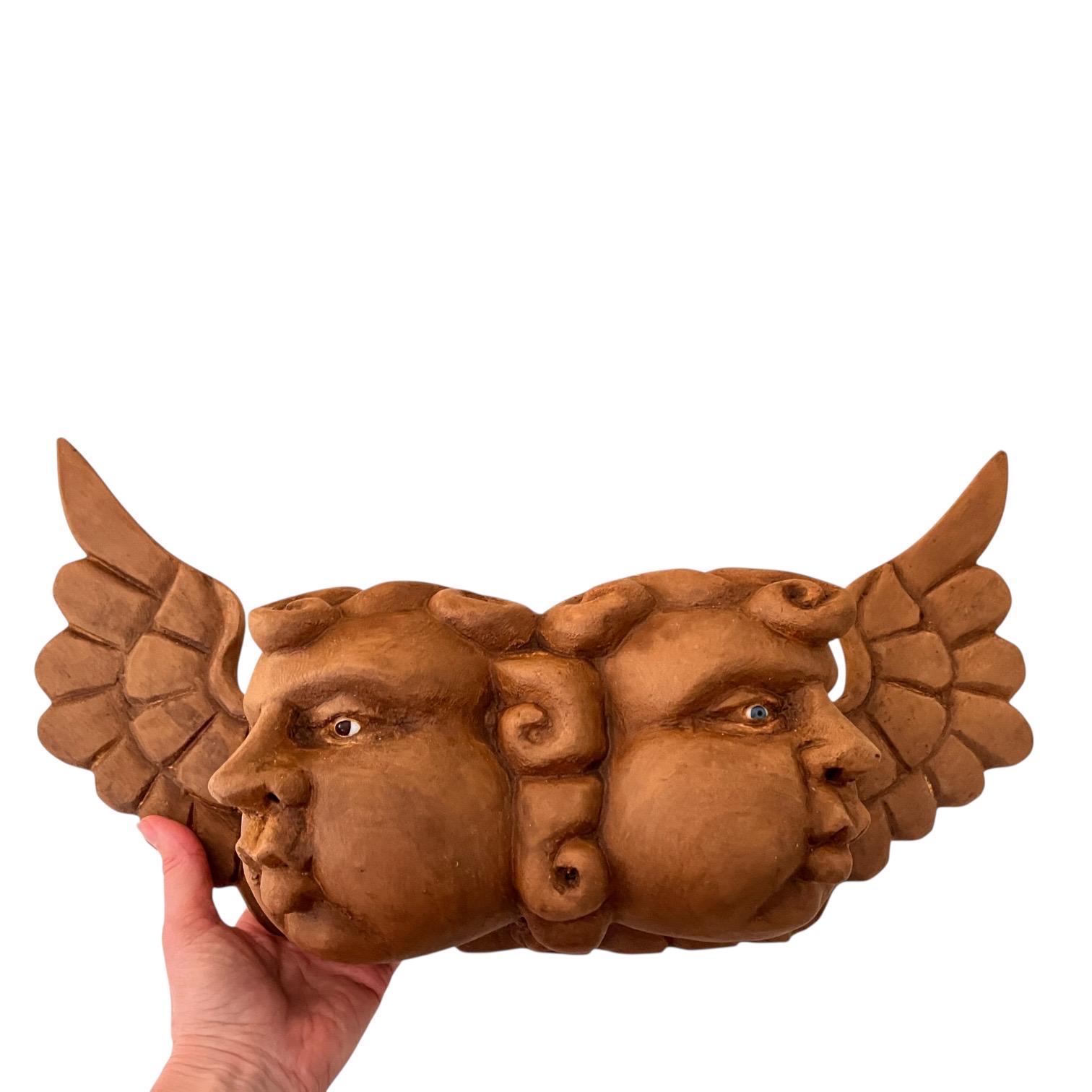 WOOD ANGEL, Two Faces Mexican Wood Angel w Glass Eyes, Cherubs, Cacheton, Chubby Cheeks Angel #6