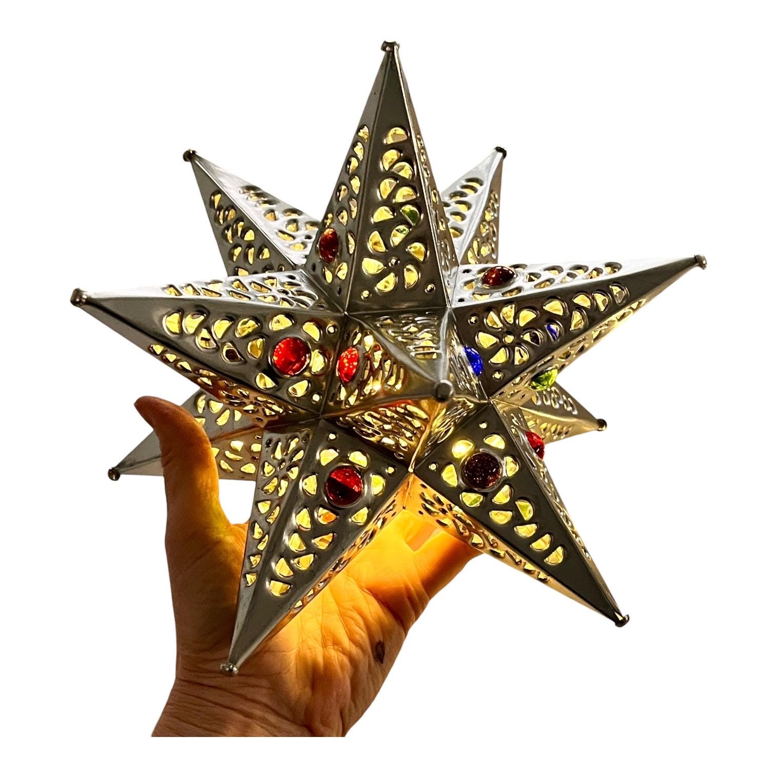 Punched Tin Star Luminaria, Small Christmas Tree Topper