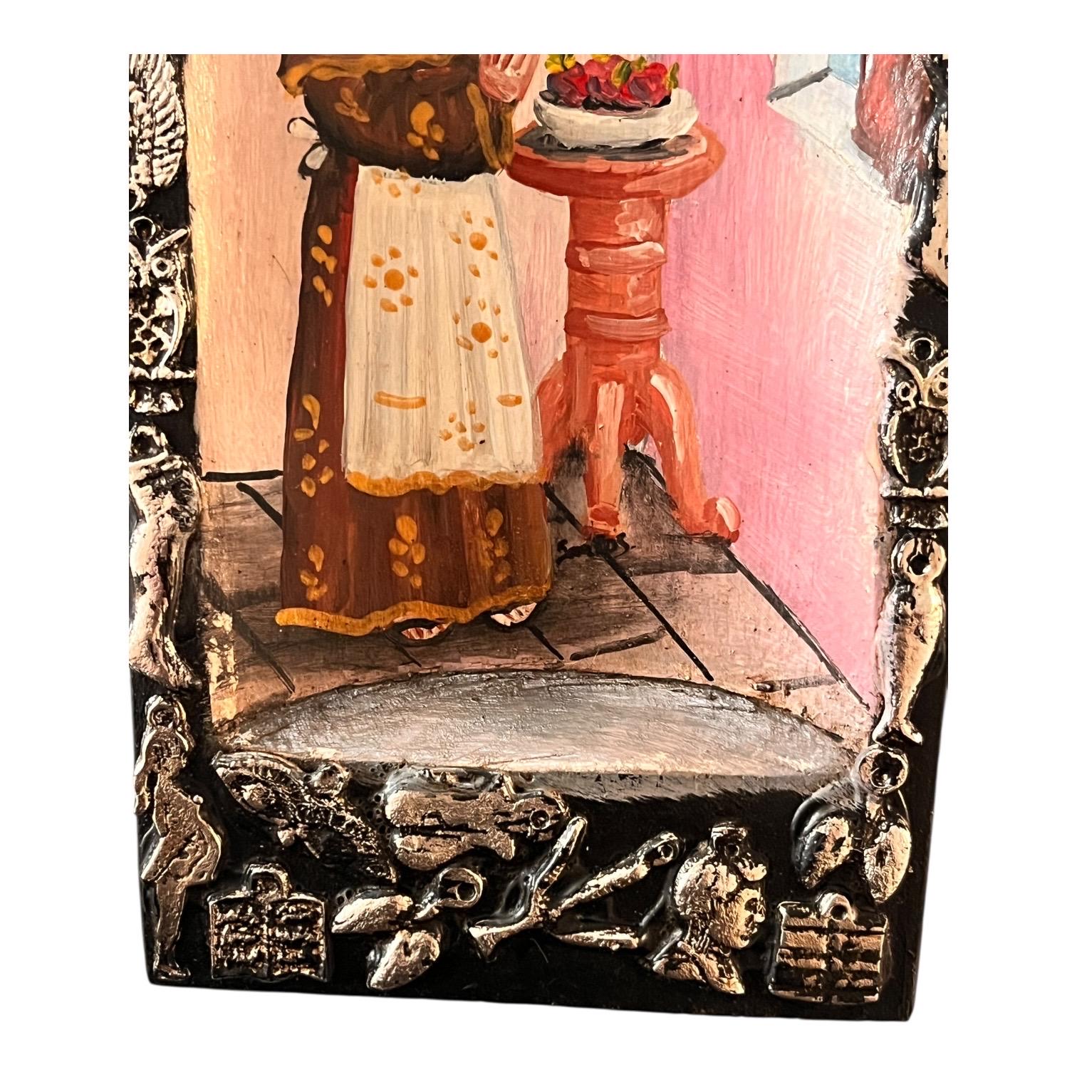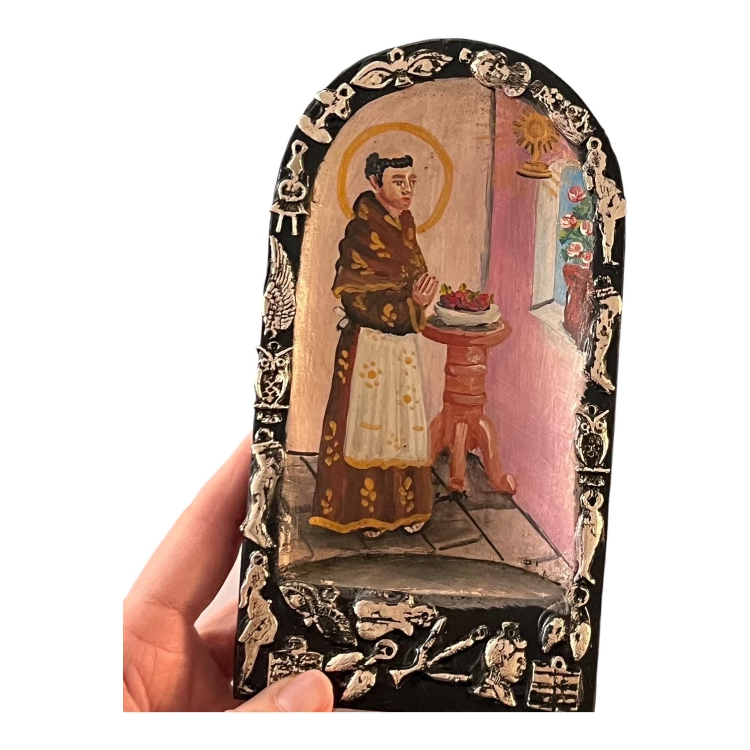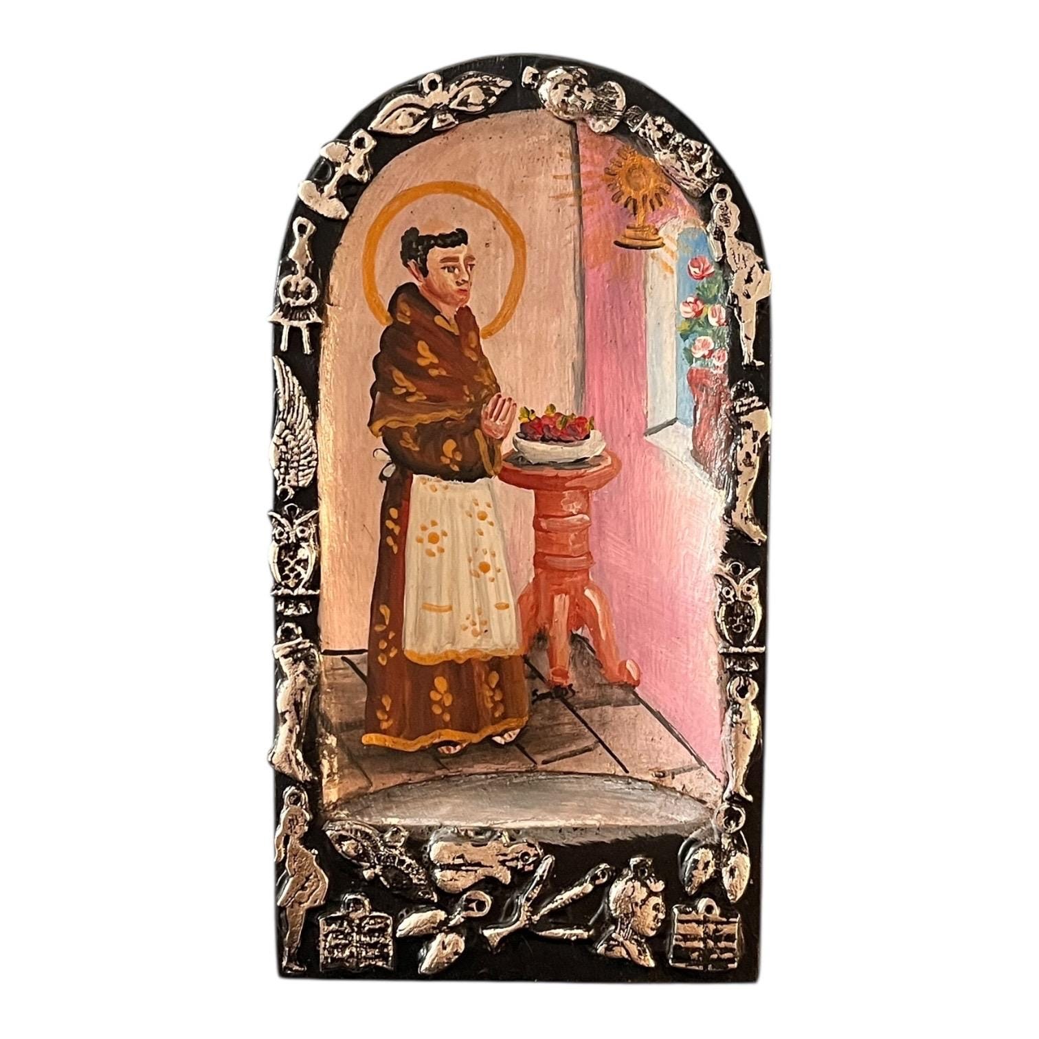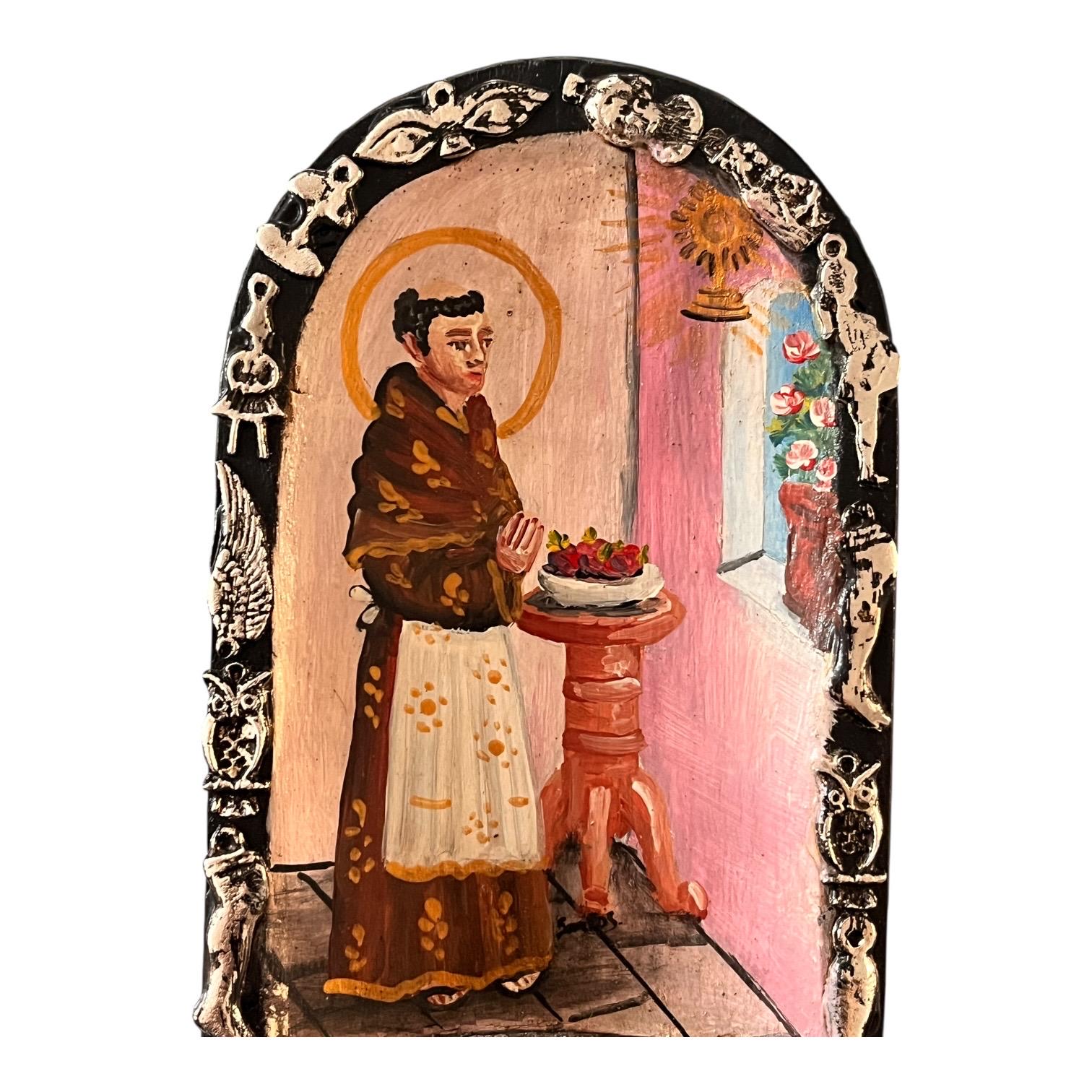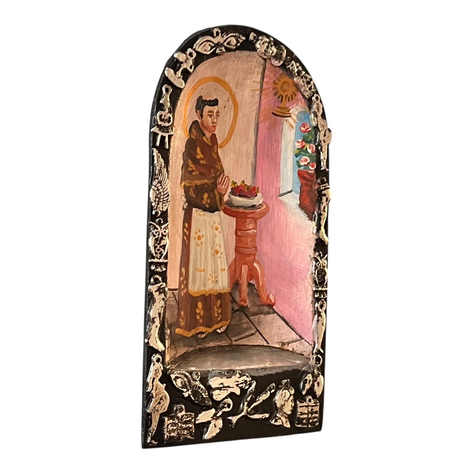 Small charming Milagros Nicho with a hand painted Santo image.