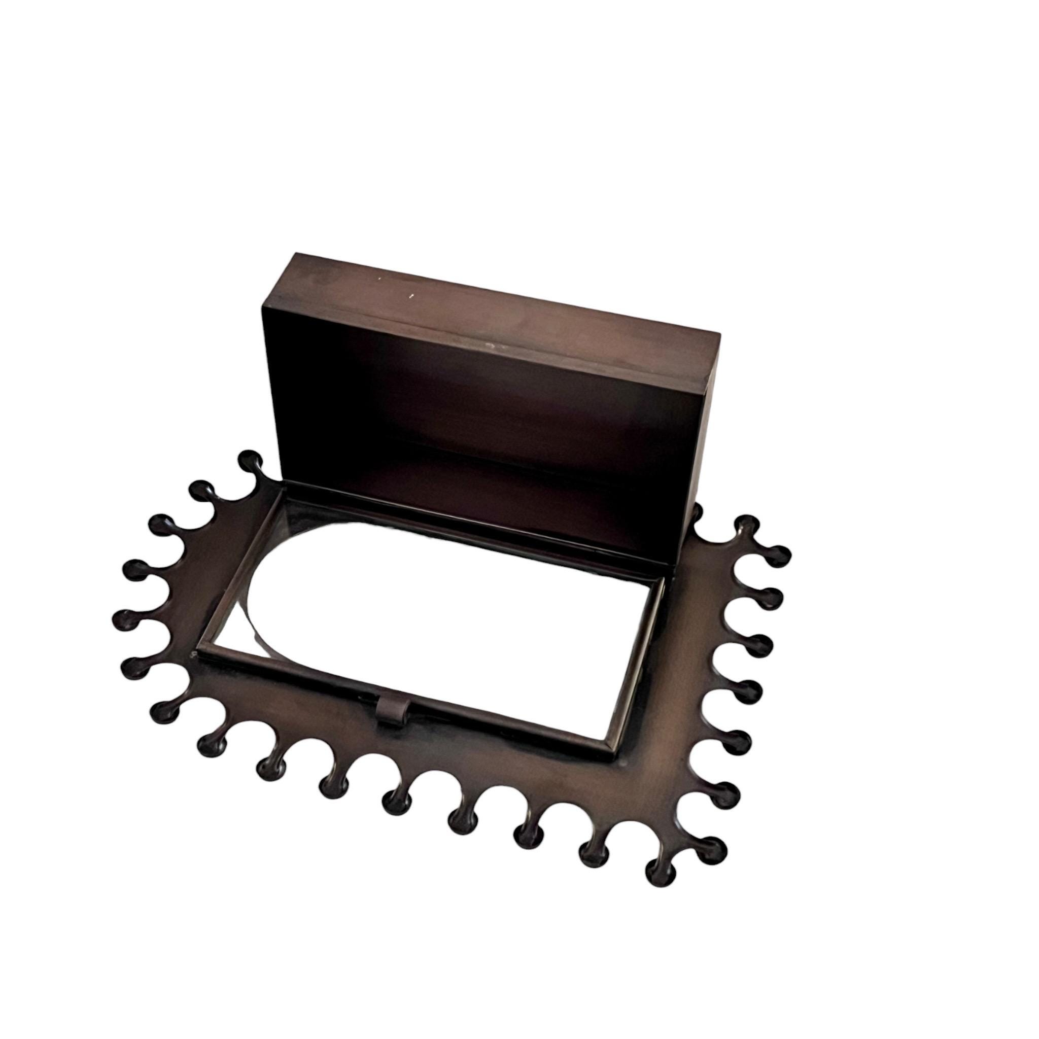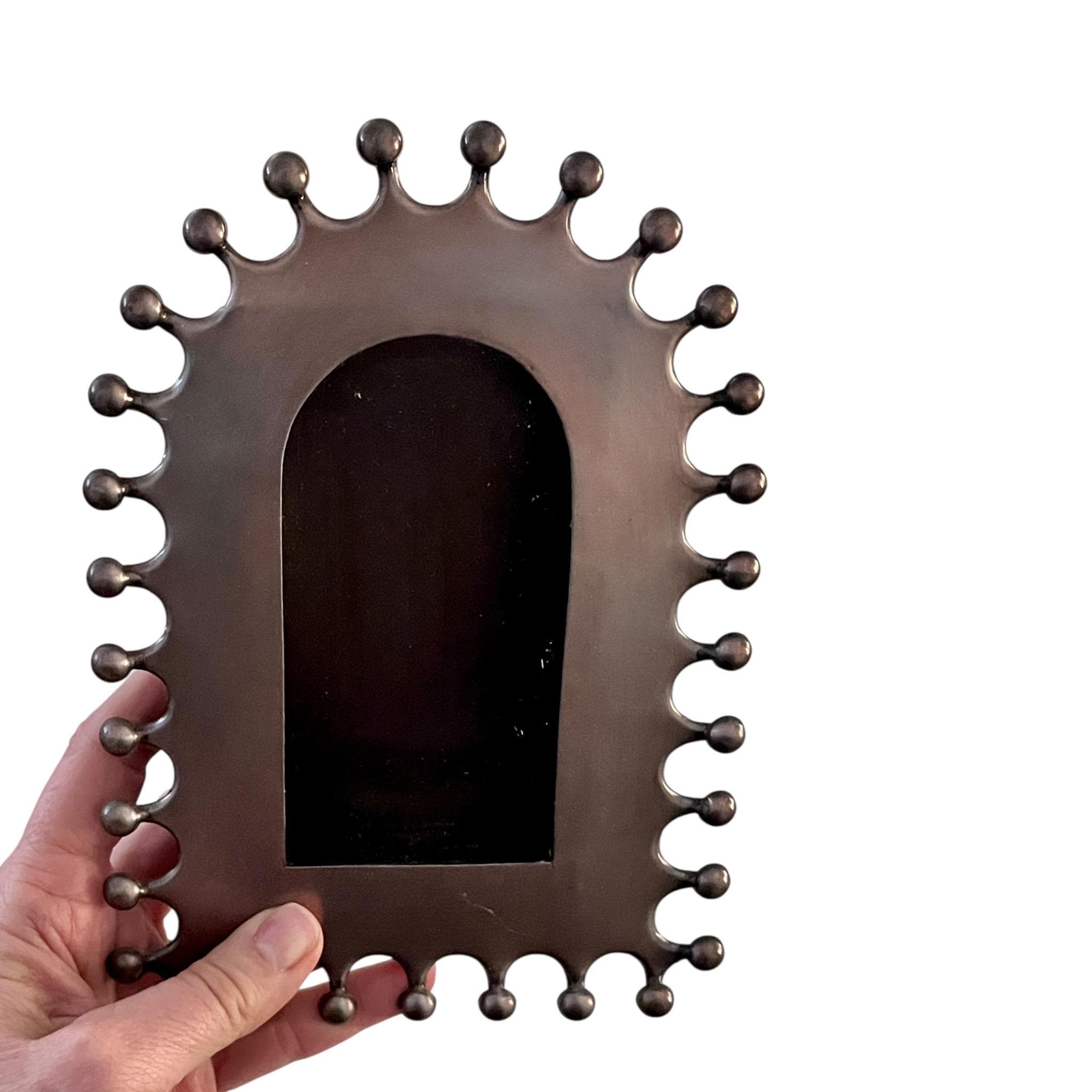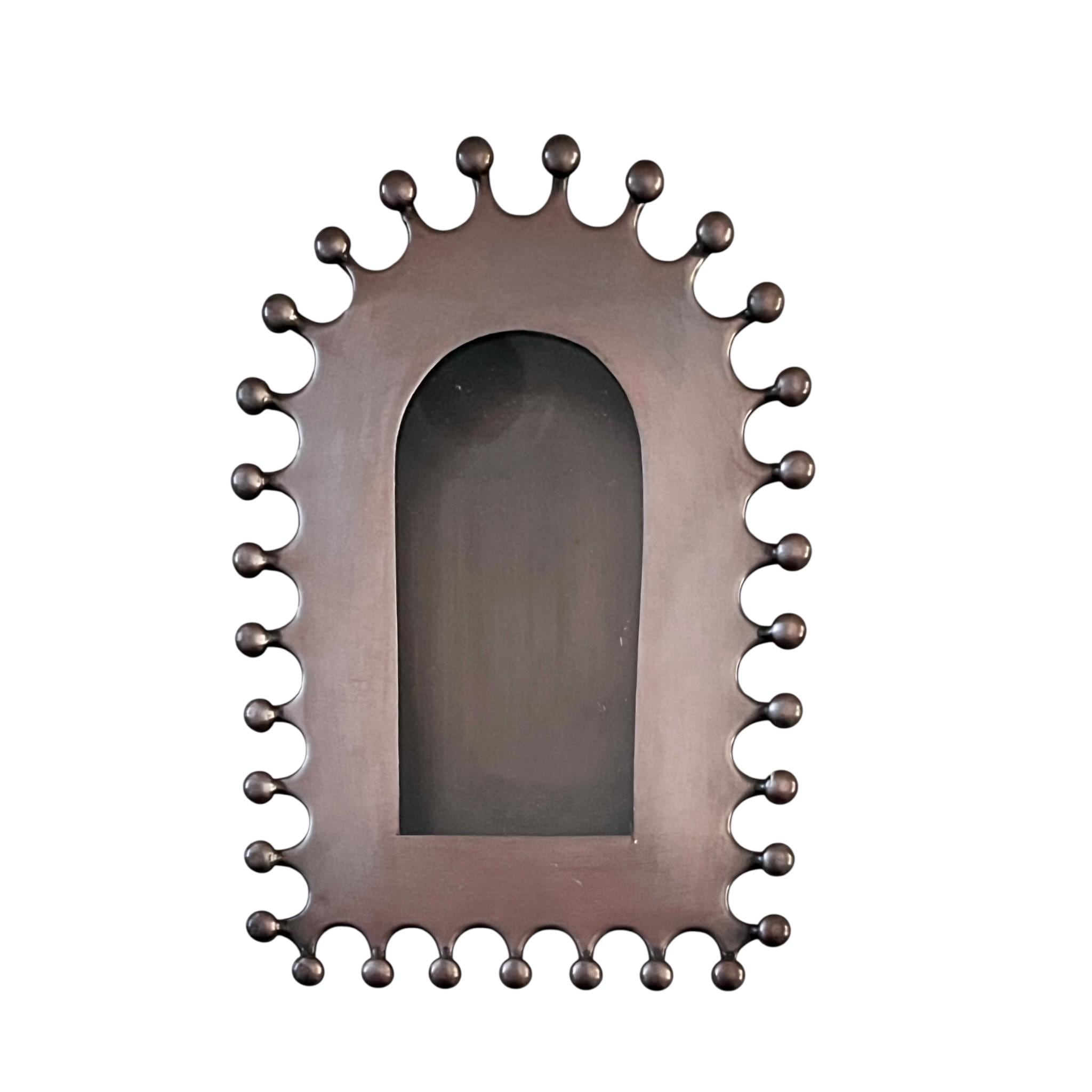 The Nicho has a hinged glass door with frame to add your own image or trinkets.