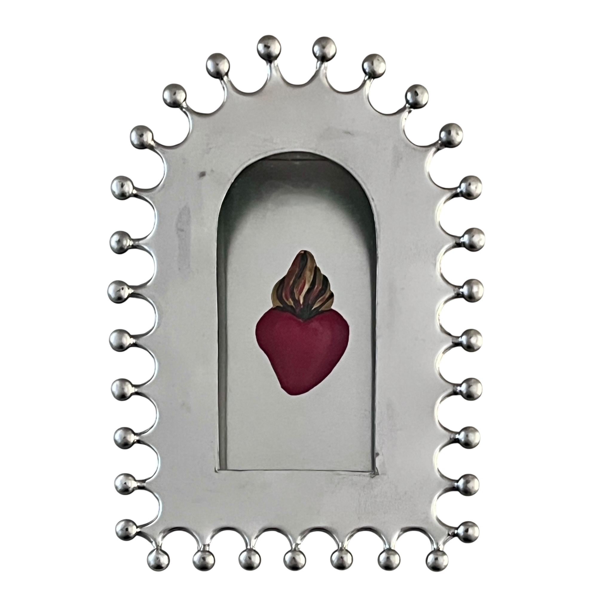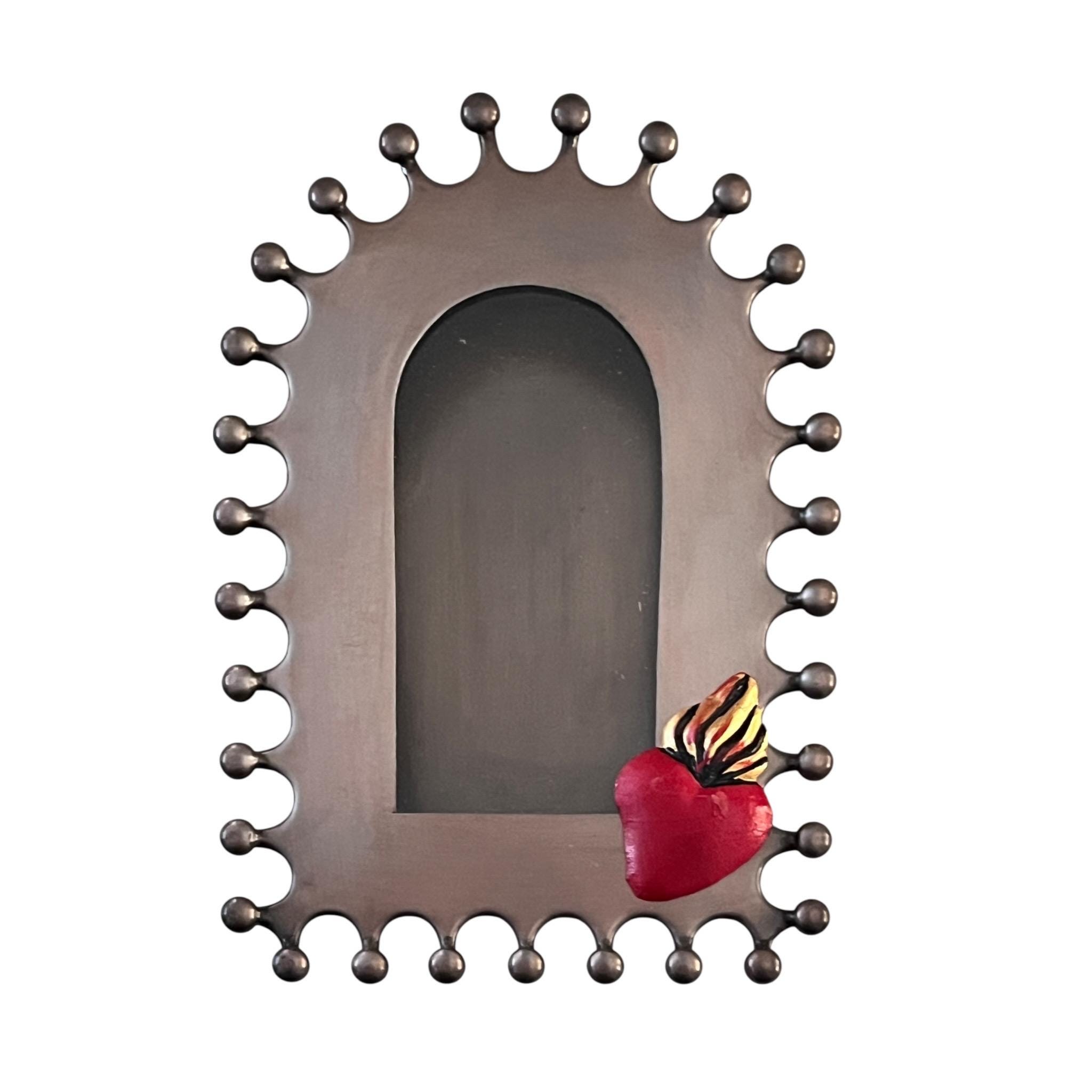 Punched Tin Nicho with optional small tin Sacred Heart magnet.