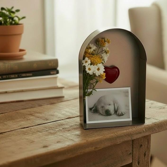 Arched Tin Nicho Shelf with tin Sacred Heart ornament/magnet.