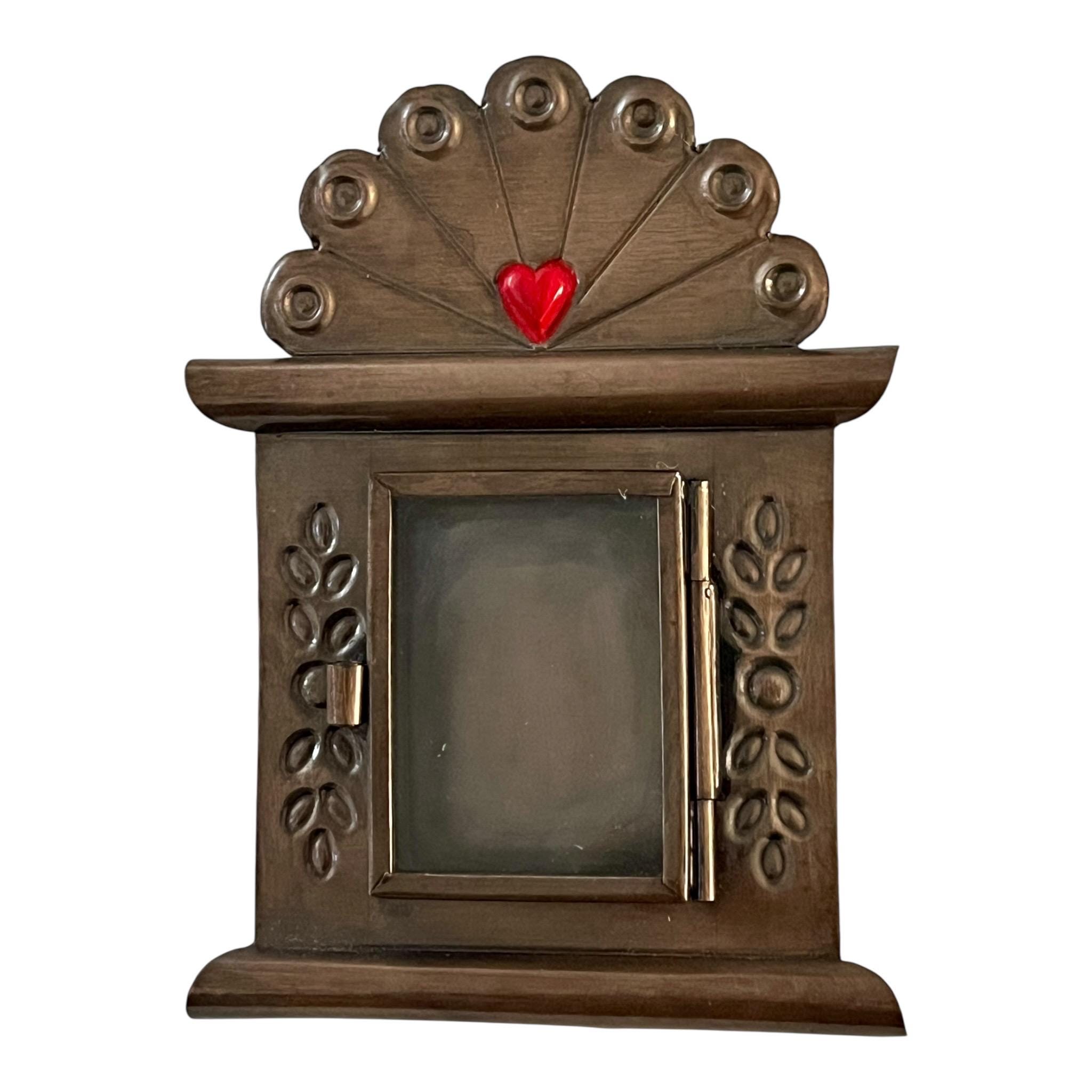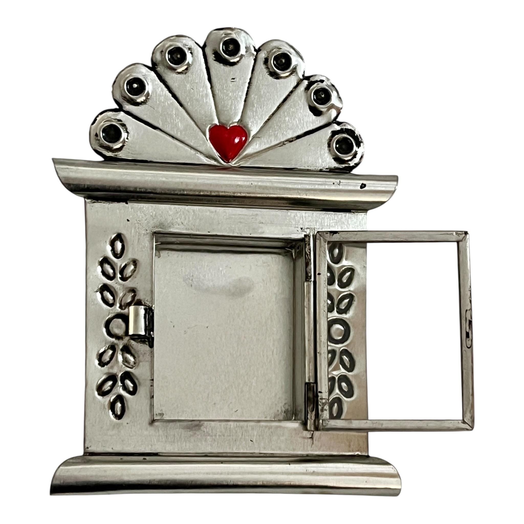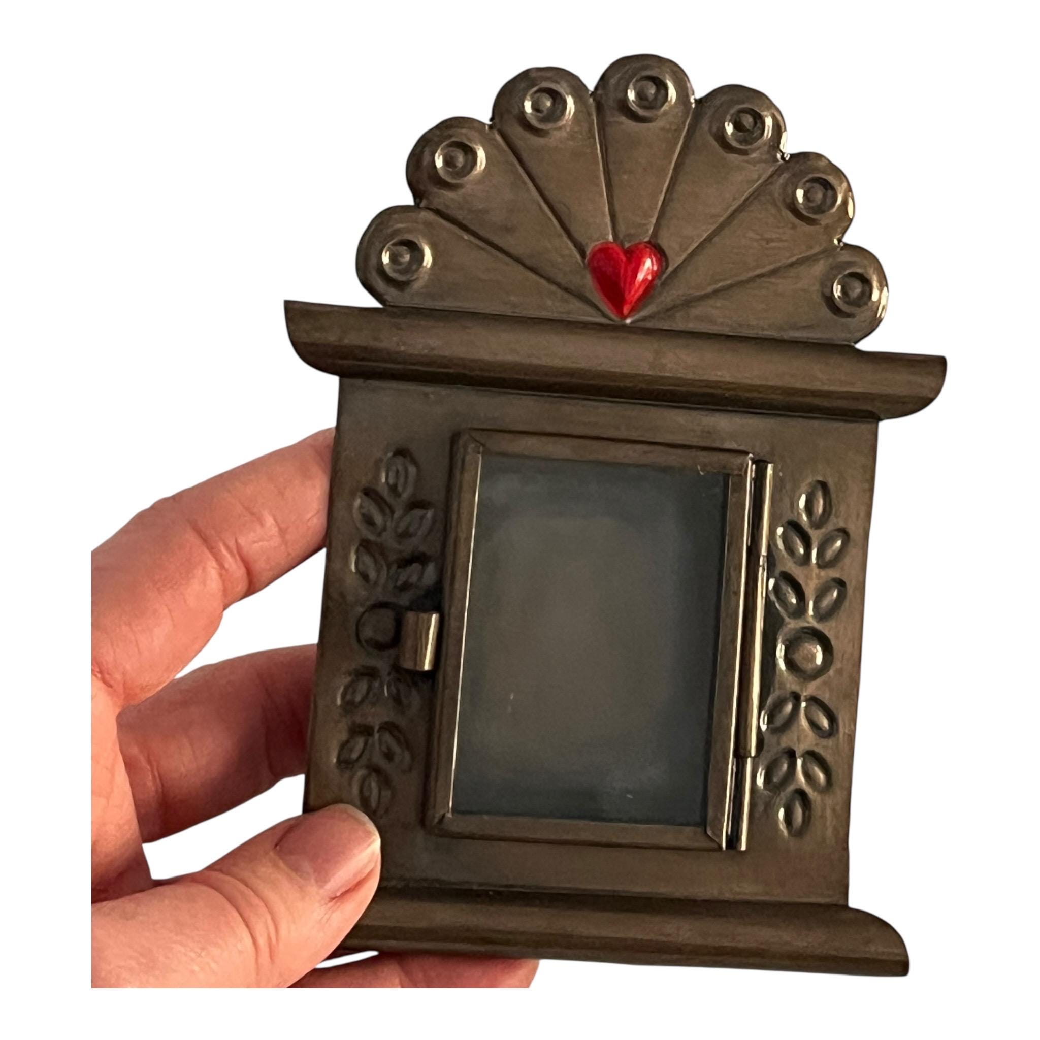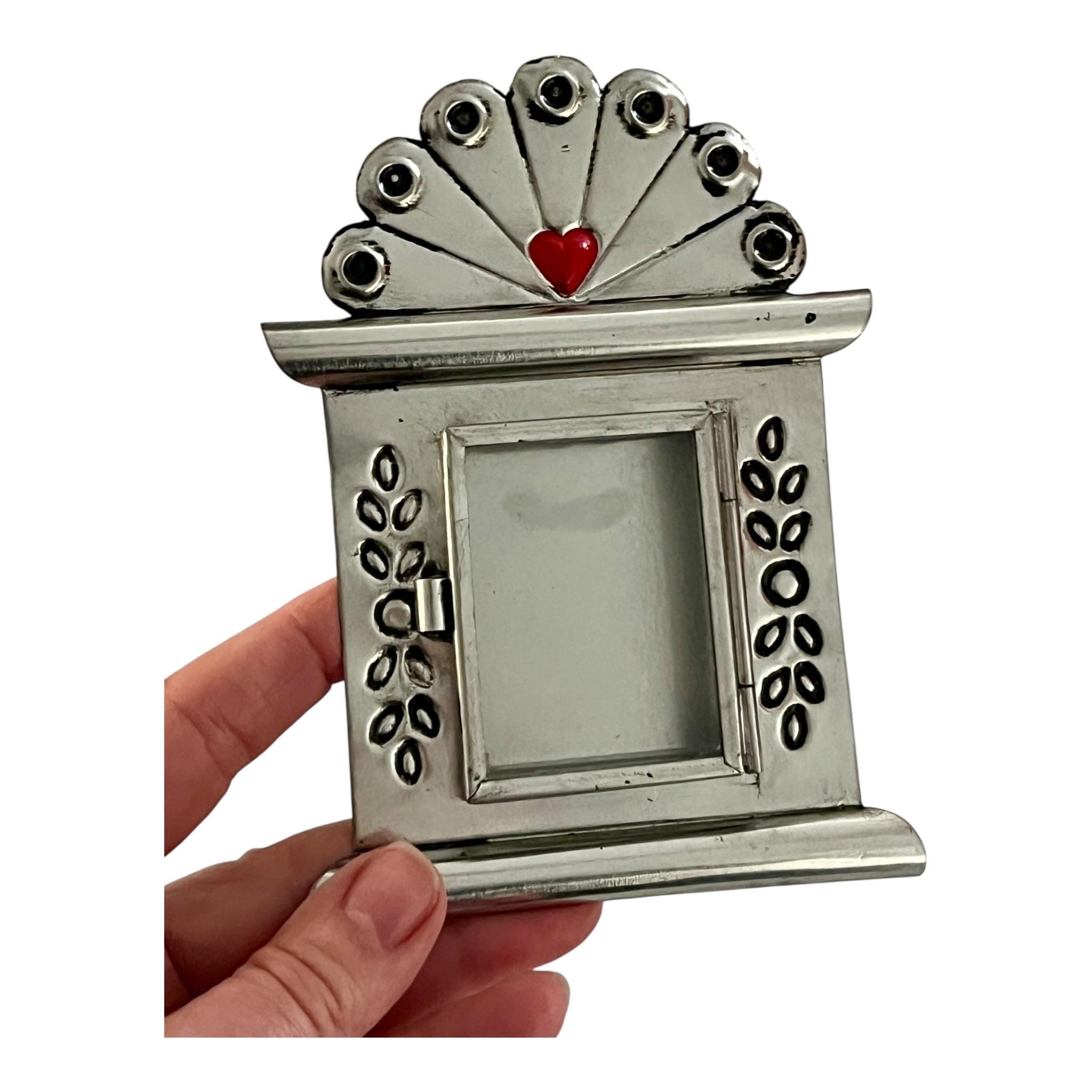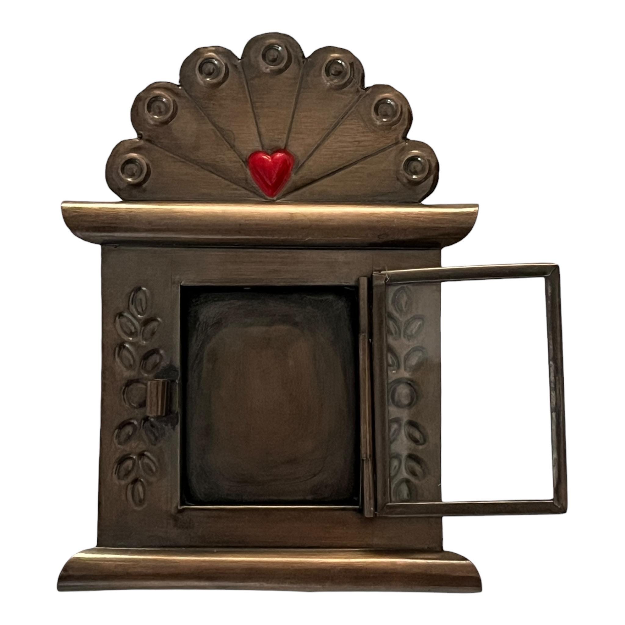 Charming small tin nicho with pretty hand punched design and bright red heart.