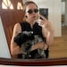 There is a hinged glass door that opens to a small frame where you can add your own image/photo or trinket.