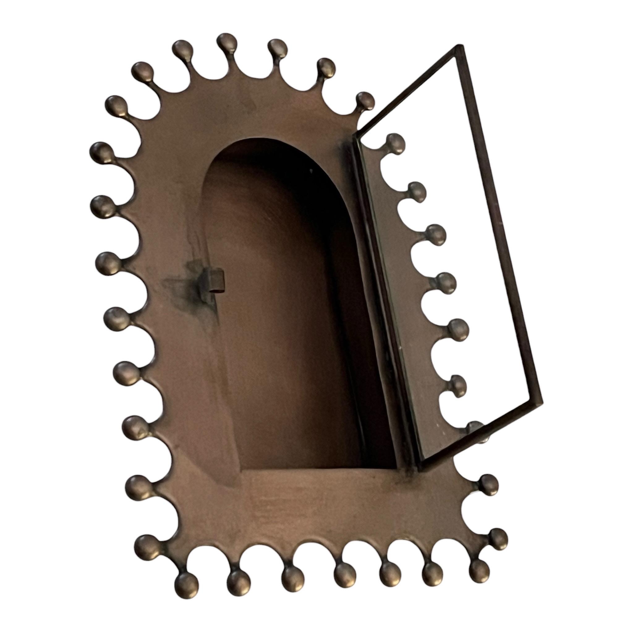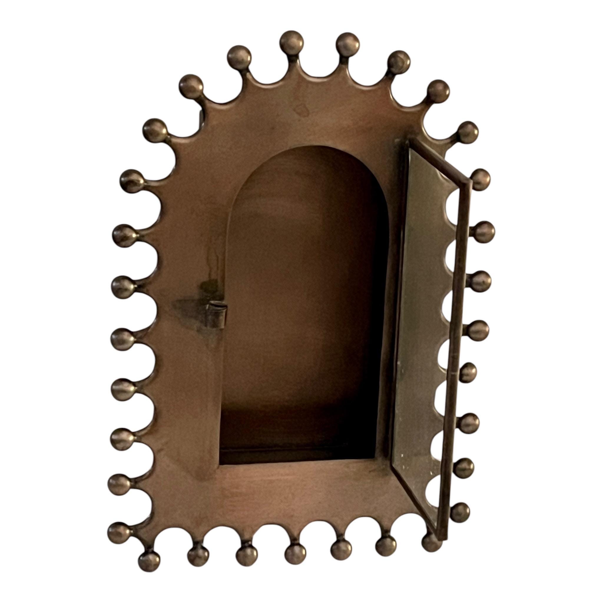 The Nicho has a hinged glass door on front opening to a frame to add your own image or trinkets.