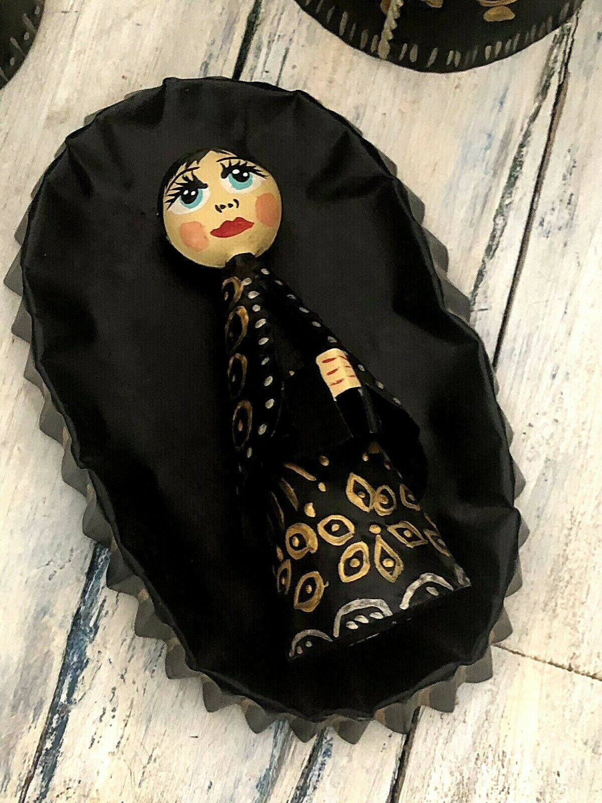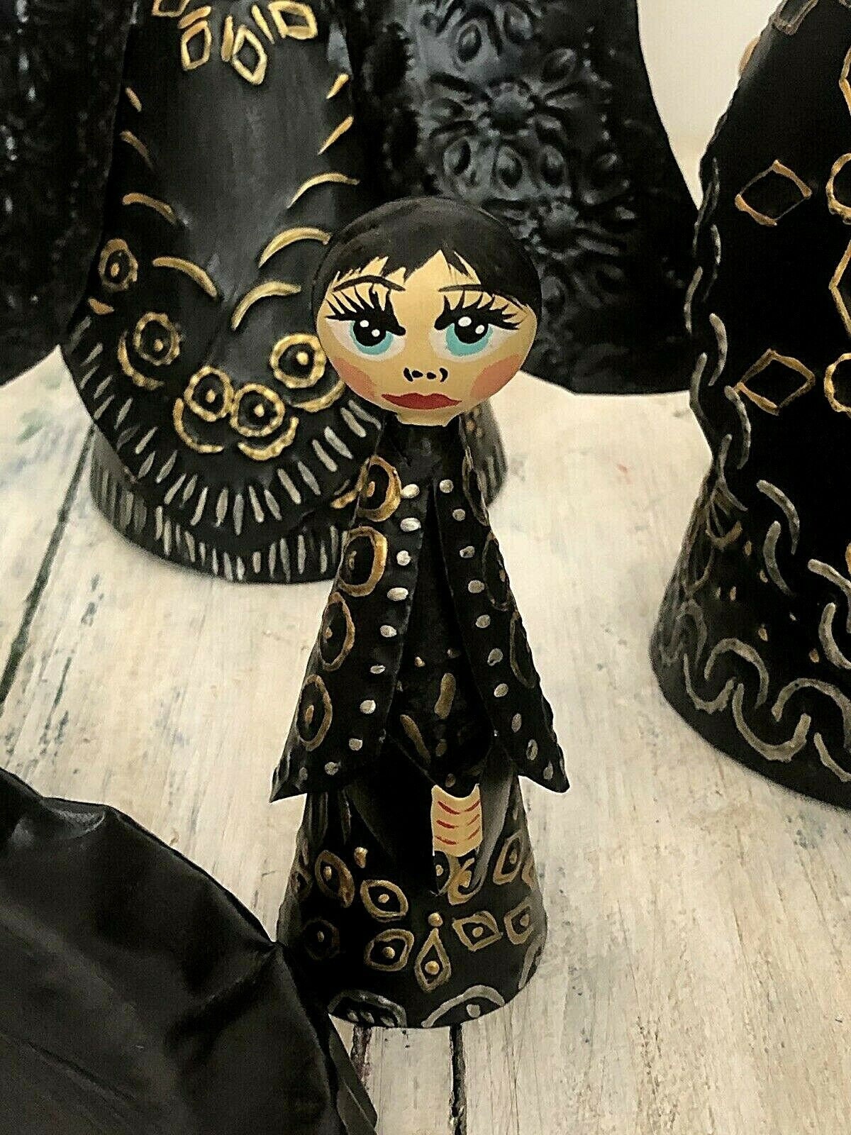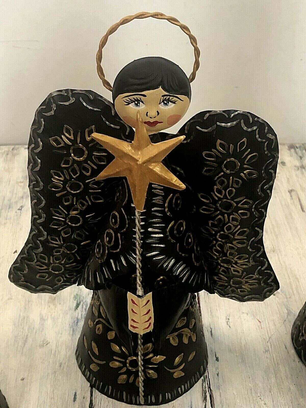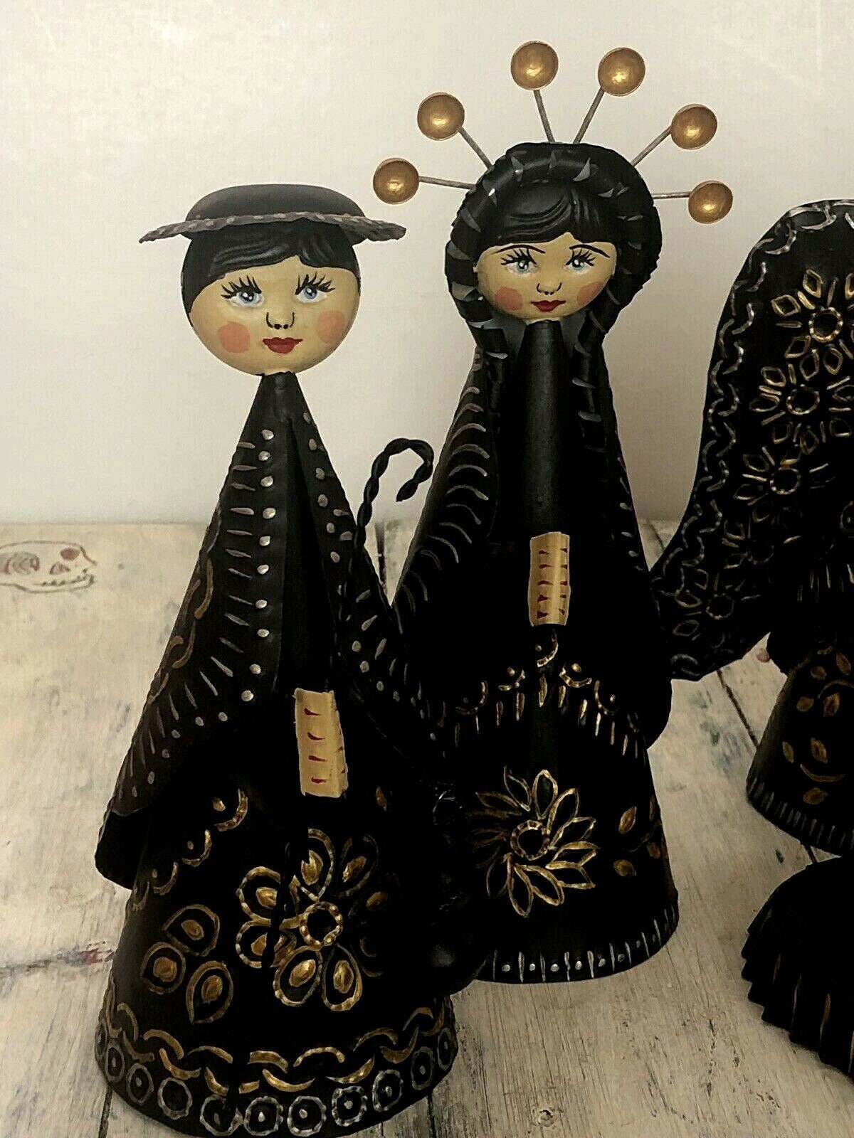 Charming large tin Nativity set - handcrafted and painted in a black and gold design.