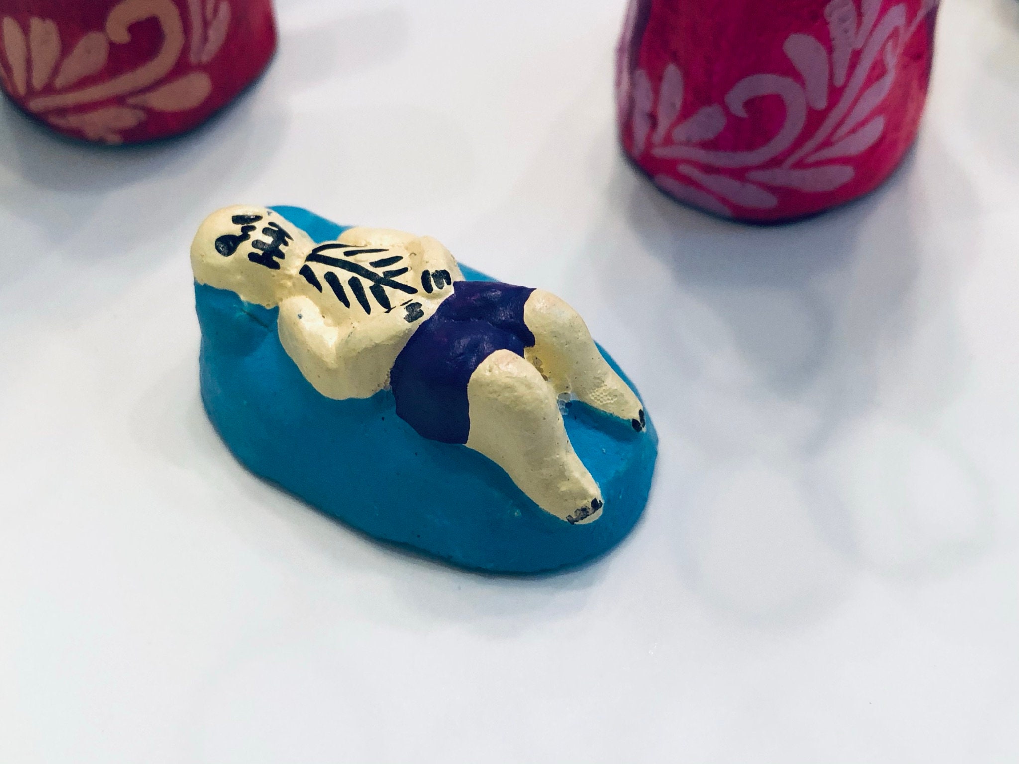 Crafted from clay and hand painted.